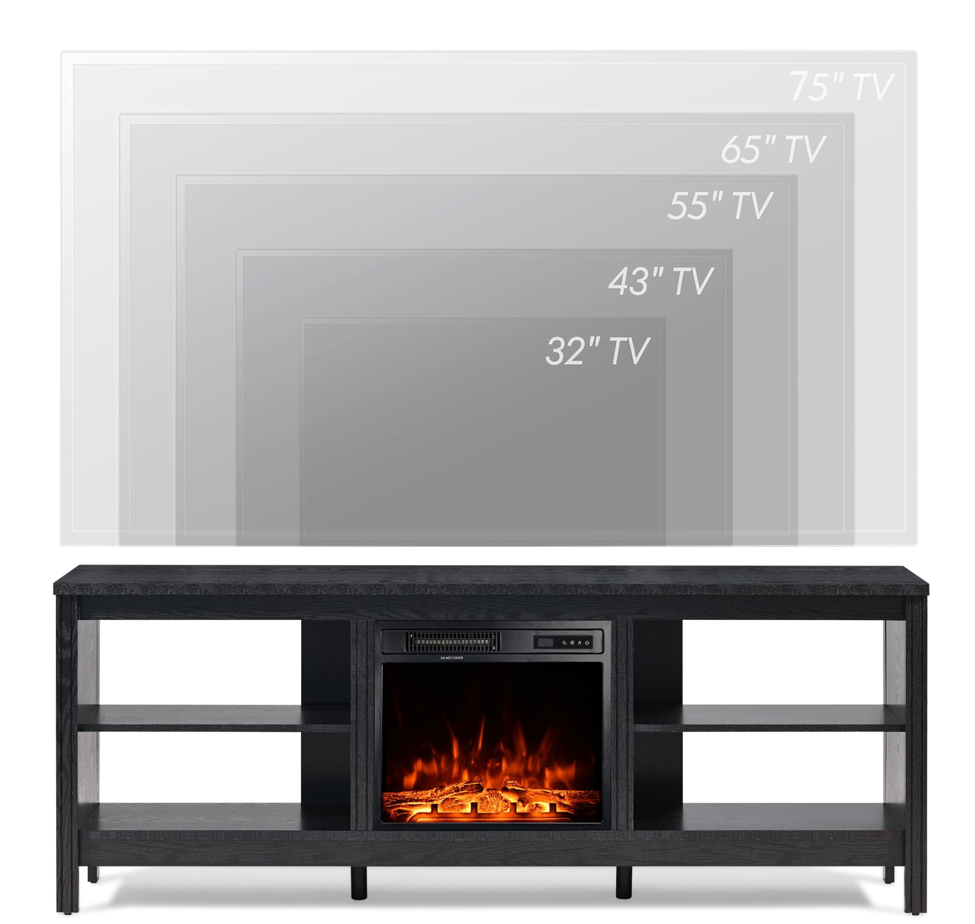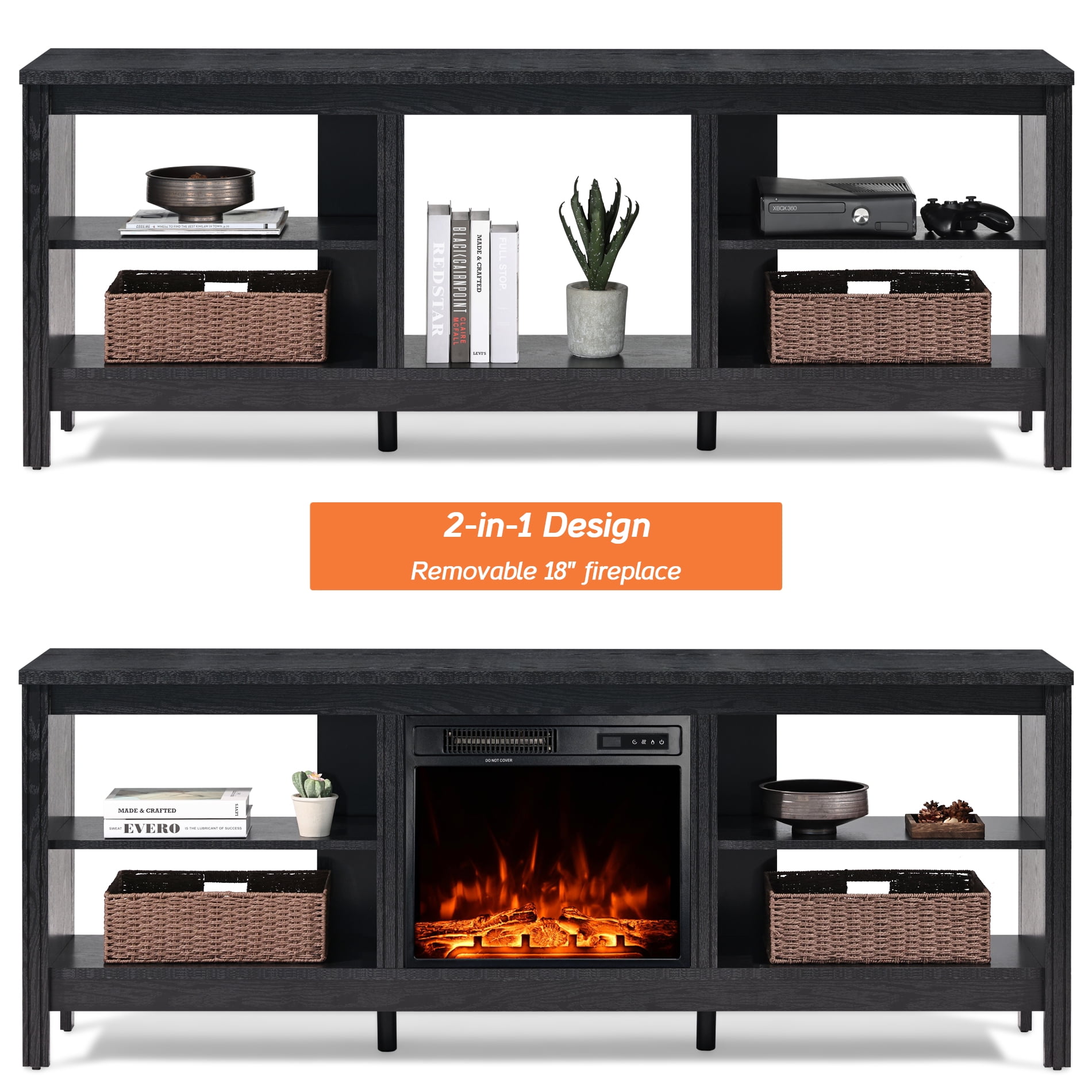 Note: The telvision stands and fireplace insert are shipped separately, so you may receive two packages at different times. The black fireplace tv stand combining 4 storage with an electric fireplace can be used with or without heat. You can put the fireplace in the cabinet to bring warmth to the cold winter and enjoy the 3d realistic flame effect in the summer. With the rustic style, this fireplace entertainment center can greatly upgrade your living space.