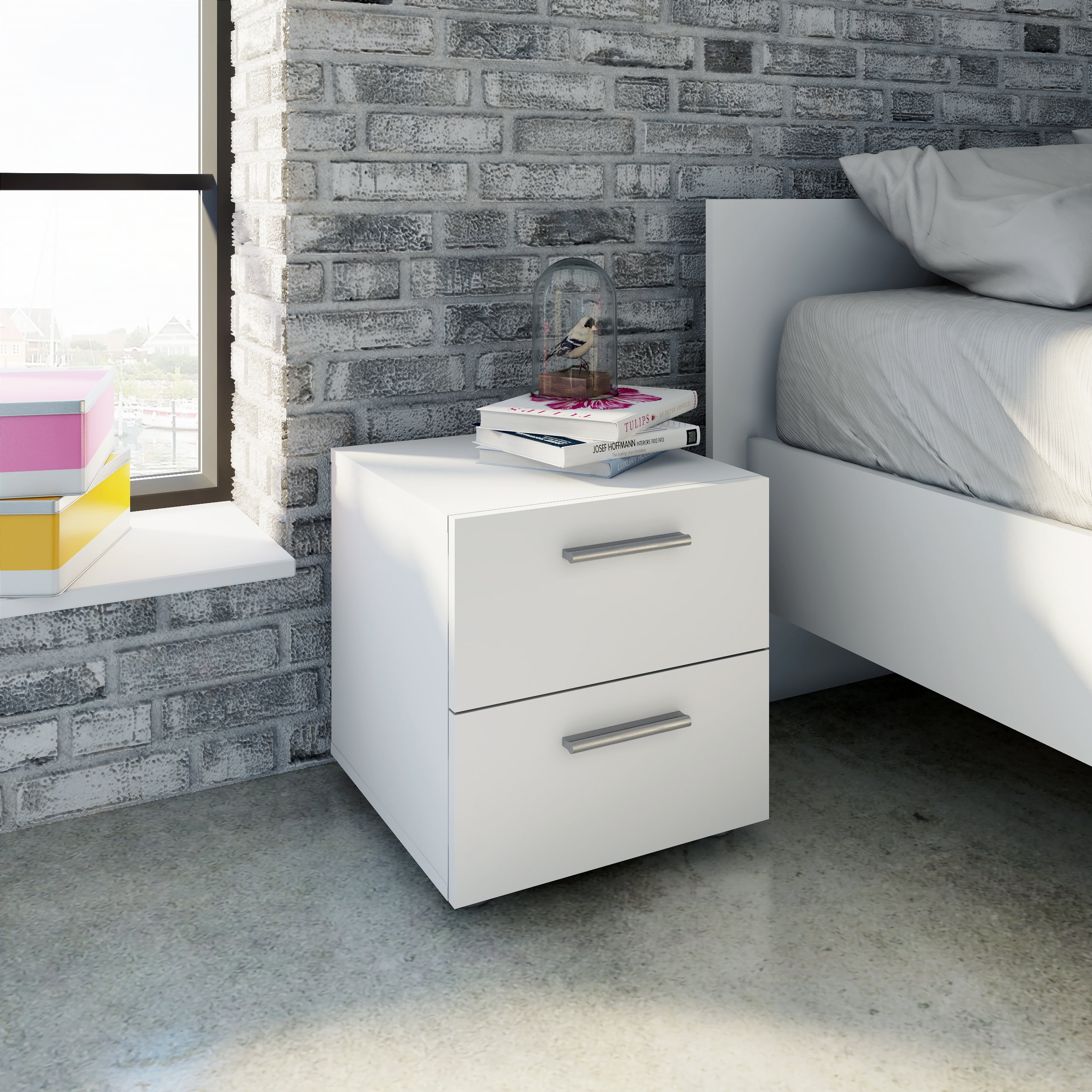 Tvilum Loft 2 Drawer Bedroom Nightstand for Adults, White