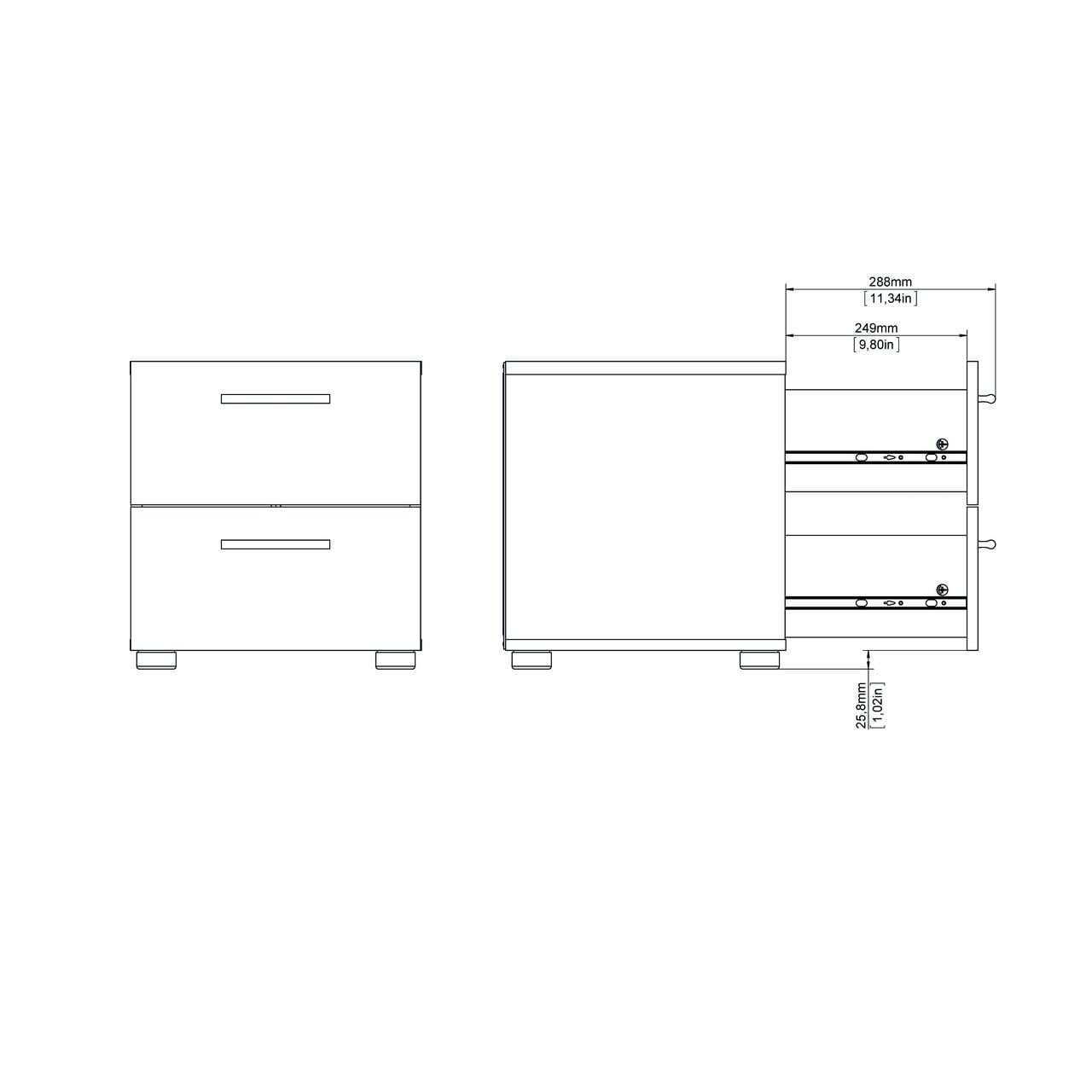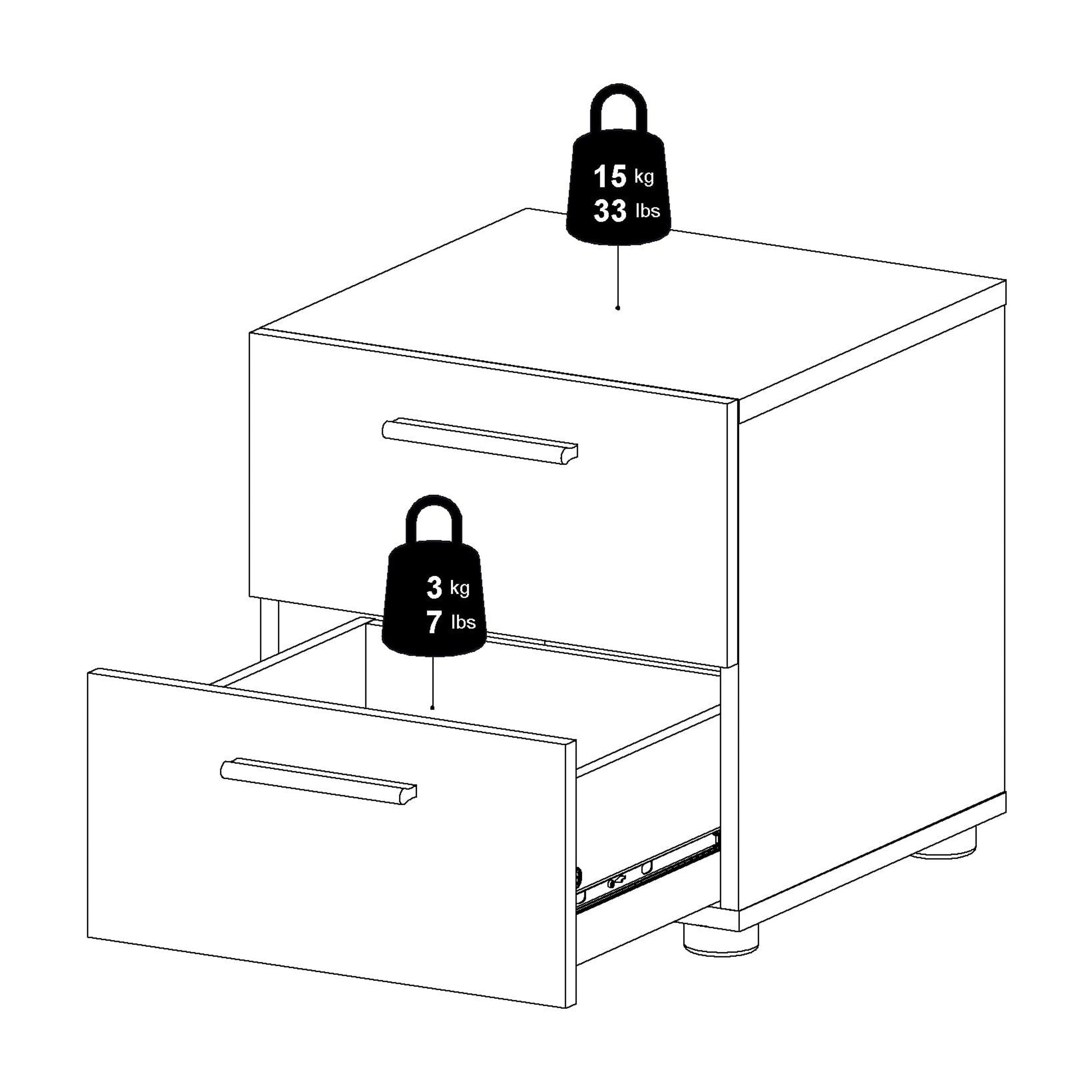 Dimensions: 15.75W x 15.75D x 16.5H inches 3D Interactive assembly through BILT: Instructions for this product are available through the free BILT app Scan the QR code to find a revolutionary way to assemble & install product with voice, text, & interactive animated images Contemporary style Two drawers for storage Modern plastic silver color bar handles Suitable for small rooms Drawers retract smoothly on metal glides with built-in safety stops Product is shipped in 1 box Made from engineered wood Made in Denmark Scandinavian look and design Includes assembly manual and all necessary hardware and fasteners. Components are pre-drilled and pre-cut ready for easy assembly Suggested number of people for assembly is 1 Age Group: Adults