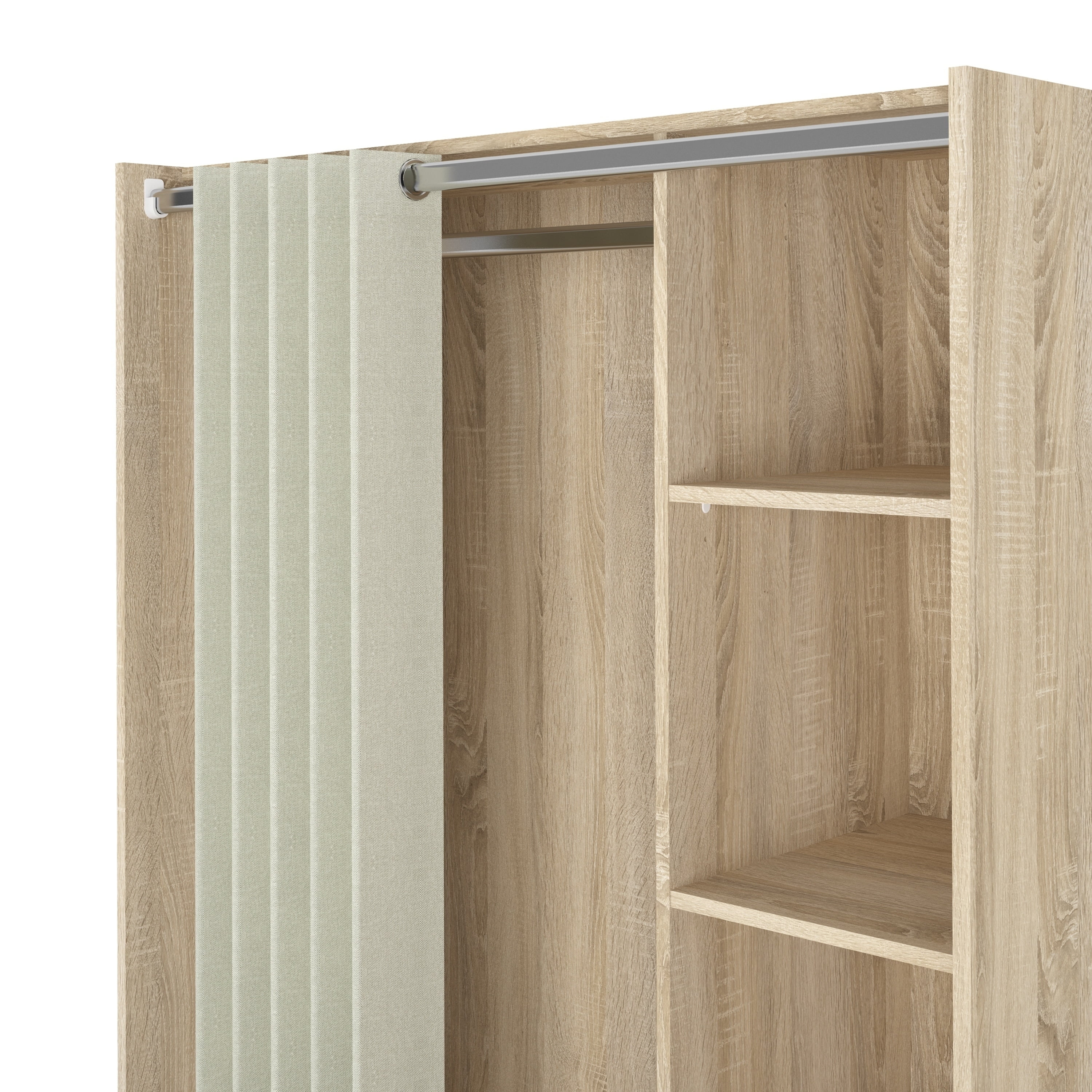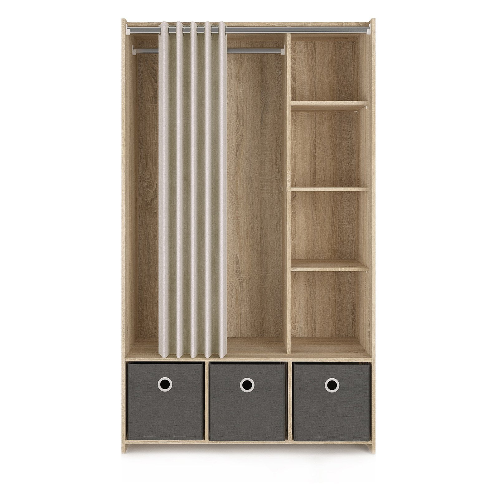 Tvilum Lola 3 Bin Armoire Wardrobe Center with Curtain for Adults in Oak Structure