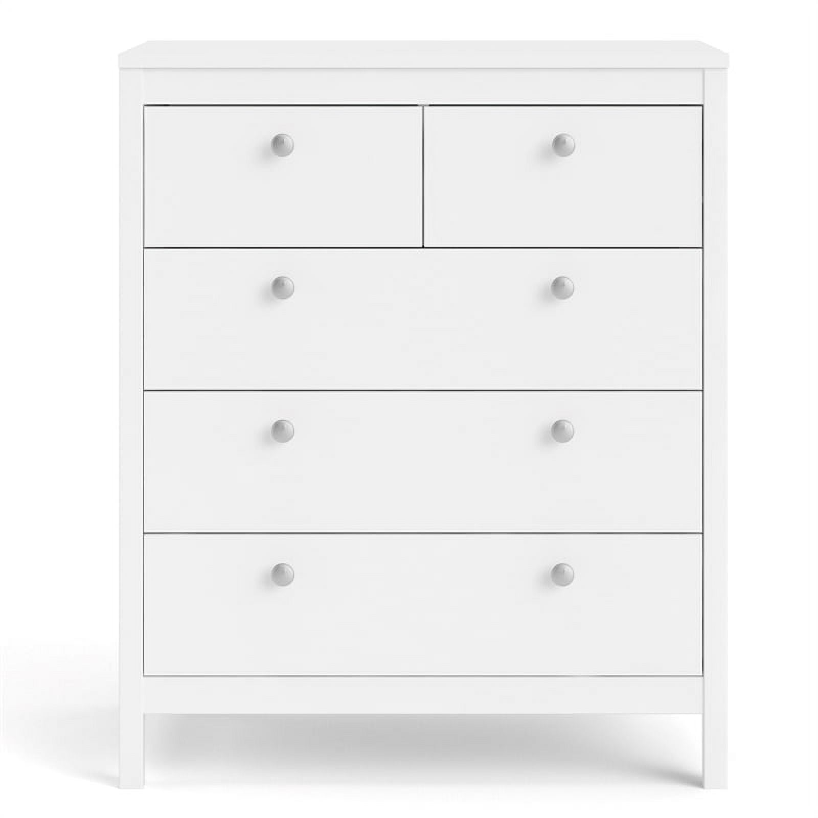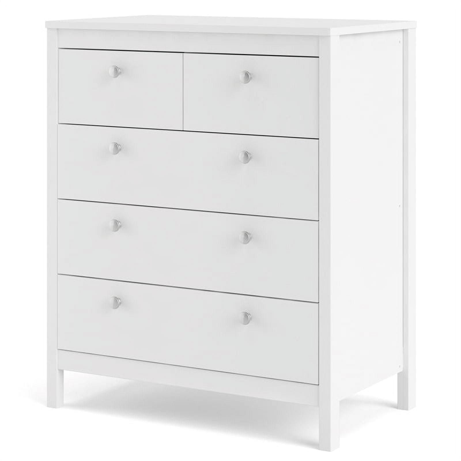 Tvilum Madrid 5 Drawer Chest Dresser for Adults, White