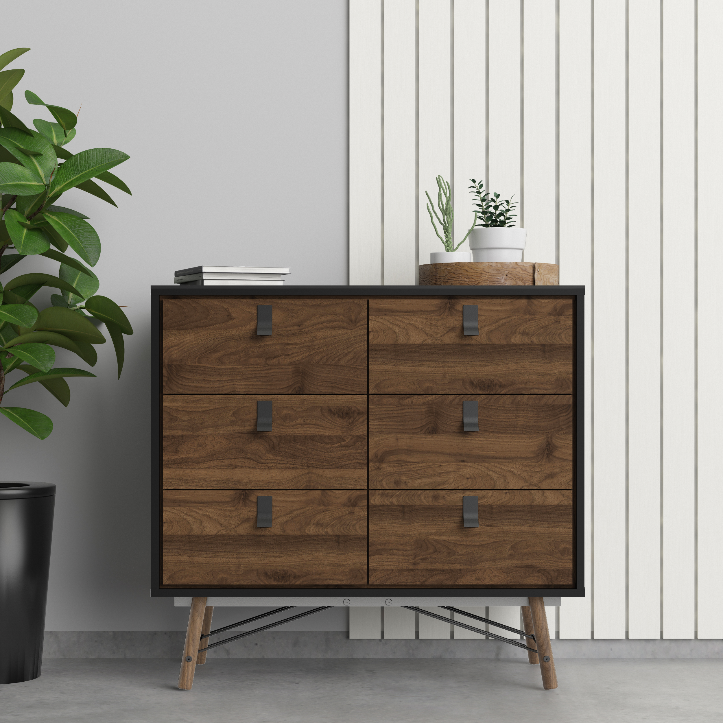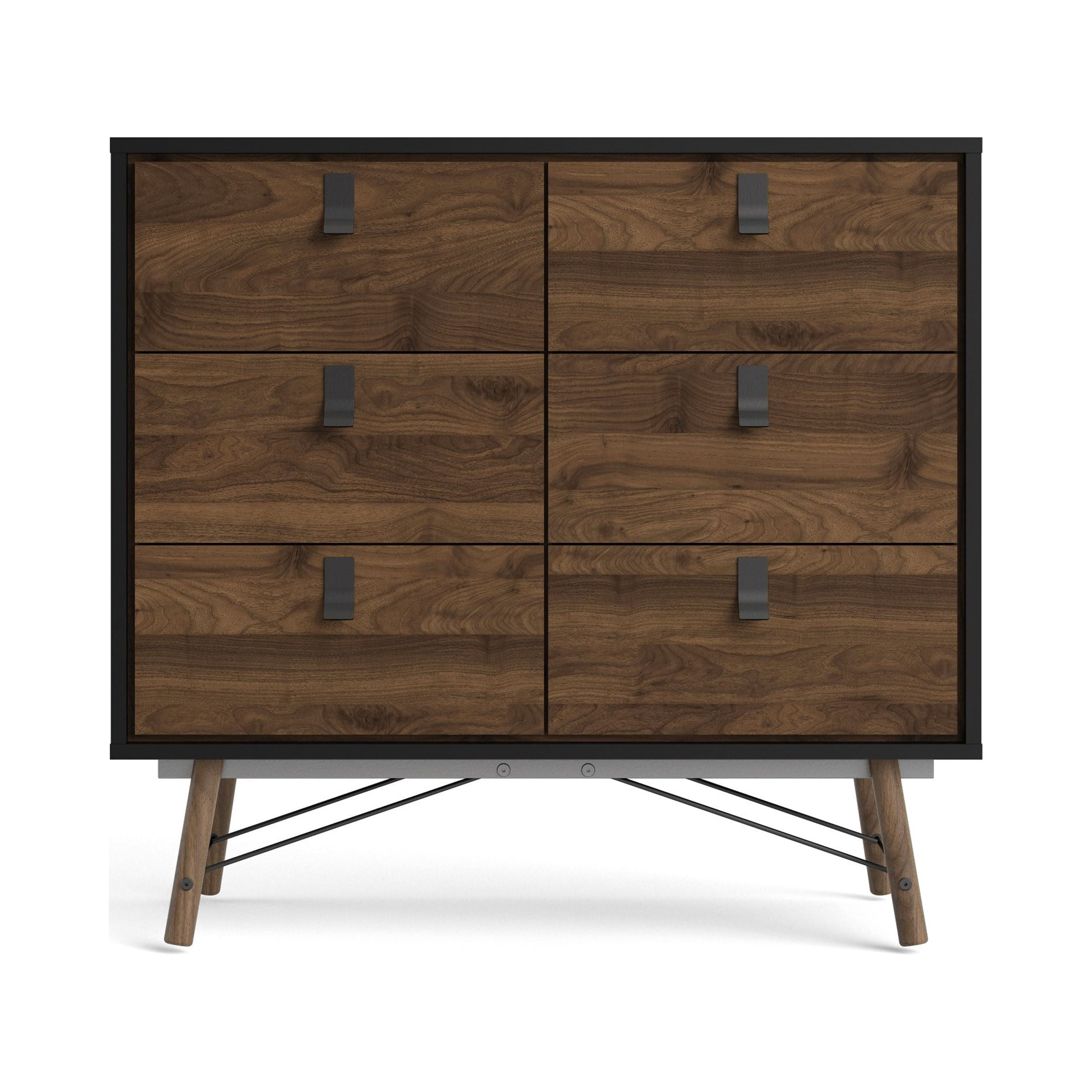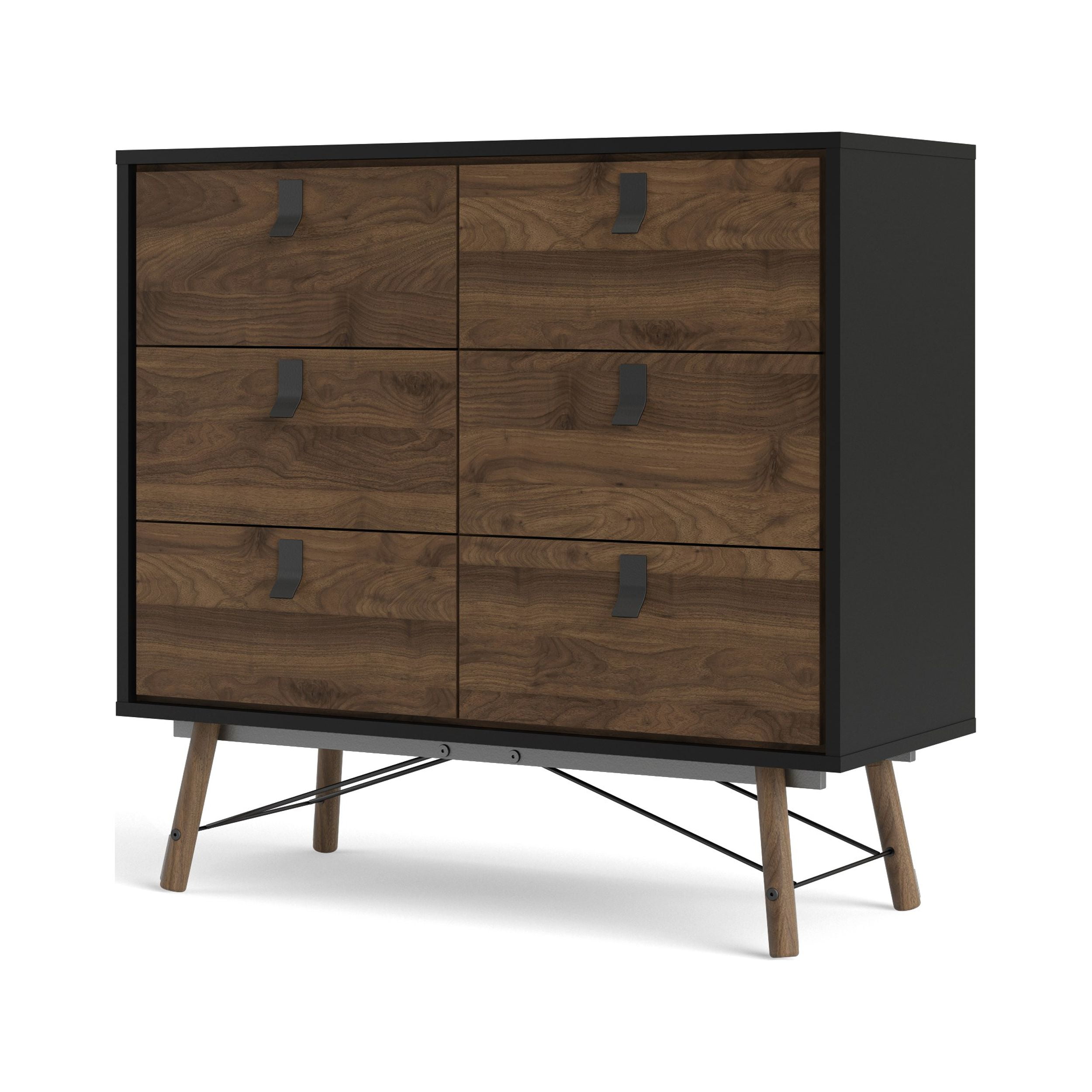 Tvilum Ry 6 Drawer Chest Dresser for Adults, Black Matte and Walnut