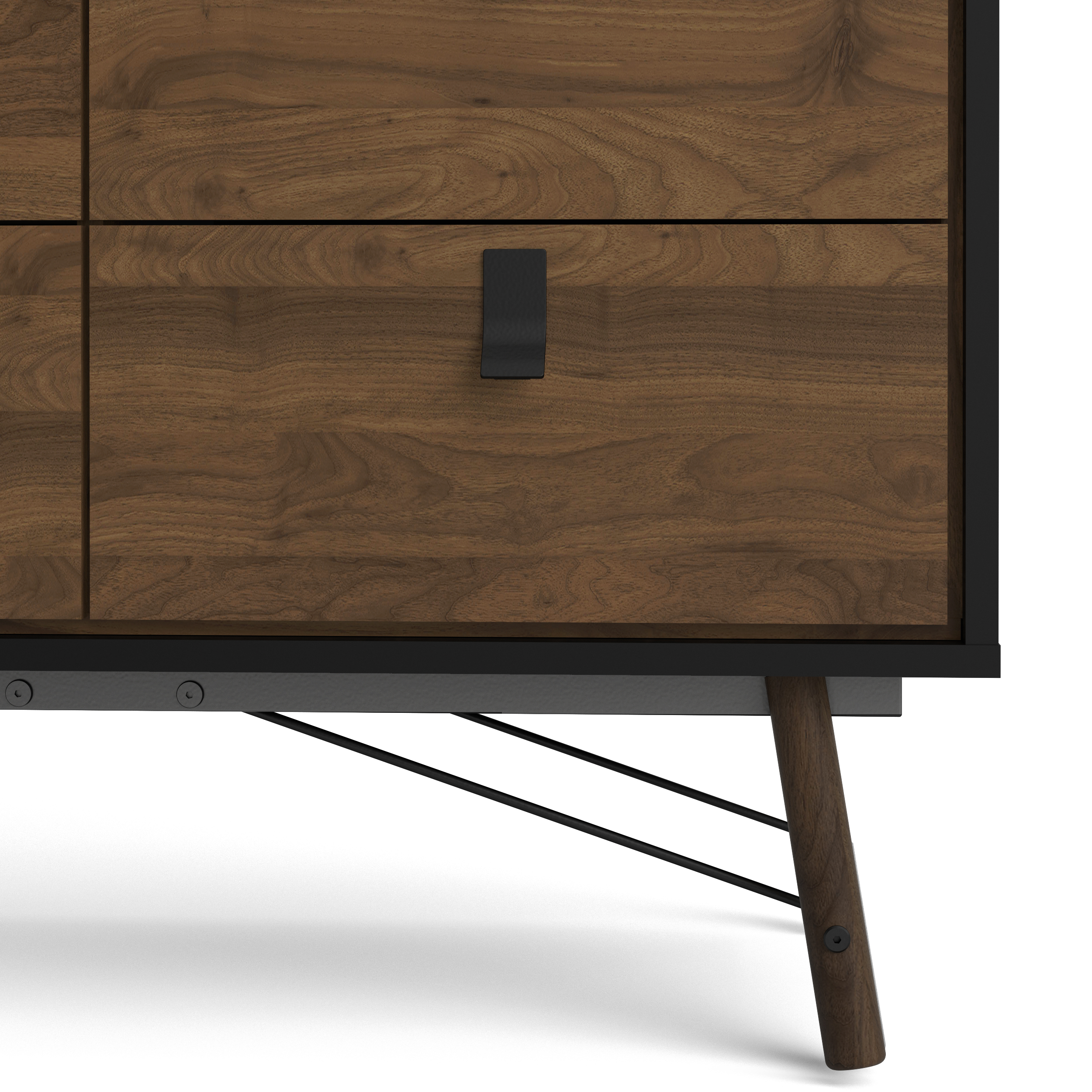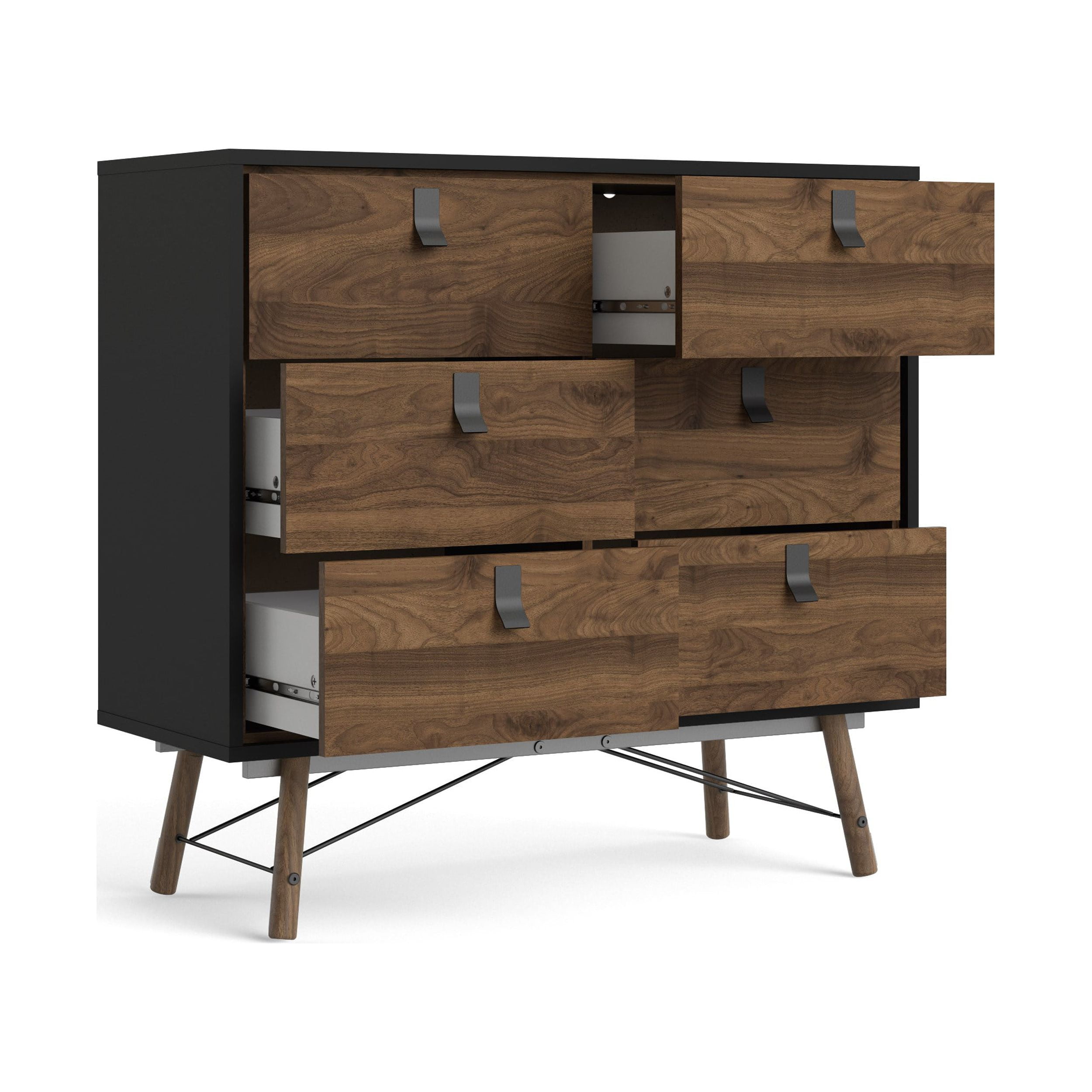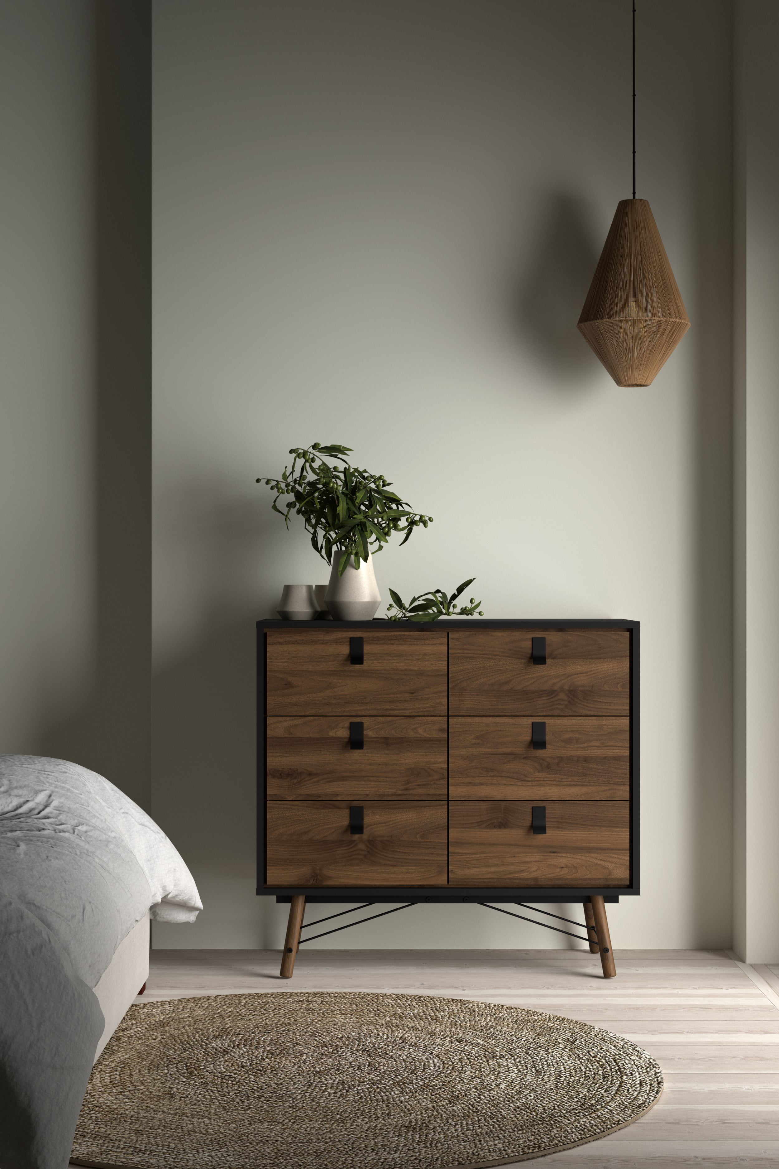 Tvilum Ry 6 Drawer Chest Dresser for Adults, Black Matte and Walnut