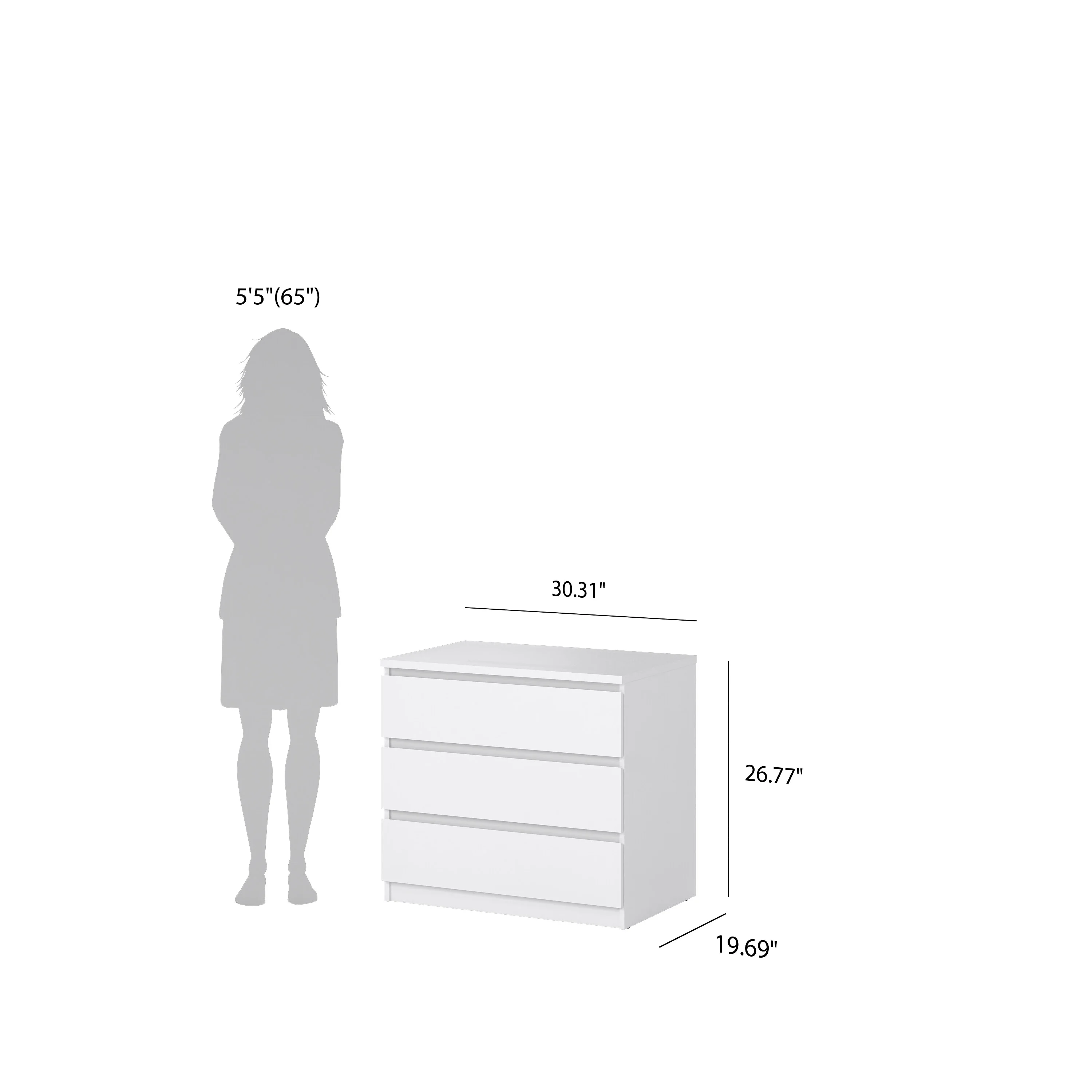 Chest Dimensions: 30.31 in.W x26.77 in. H x 19.69 in.D Contemporary design Three (3) drawers retract smoothly on metal glides with built-in safety stops Handle-free drawers Small and compact size Interior Drawer Dimensions: 27.71 in.W x4.21 in. H x 17.16 in.D 3D Interactive assembly through BILT: Instructions for this product are available through the free BILT app. Find a revolutionary way to assemble & install product with voice, text, & interactive animated images Product ships in one (1) box Assembly required, Suggested number of people for assembly is 2 Made from engineered wood Paper foil laminate finish Made in Denmark Includes assembly manual and all necessary hardware and fasteners. Components are pre-drilled and pre-cut ready for easy assembly. Age Group: Adults