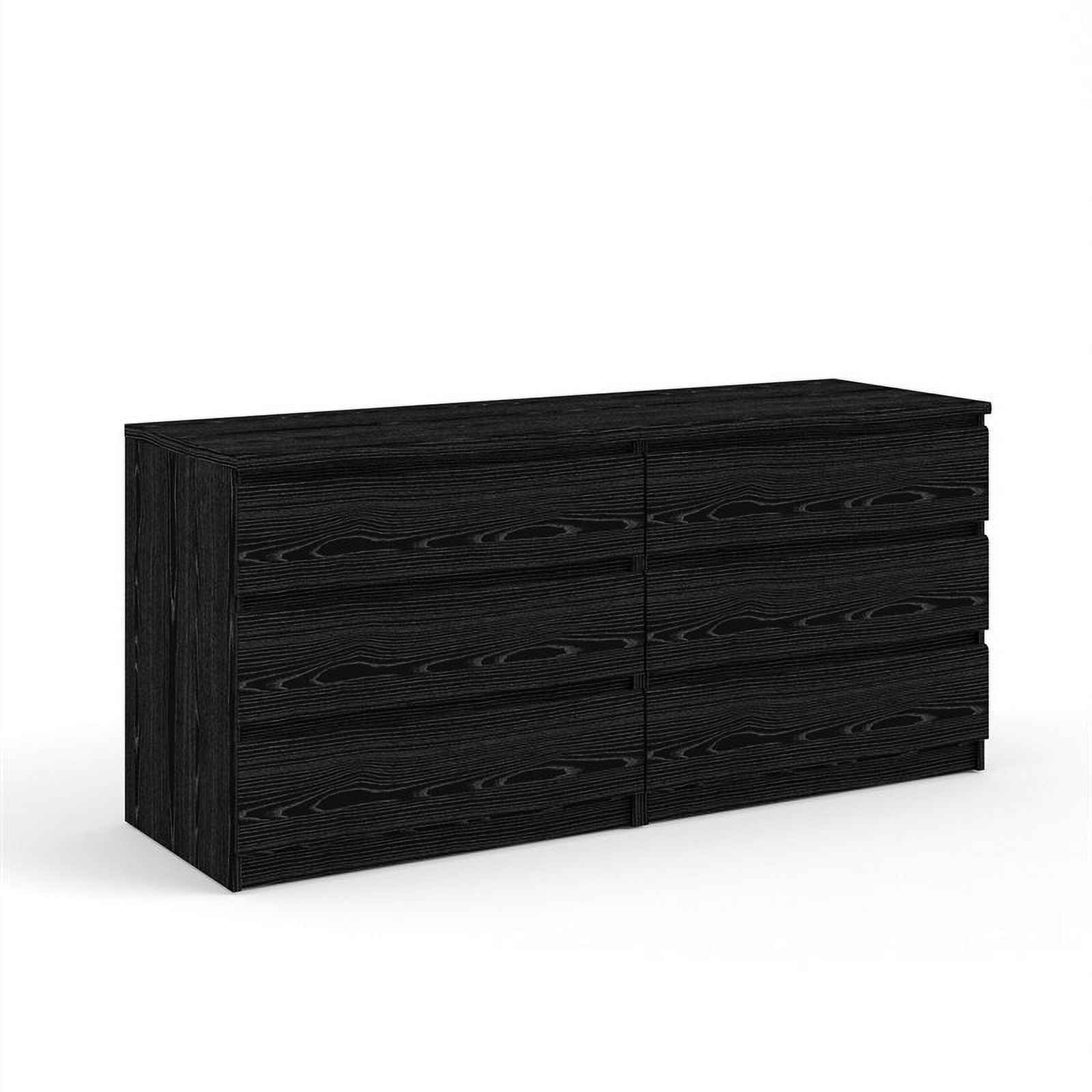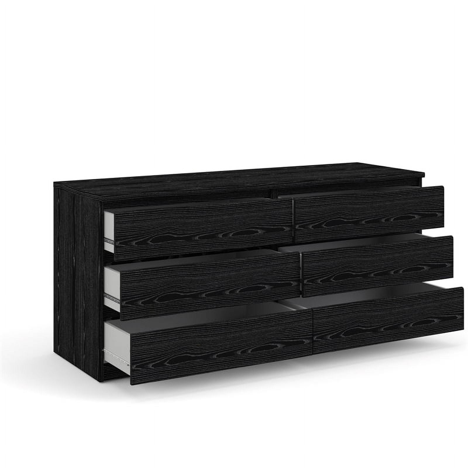Tvilum Scottsdale 6 Drawer Double Dresser for Adults, Black Wood Grain