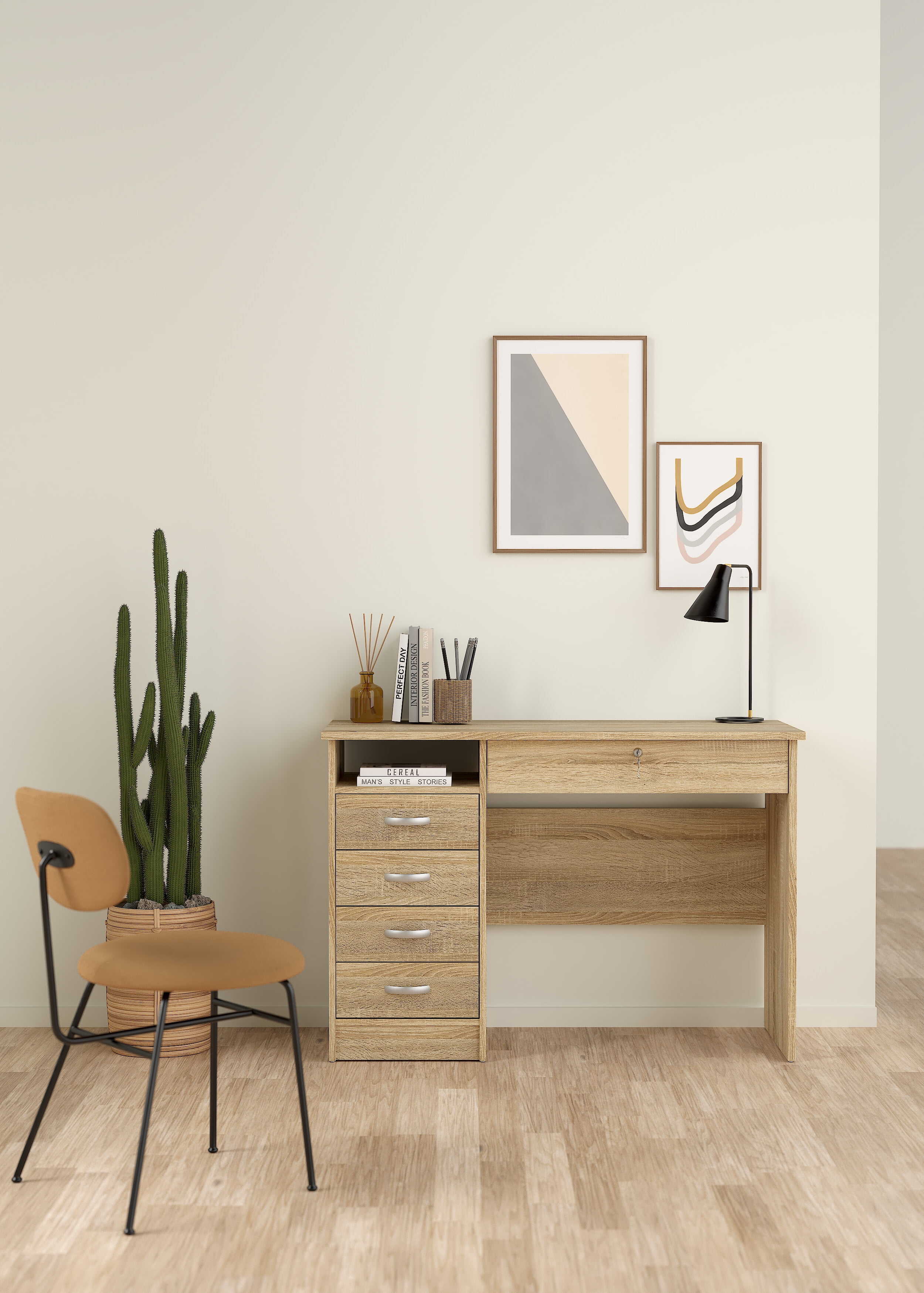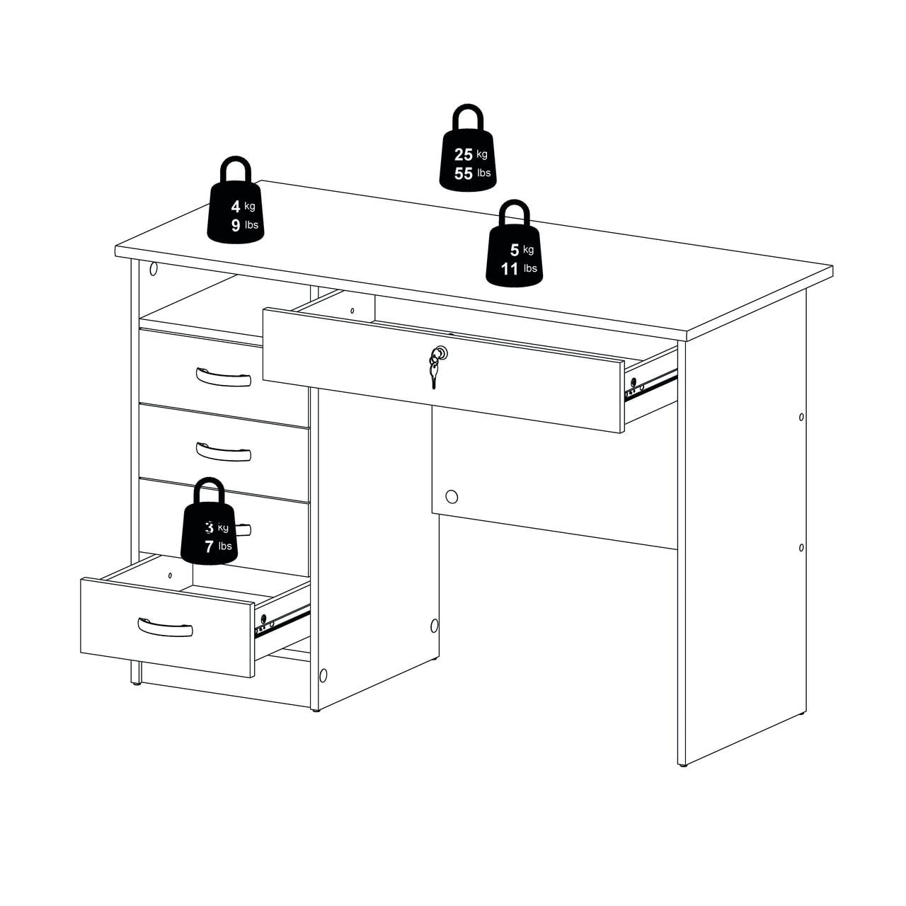 Tvilum Walden 5 Drawer Office Desk with 1 Locking Drawer for Adults, Oak Structure