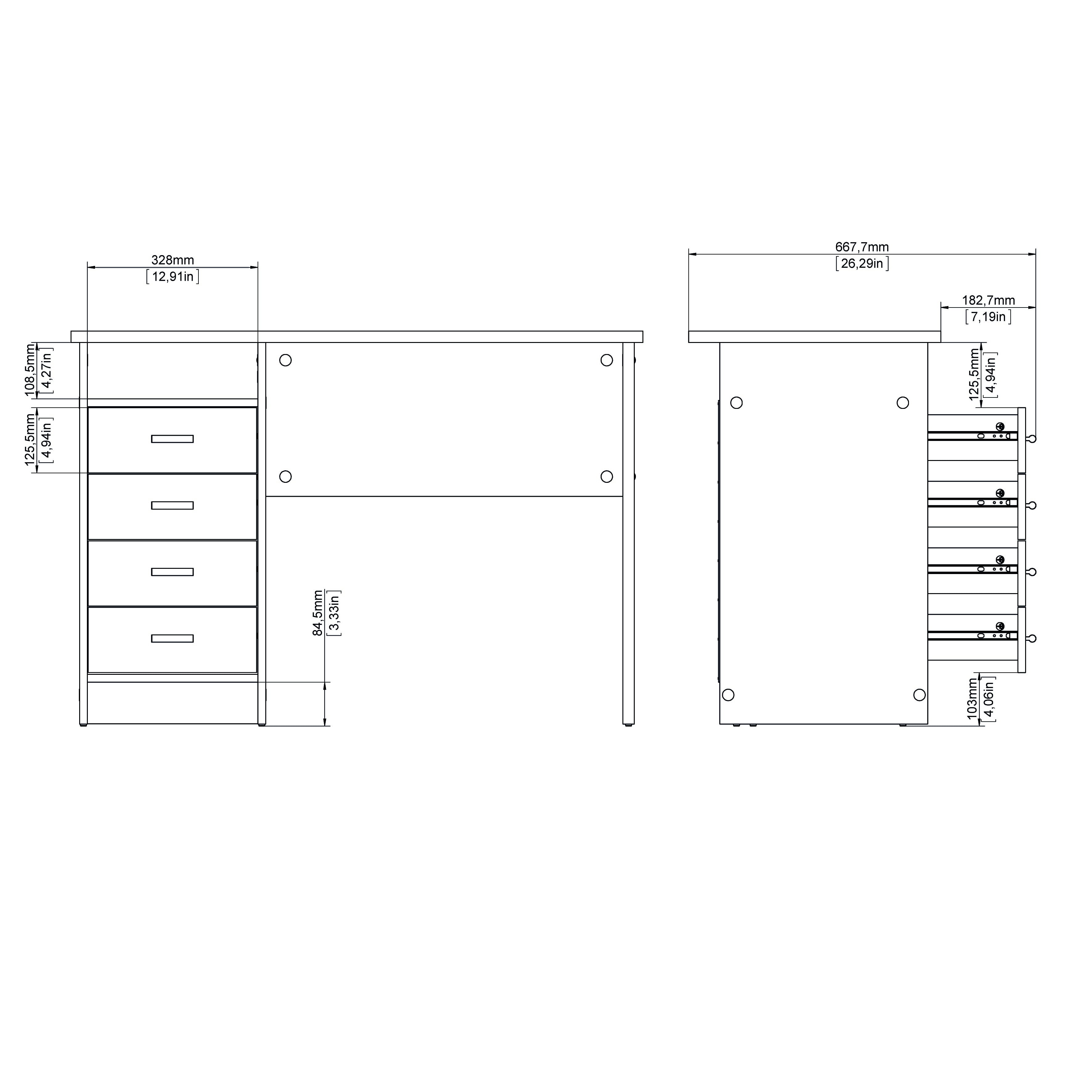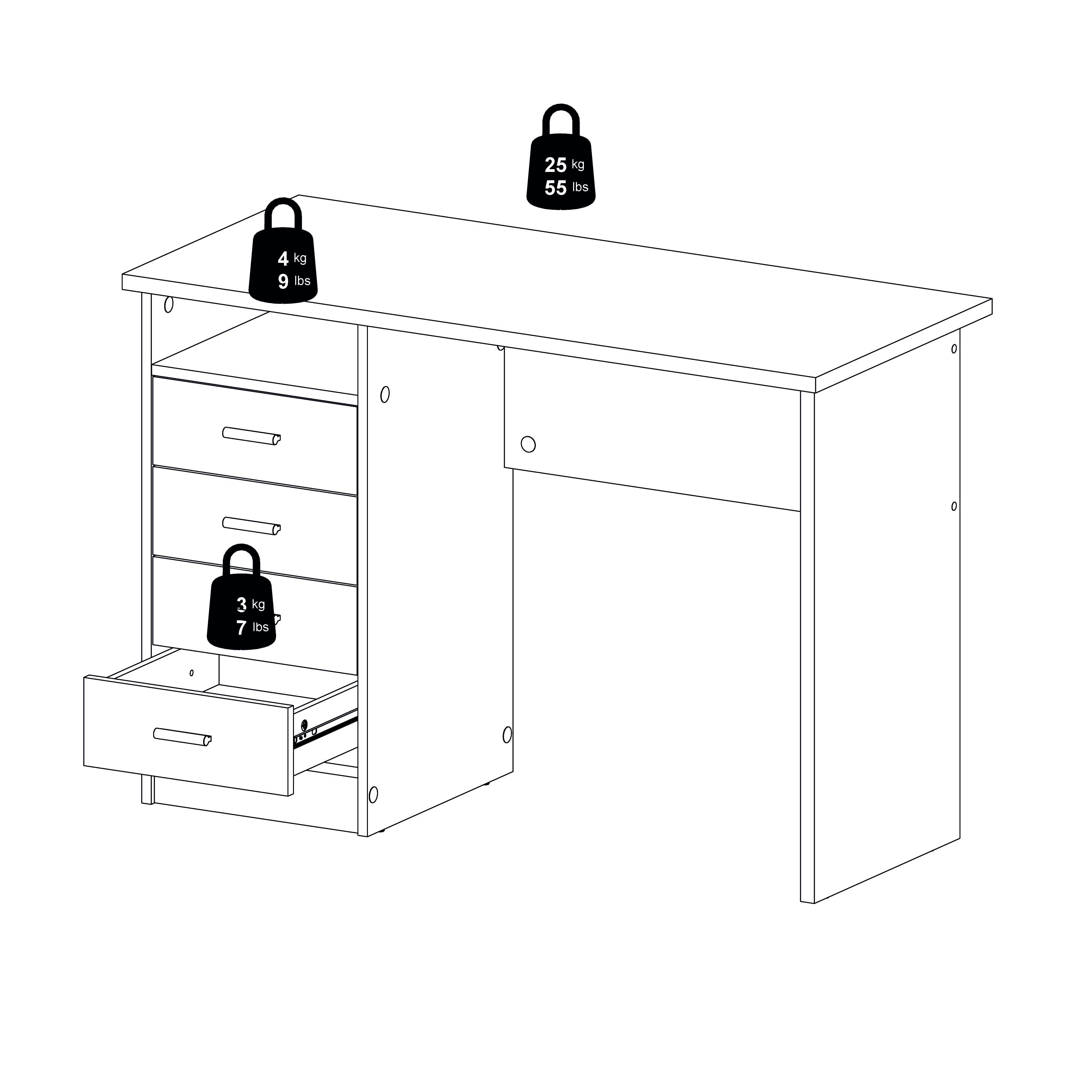 Add function and style to your new office space with the Warner Desk with 4 Drawers for adults. This desk provides one open shelf for easily accessible items and the four drawers provide plenty of storage to assist with office clutter. The drawers are backed with metal glides complemented with aluminum bar handles. With a foil finish, the top coat of this desk provides durability.