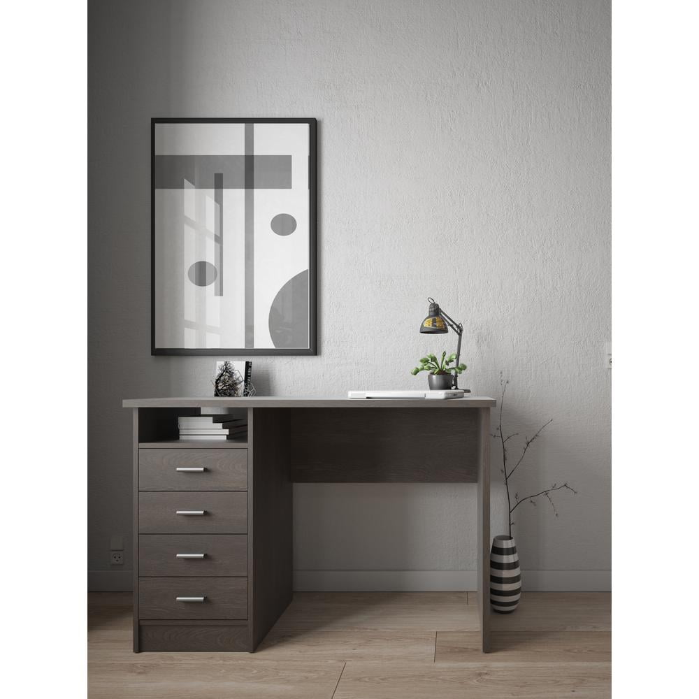 Add function and style to your new office space with the Warner Desk with 4 Drawers for adults. This desk provides one open shelf for easily accessible items and the four drawers provide plenty of storage to assist with office clutter. The drawers are backed with metal glides complemented with aluminum bar handles. With a foil finish, the top coat of this desk provides durability.