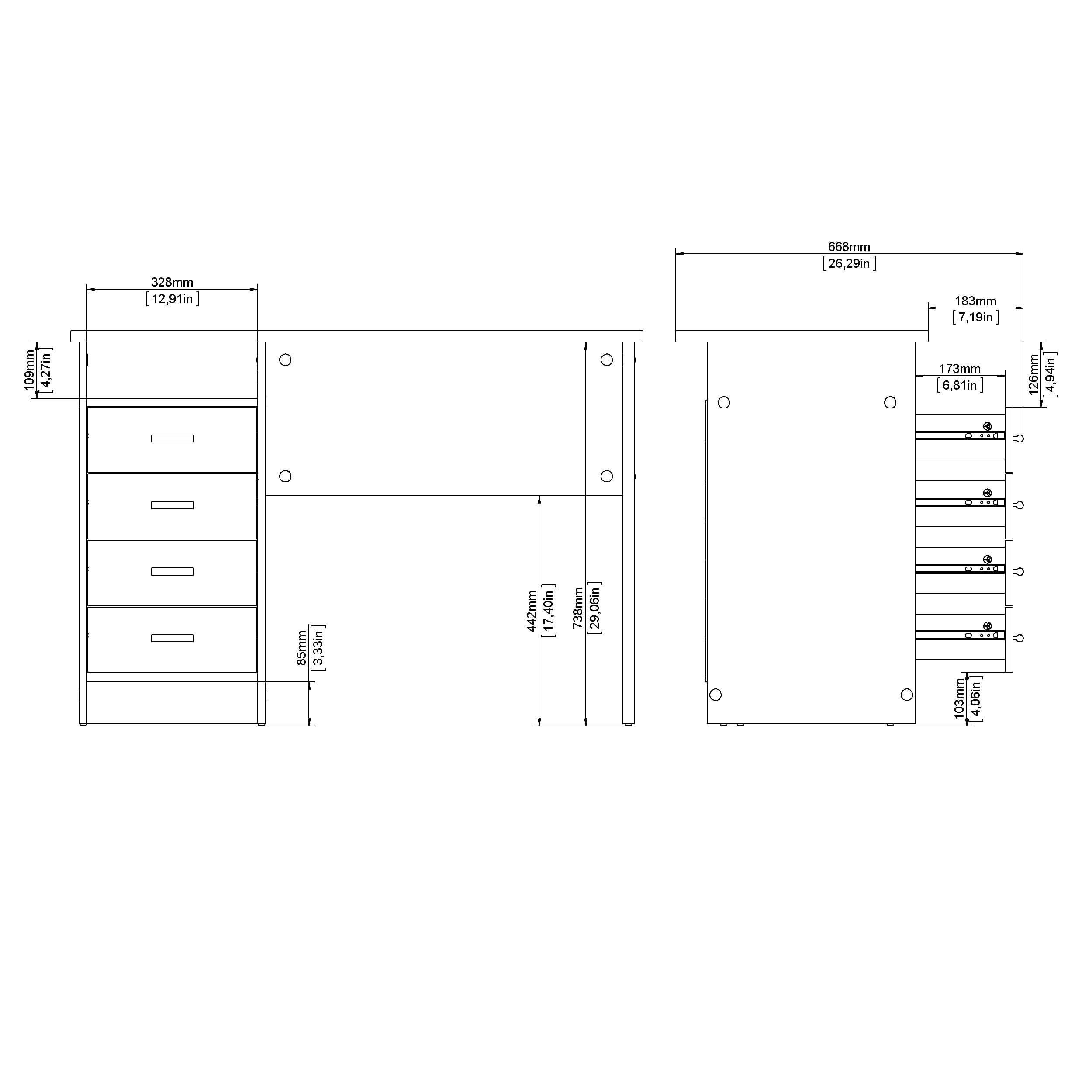 Dimensions: 43.31W x 19.09D x 29.92H in. Adds function and style to your living room or home office Four drawers and one fixed open shelf Modesty panel Drawers retract smoothly on metal glides Aluminum bar handles 3D Interactive assembly through BILT: Instructions for this product are available through the free BILT app. Find a revolutionary way to assemble & install product with voice, text, & interactive animated images Product is shipped in 1 box Suggested number of people for assembly is 2 Made from engineered wood Made in Denmark Scandinavian look and design. Assembly Required-Includes assembly manual and all necessary hardware and fasteners. Components are pre-drilled and pre-cut ready for easy assembly. Age Group: Adults