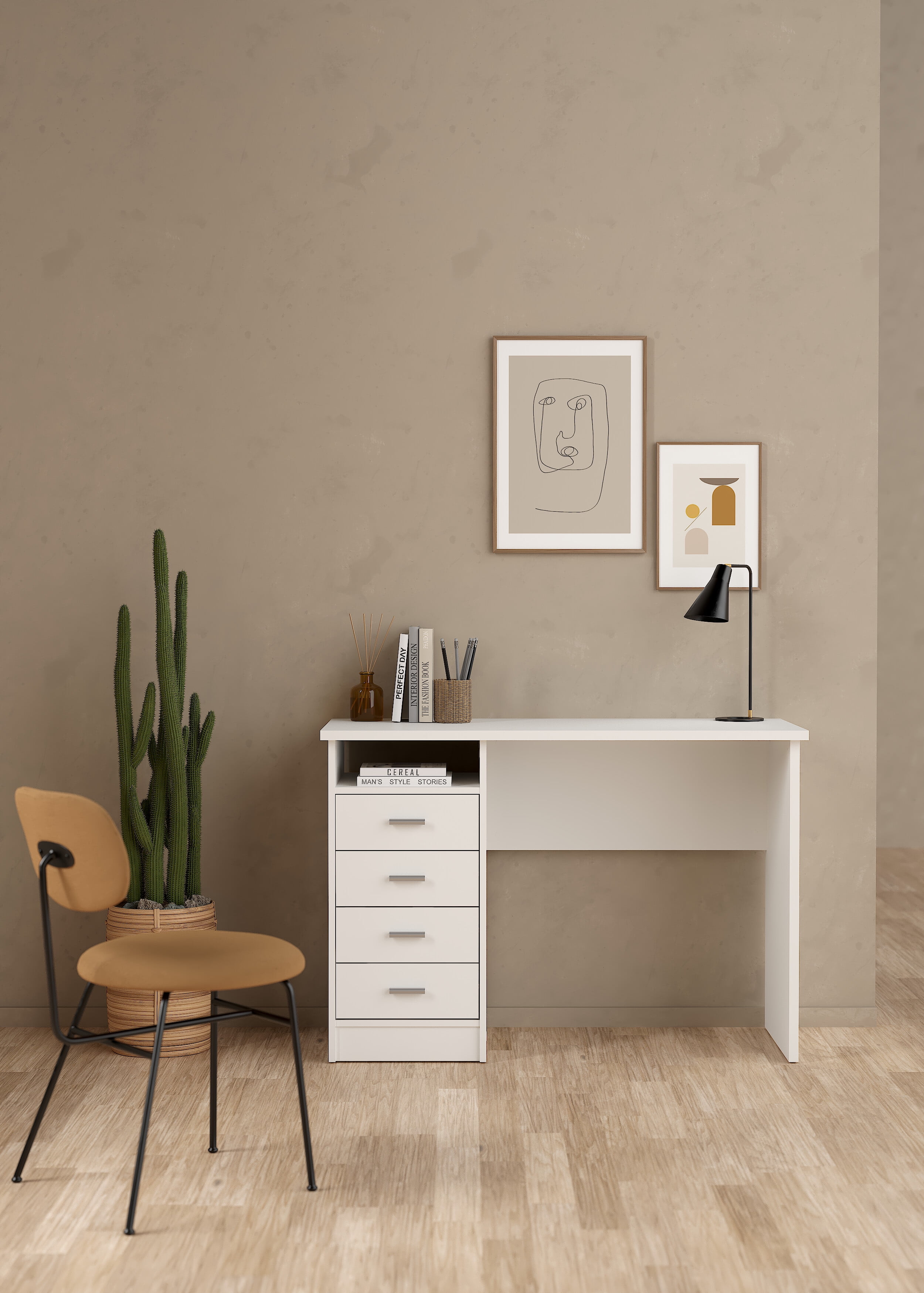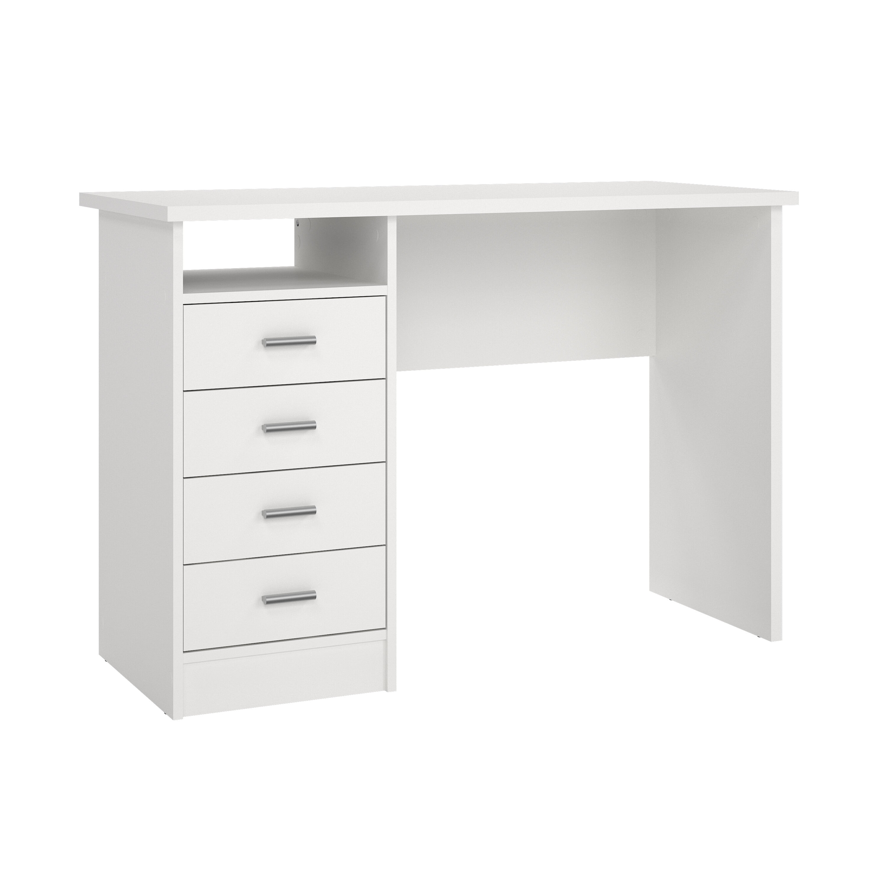 Tvilum Warner 4 Drawer Office Desk with 1 Shelf for Adults, White Finish
