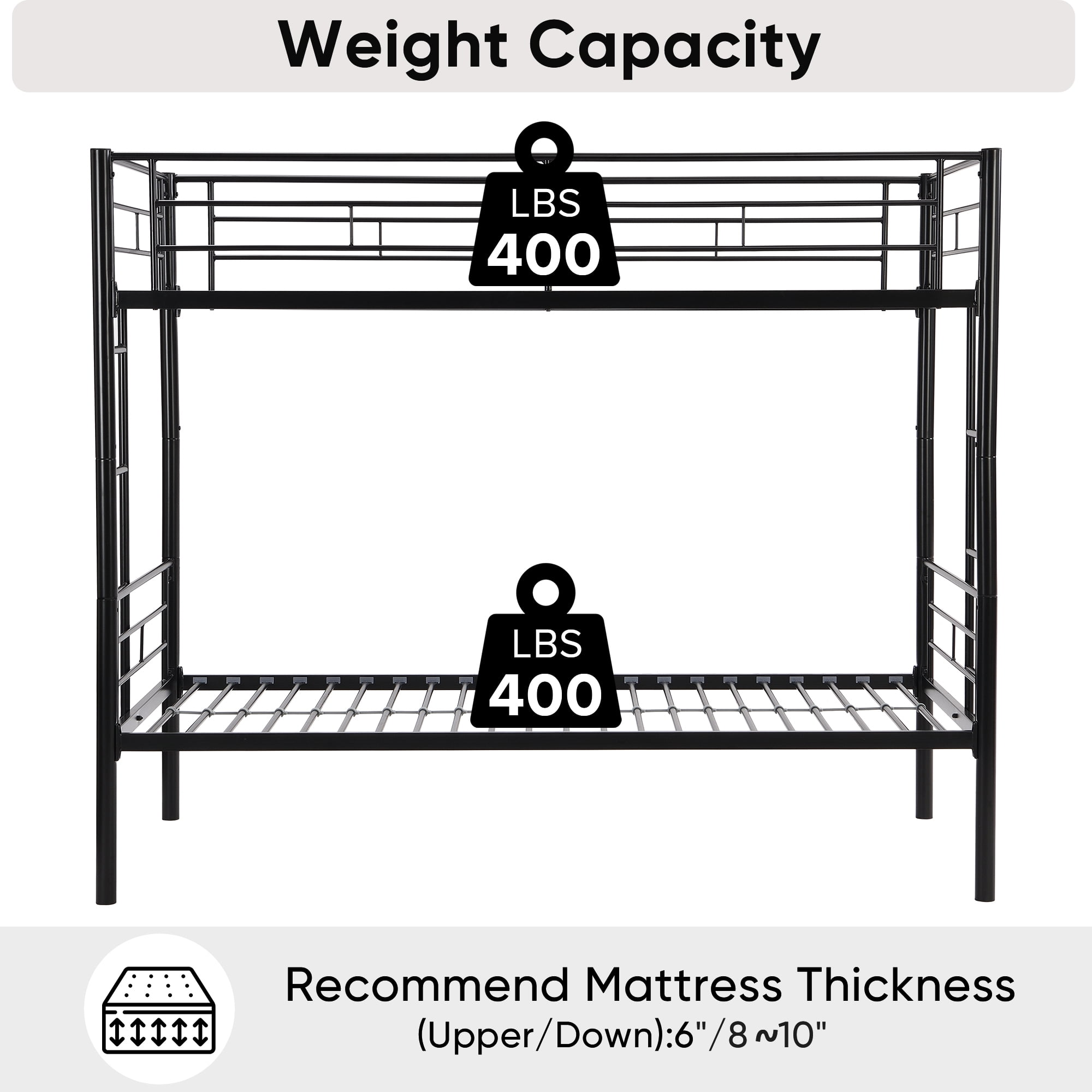 Twin Over Twin Metal Bunk Bed with 2 Ladder for Kids Bedroom,Heavy Duty Twin Size Bunk Beds with Full-Length Guardrail, 400lbs Weight Capacity, No Box Spring Needed,Black