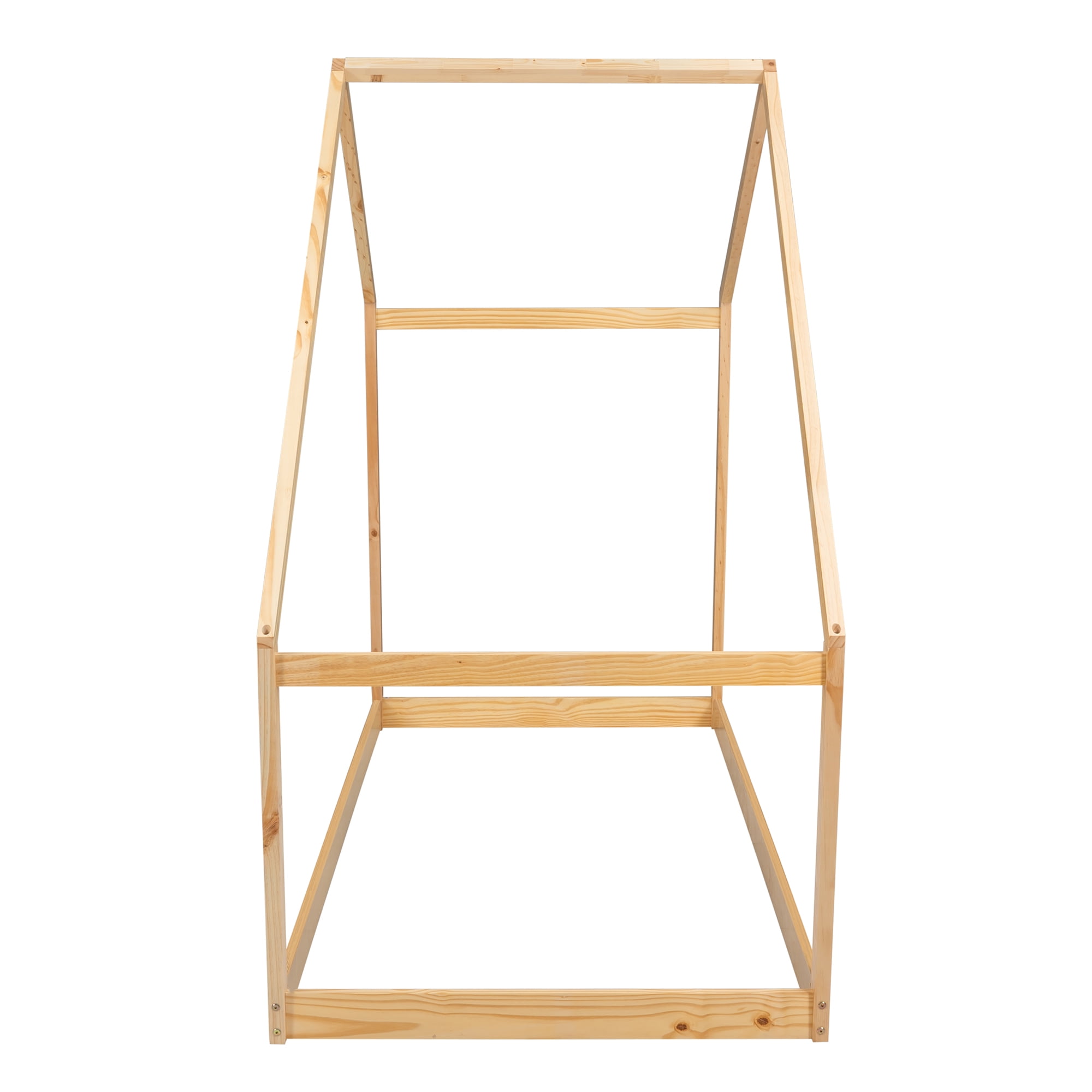 [House Bed for Kids] Transform your child’s bedroom into a playful and charming space with our kids floor bed frame featuring a roof. This unique bed creates a fun and adorable environment that serves not only as a comfortable sleeping area but also as a space for your kids to play and have endless fun. You can further enhance its appeal by decorating the bed frame with ribbons, tents, or lanterns on the eaves, allowing your kids to unleash their creativity. [Sturdy and Durable Bed Frame] Crafted from sturdy high-quality pine wood, this twin size house bed is built to last. Its durable construction ensures longevity, while the absence of wood slats eliminates weight capacity limits. All parts are reinforced with high-quality hardware accessories, providing additional stability and durability to the bed frame. [Designed for Better Sleep of Your Kids] The low profile design of the floor bed allows for easy access for kids and toddlers. Rest assured that your child’s safety is ensured as they can independently reach the bed without the need for parental assistance. They can climb on and off the bed whenever they want, fostering a sense of independence and confidence. [Multi-usage Floor Bed] Our versatile floor bed allows for flexibility in its usage. You can choose to place your mattress directly on the floor. This unique house bed frame not only provides a cozy sleeping area but also doubles as a playground, stimulating your child’s imagination and providing hours of entertainment. [Easy to Assemble] We provide all the necessary parts, tools, and instructions for easy assembly. With our step-by-step installation manual, you can effortlessly assemble this bed and have it ready for your child’s enjoyment in no time.
