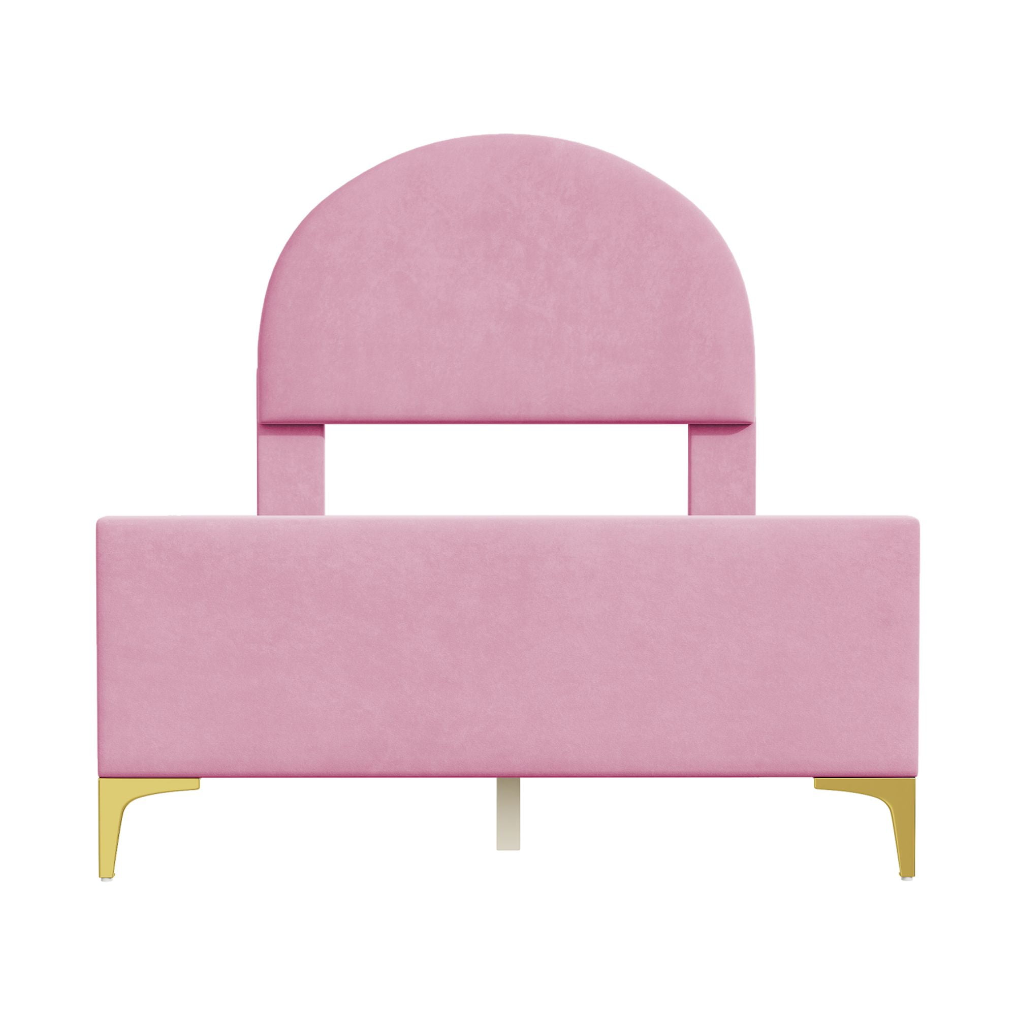 Twin Size Upholstered Bed Frame with Classic Semi-circle Shaped Headboard,Velvet Platform Bed with Mental Legs and Center Support Legs,Pink