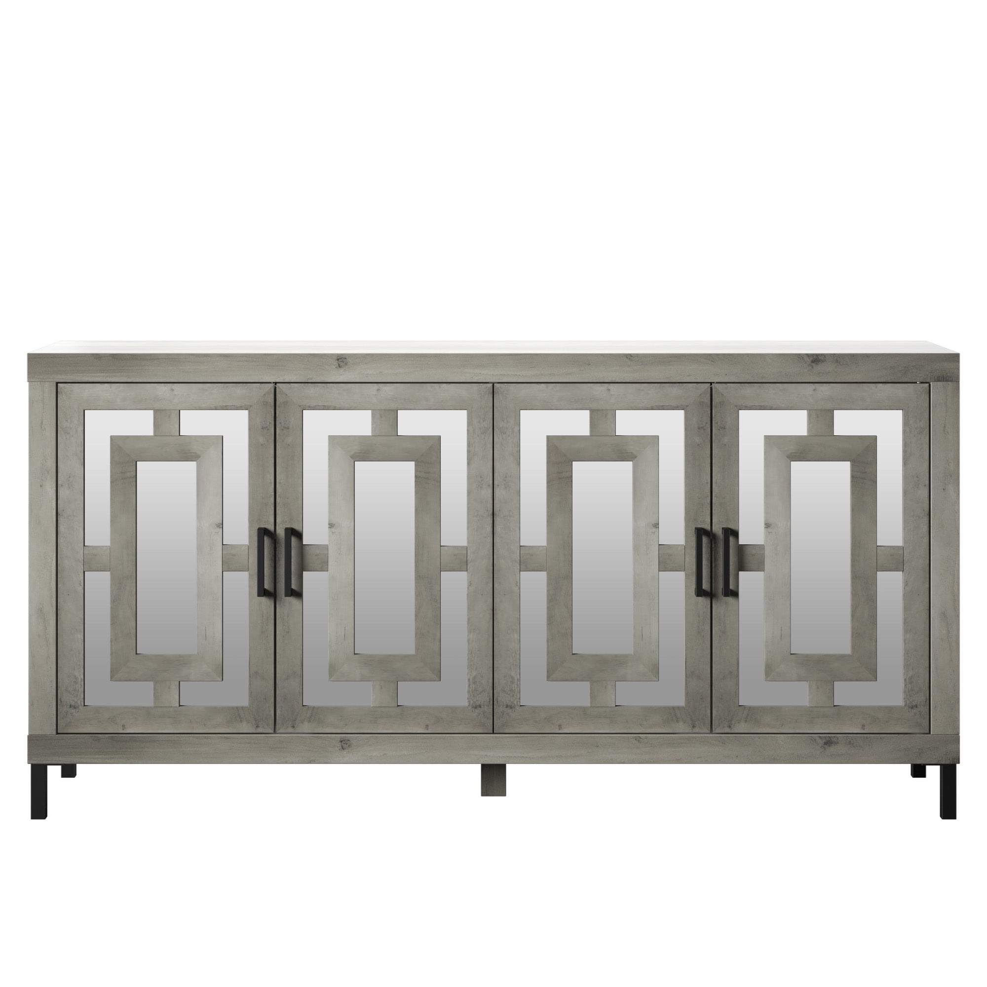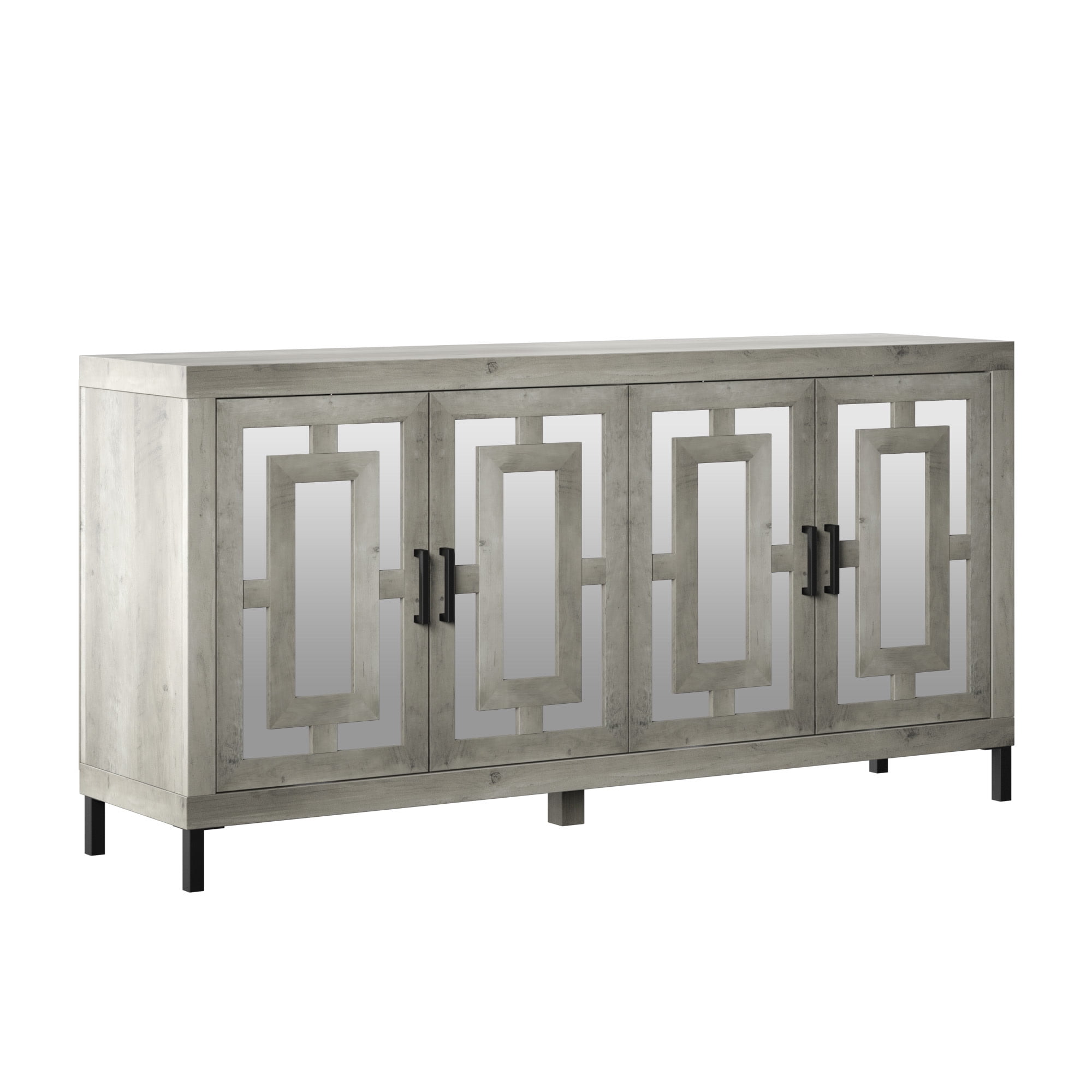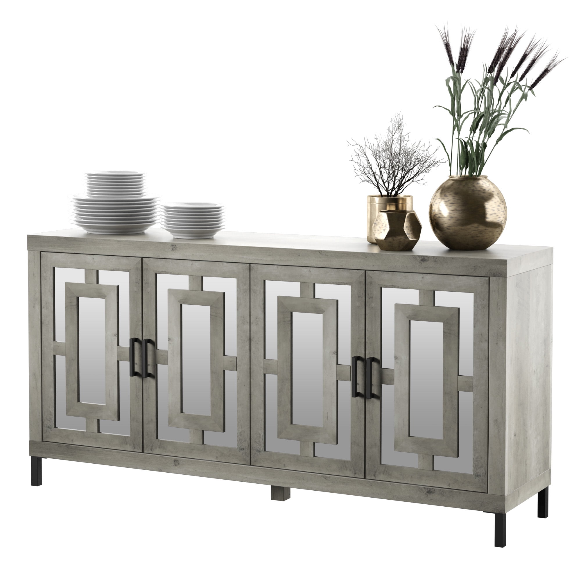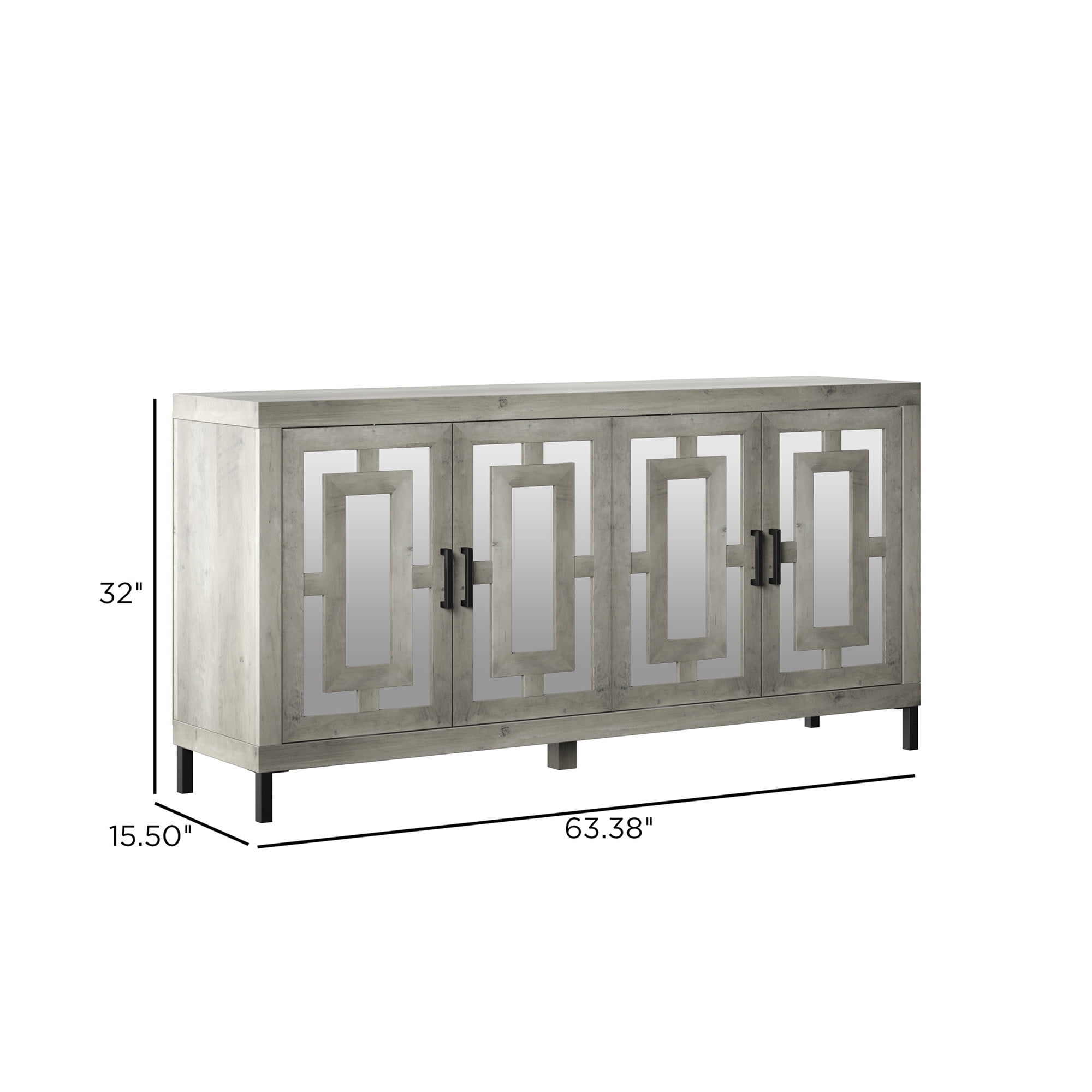 Twin Star Home 63″ Sideboard with Geometric Mirrored Doors