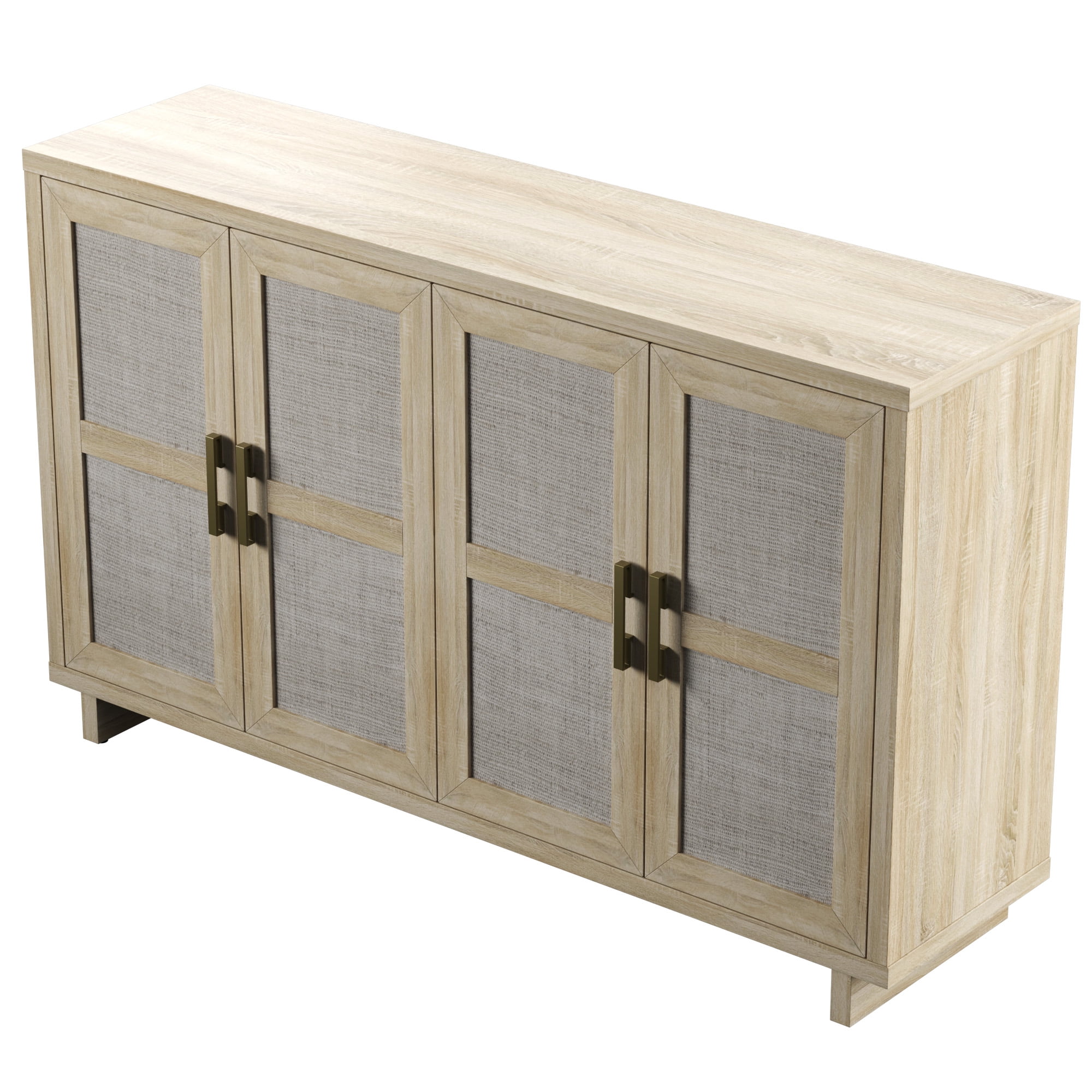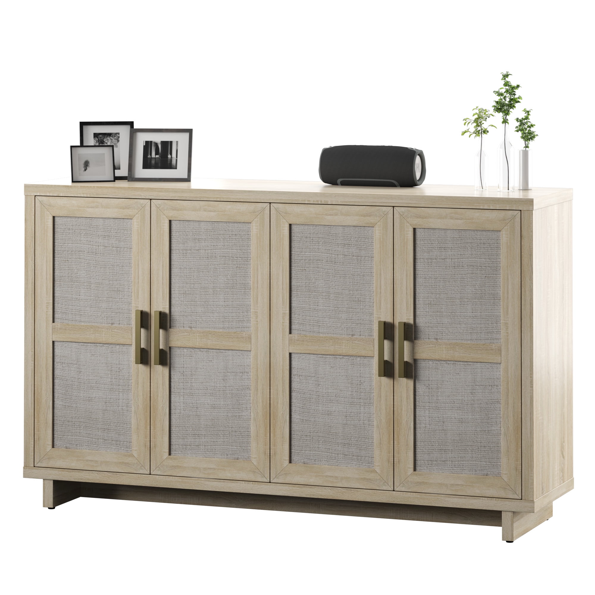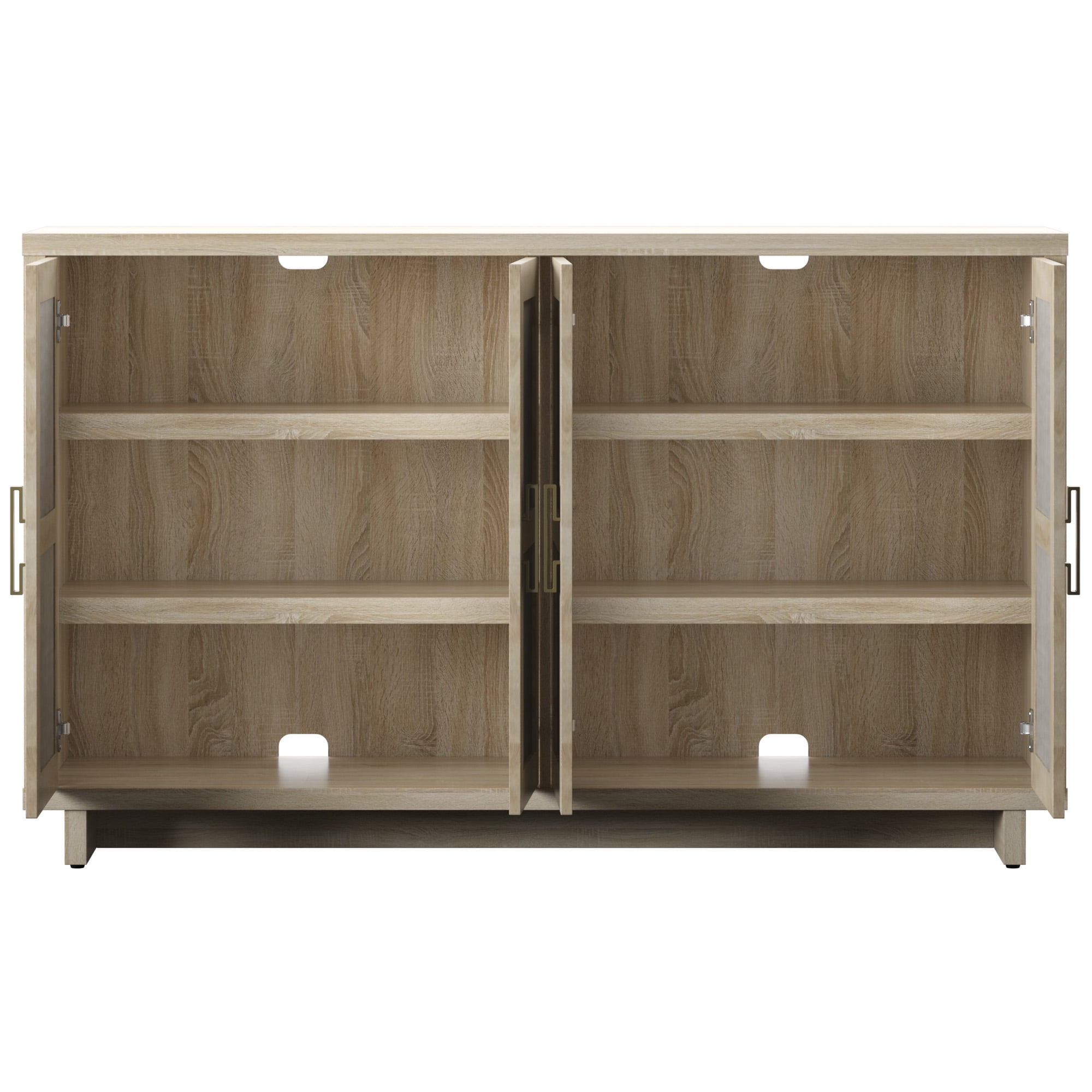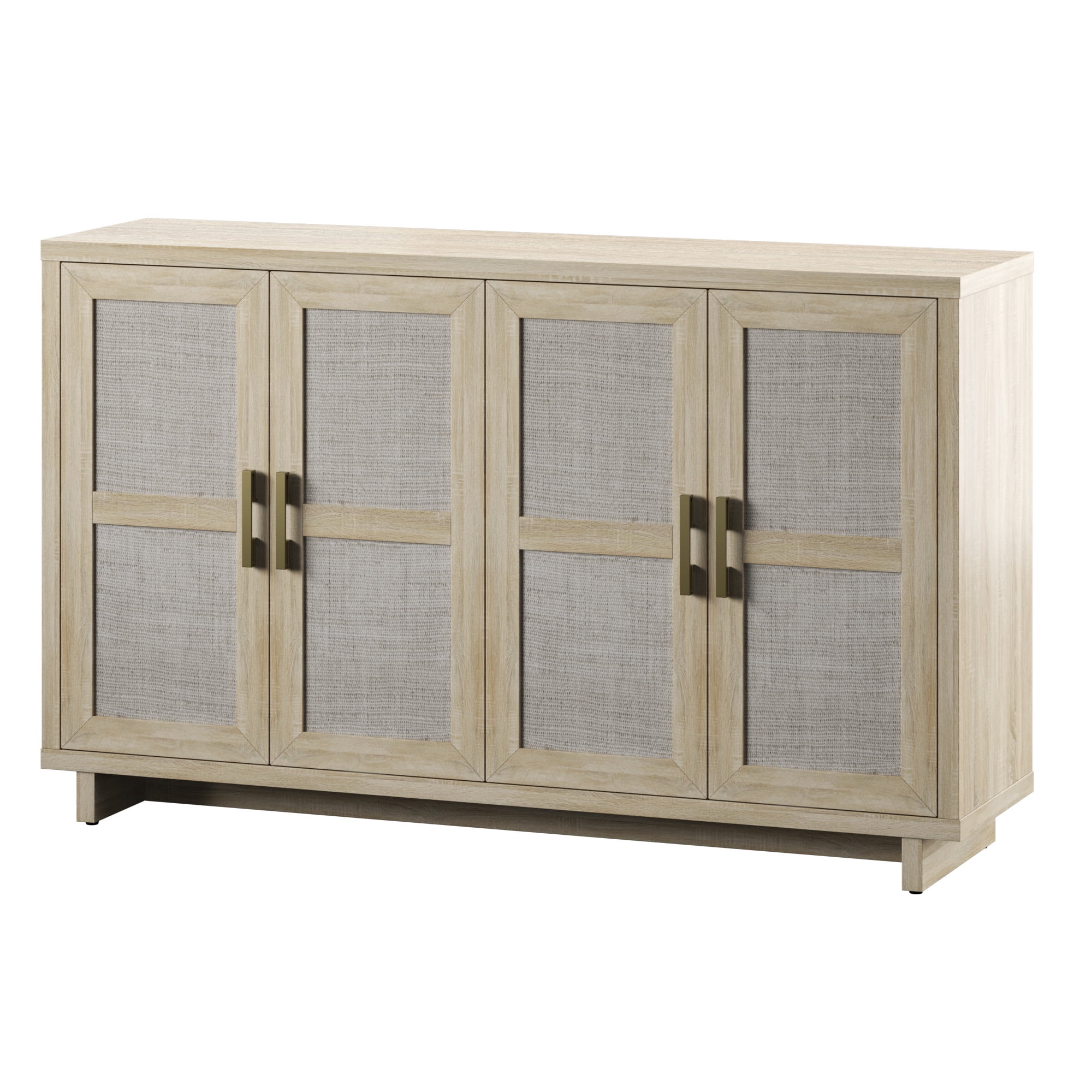 Hosting your next dinner party will be effortless with the added space provided by this coastal-inspired sideboard. Set up a buffet, create a convenient bar, or simply display your favorite beachy décor. Two double-door cabinets offer four adjustable shelves to store extra plates, table linens, wine glasses, or cutlery exactly where you need them most. What’s more, the doors feature concealed Euro hinges for a streamlined silhouette. Meanwhile, linen inspired door panels boost visual interest and deliver seaside charm. Equally at home in the dining room and the living room, the sideboard can also serve as a TV stand with handy back panel cutouts that make routing cables a breeze. Complete the look with a matching accent cabinet and writing desk for a nautical or boho aesthetic that will help make your home the most stylish destination in town.