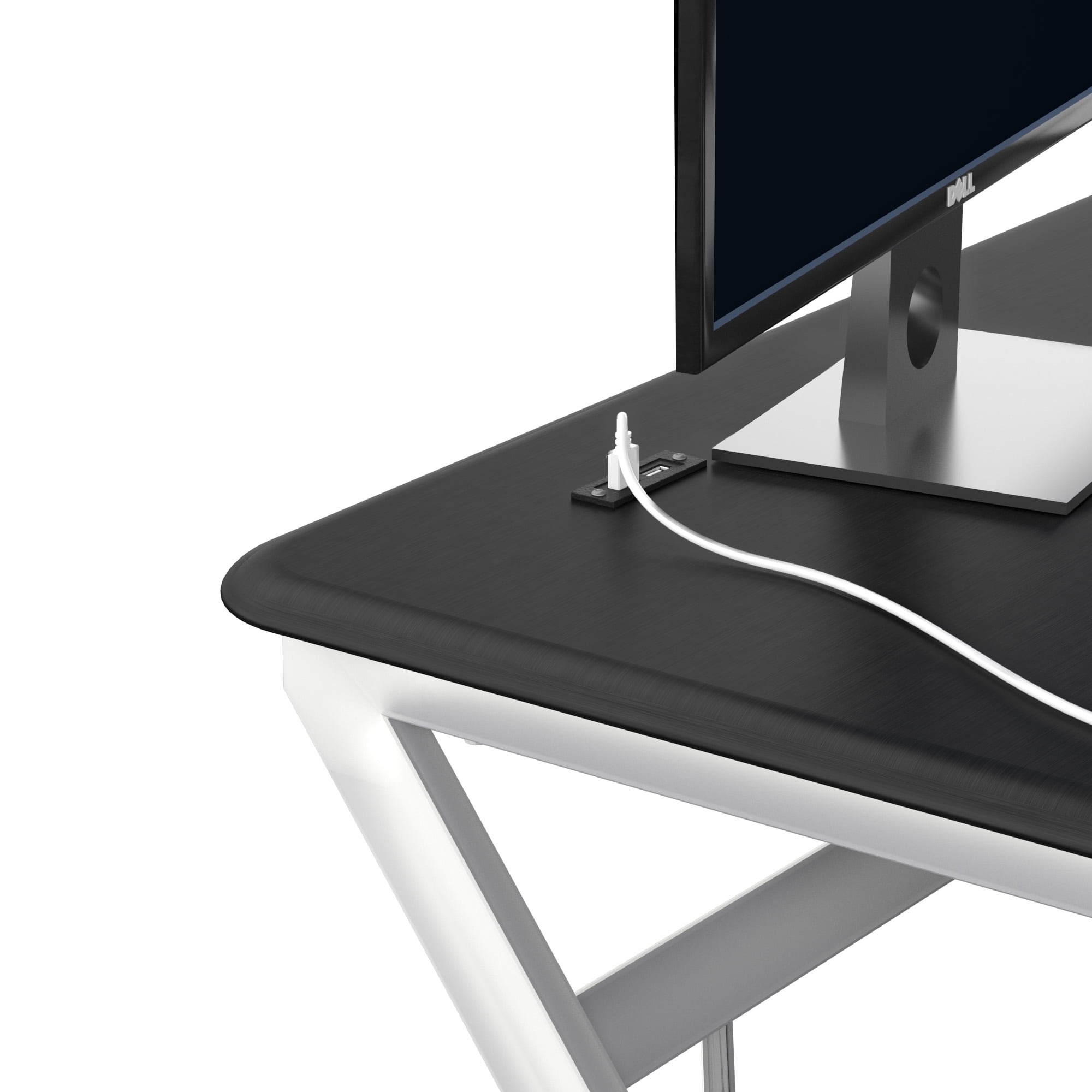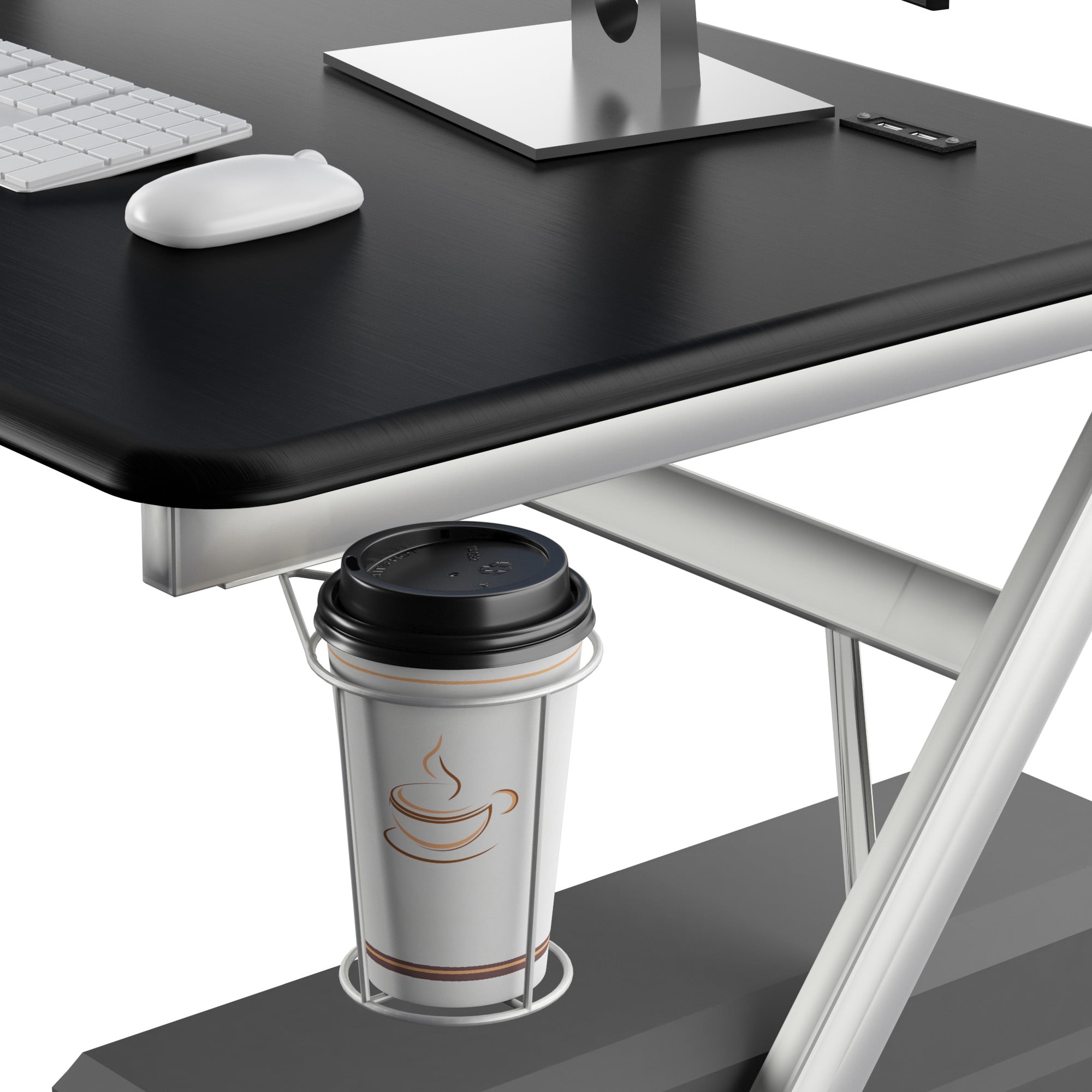 Four 2.4 amp USB power ports are integrated into the desk top (USB wall adapters not included) Headphone rack attached to the edge of the desk One attached cup holder Metal frame for durable and modern style Easy to assemble with just a Phillips head screwdriver and easy-to-follow instructions