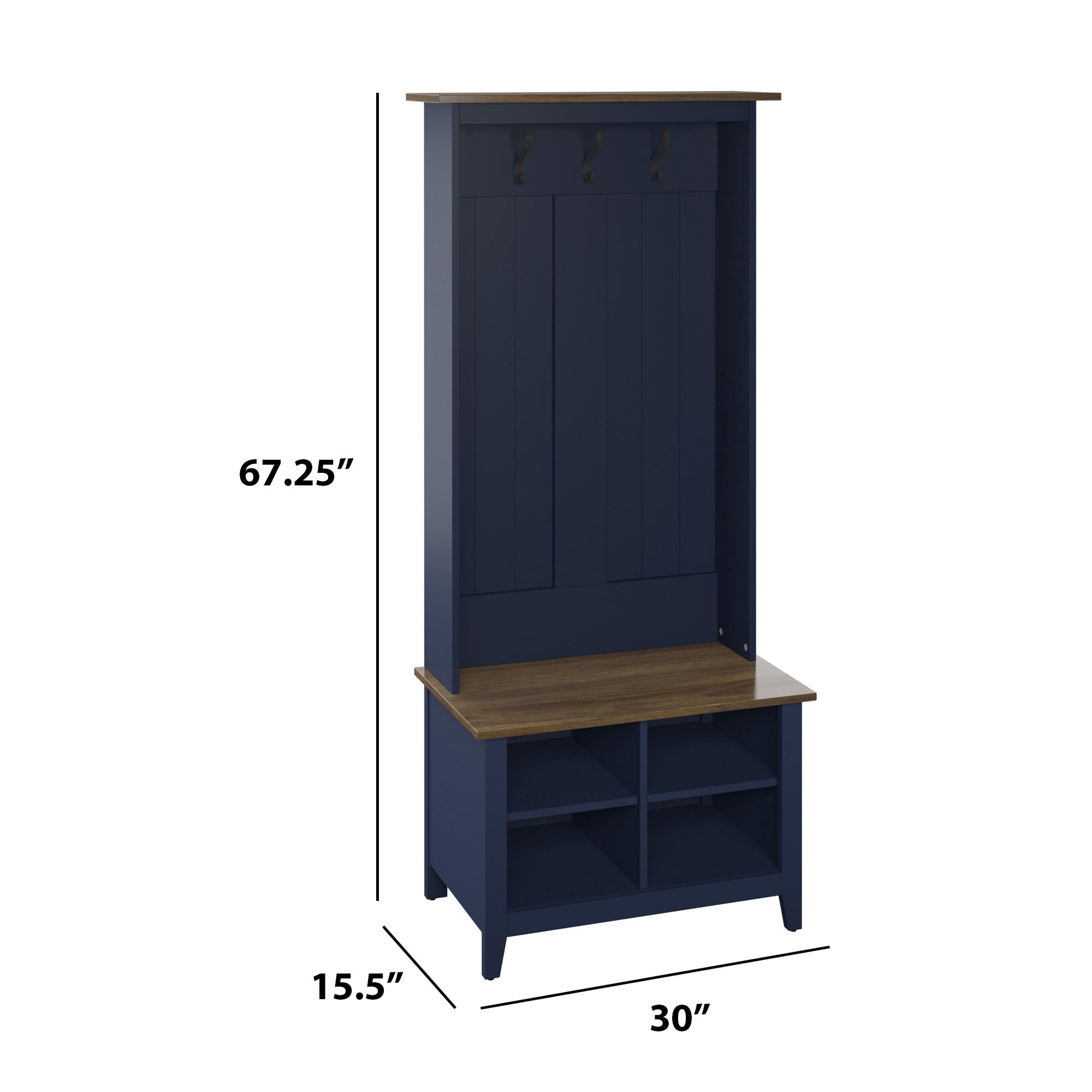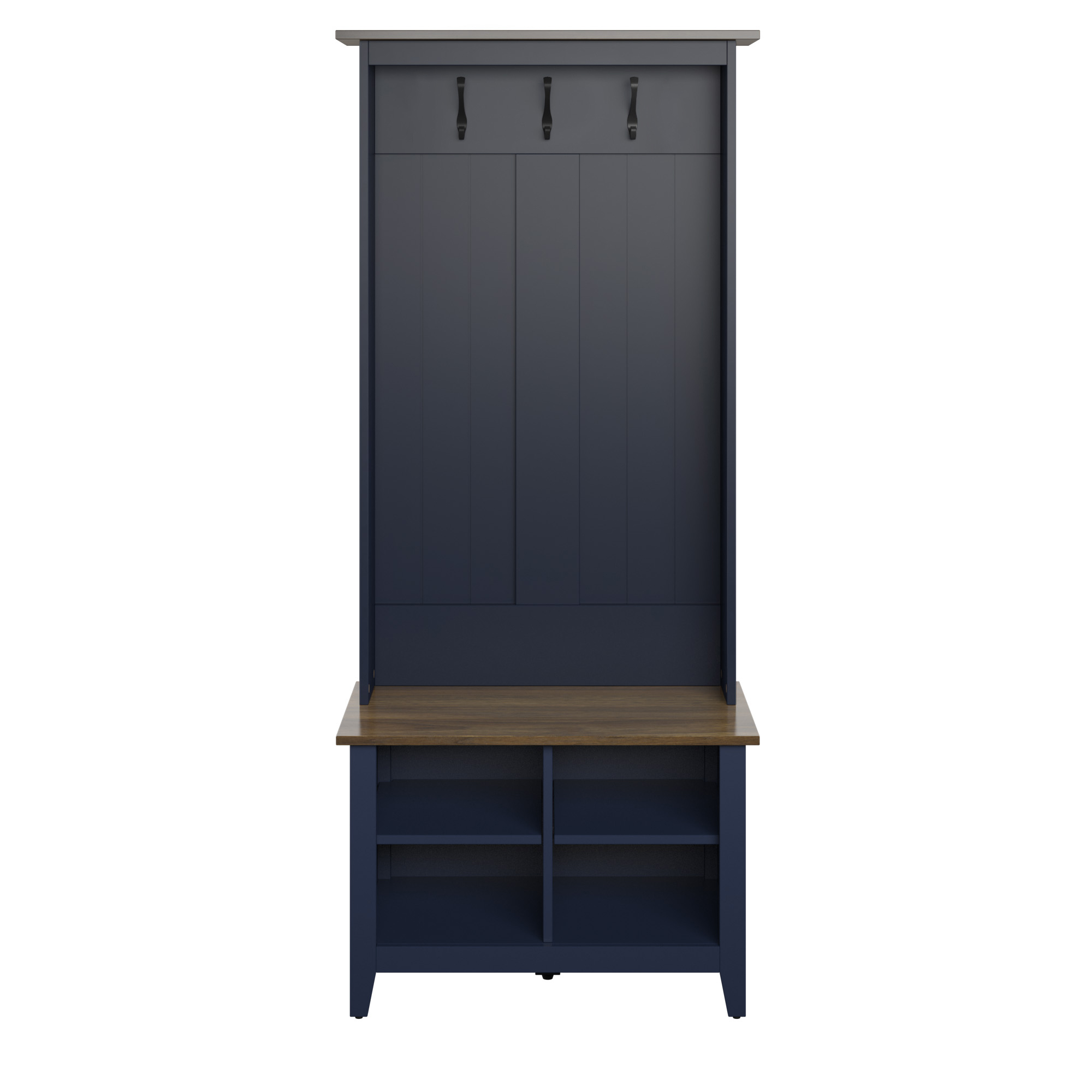 Twin Star Home Hall Tree with Storage Bench in Insignia Blue