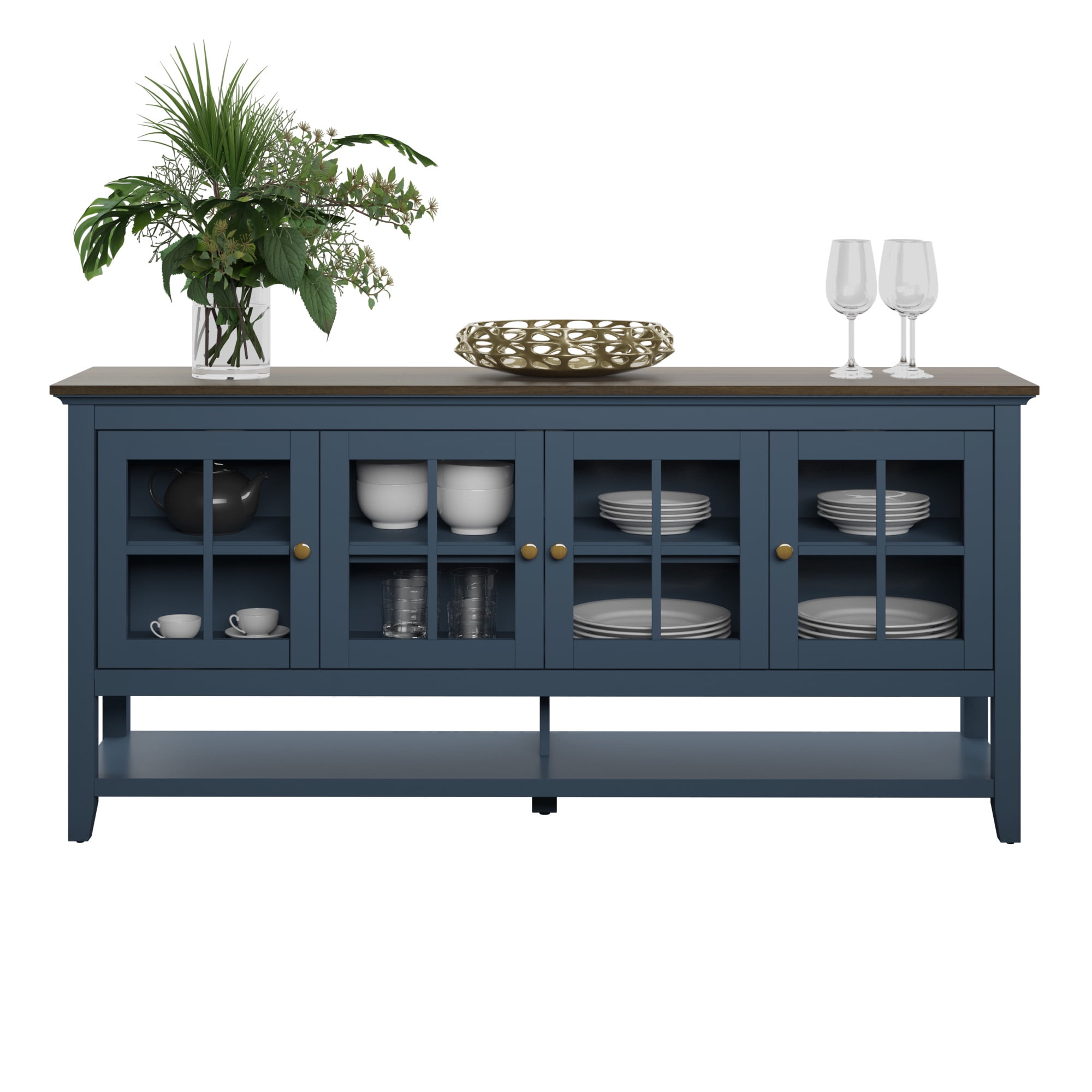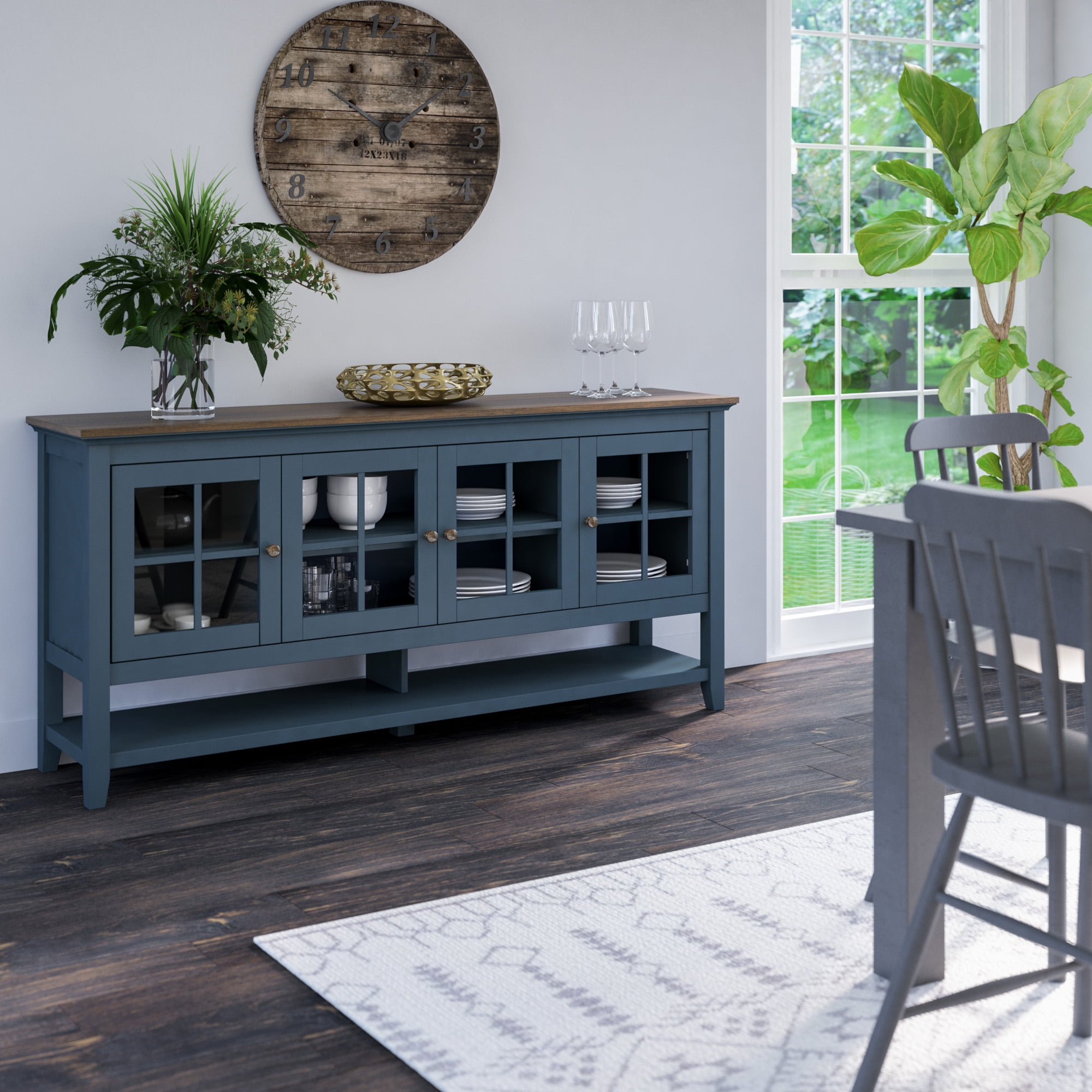 Twin Star Home Modern Farmhouse Sideboard with Glass Doors