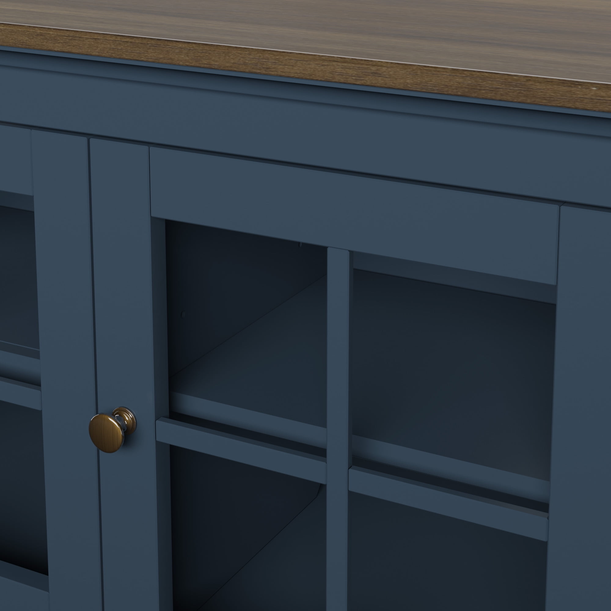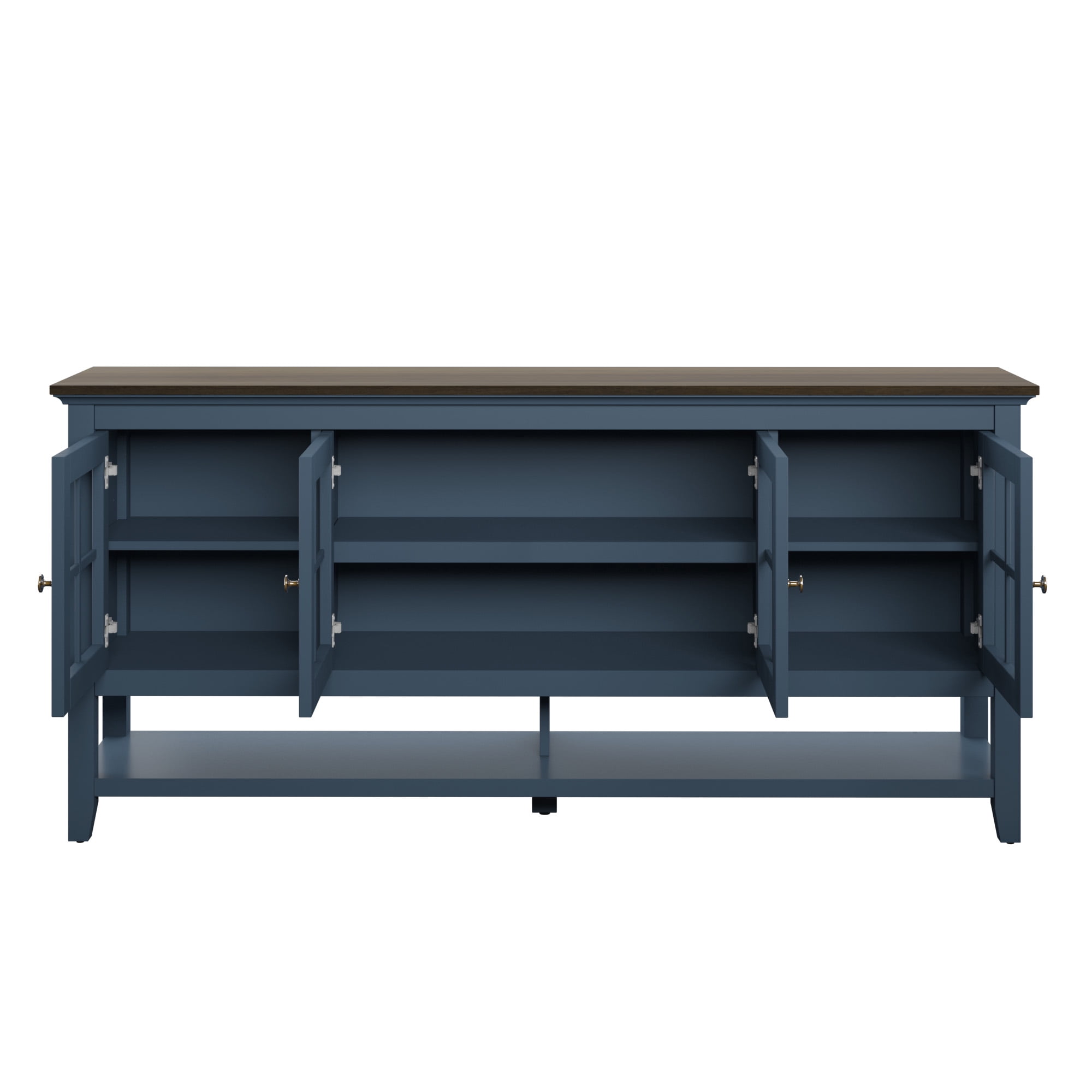 It’s easy to add modern farmhouse charm to your dining room with this gorgeous sideboard. Set up a buffet, create a coffee bar, or simply display your favorite home accents on the open-top surface. In addition to farmhouse flair, the sideboard has four window pane cabinet doors, so you can easily store your plates, glasses, tumblers, napkins, and more. The cabinets include adjustable shelves and feature back panel cut-outs, perfect for controlling the wires associated with your smart home devices and other media accessories. Need more storage? No problem! This stunning sideboard comes with a lower shelf for extra storage.