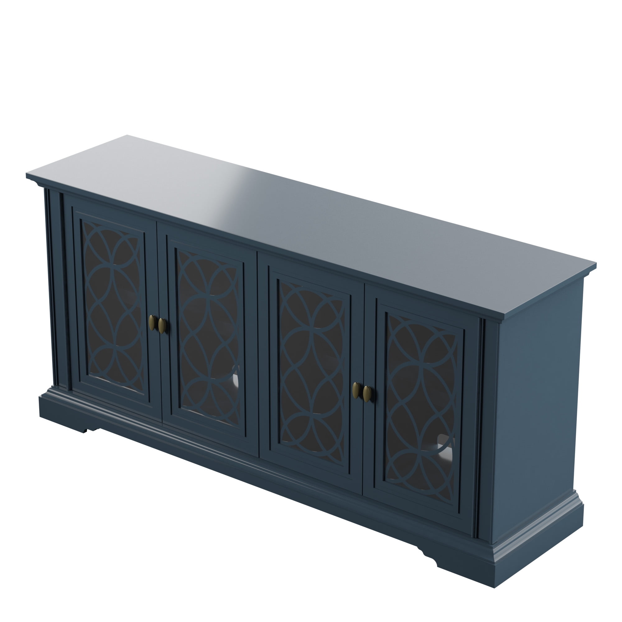 Twin Star Home Sideboard with Tempered Glass Panels with Tempered Glass Panels in Fontana Blue