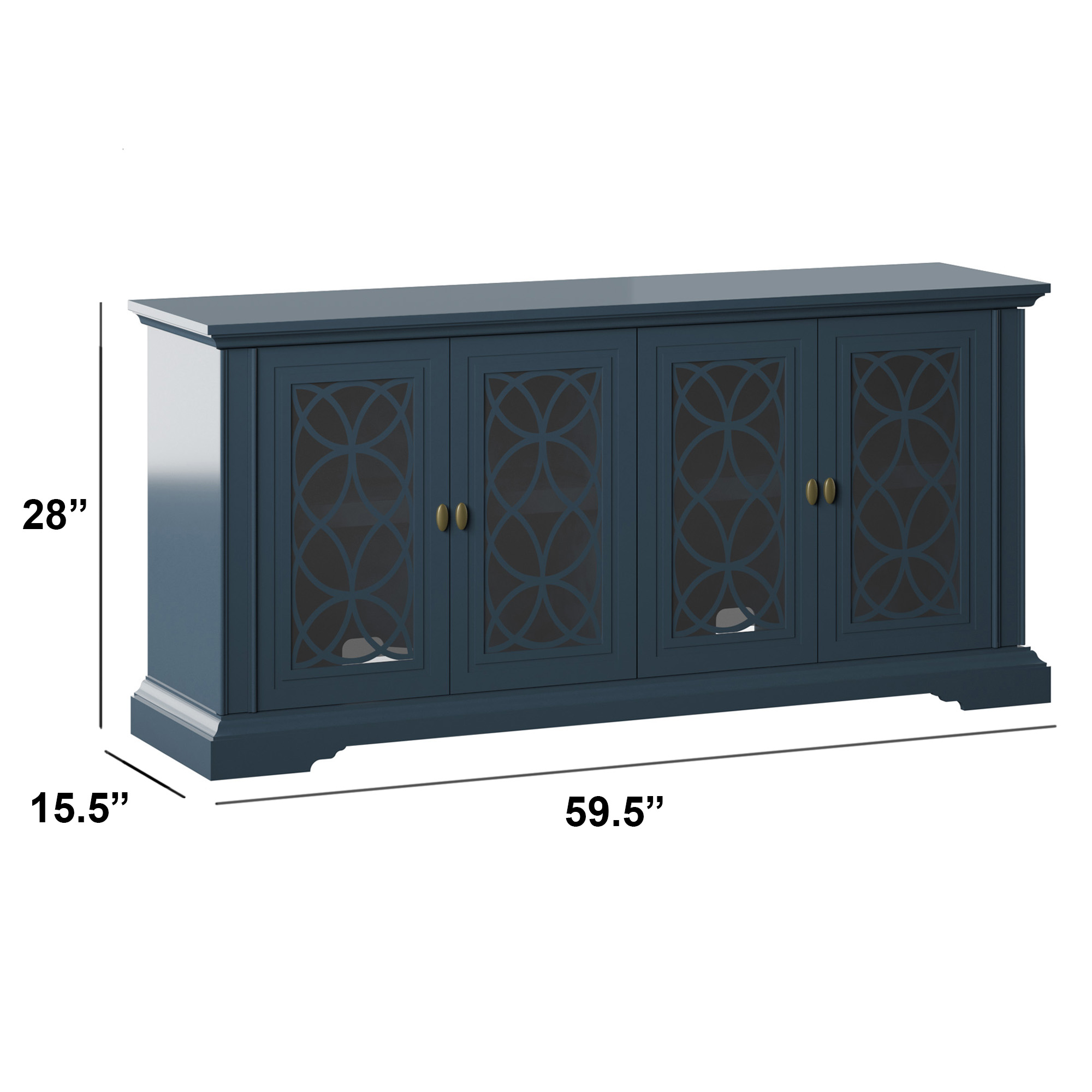 Enjoy your favorite meals in style with this traditional sideboard. Designed to accommodate appetizers and meals, this classic sideboard is perfect for cozy family dinners or larger gatherings with friends. There’s plenty of storage for all your plates and placemats with adjustable shelves behind the double doors. Tempered-glass panels and screen-printed mullions complement any area. Keep all your wires and cables neatly organized, thanks to back panel cut-outs. This multifunctional piece even works in the living room as a beautiful TV stand for all your entertainment needs.