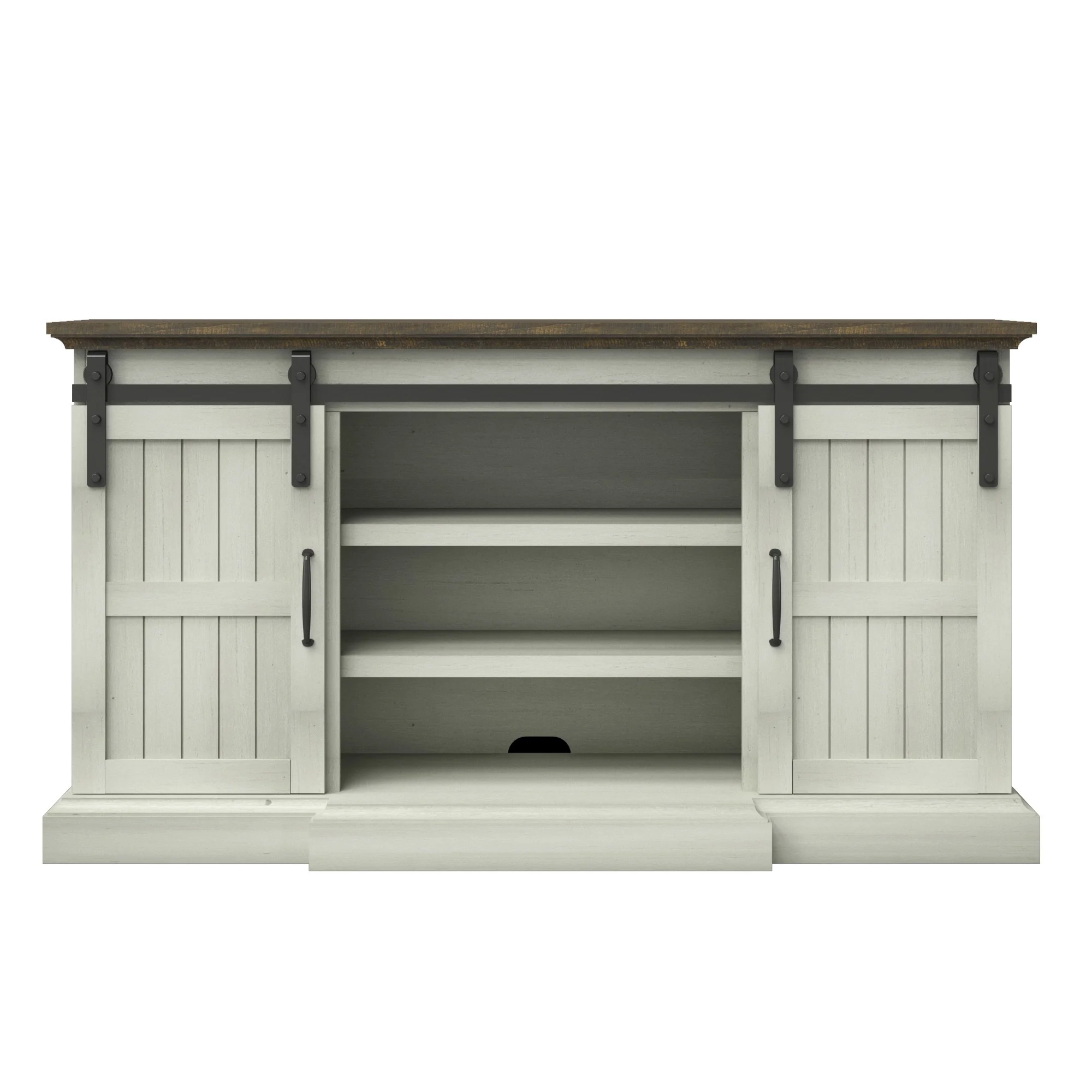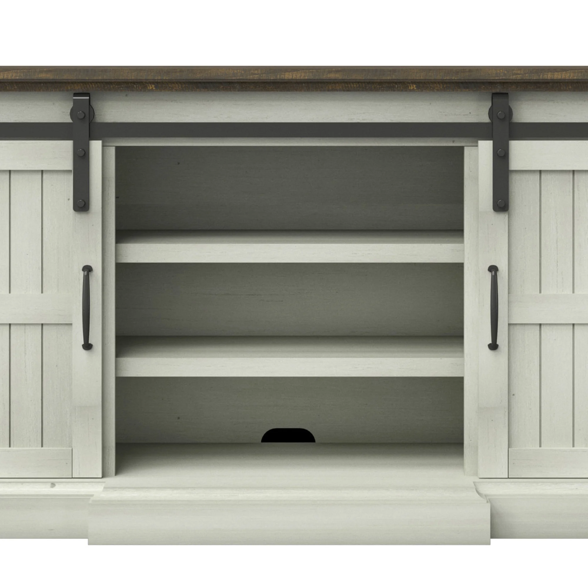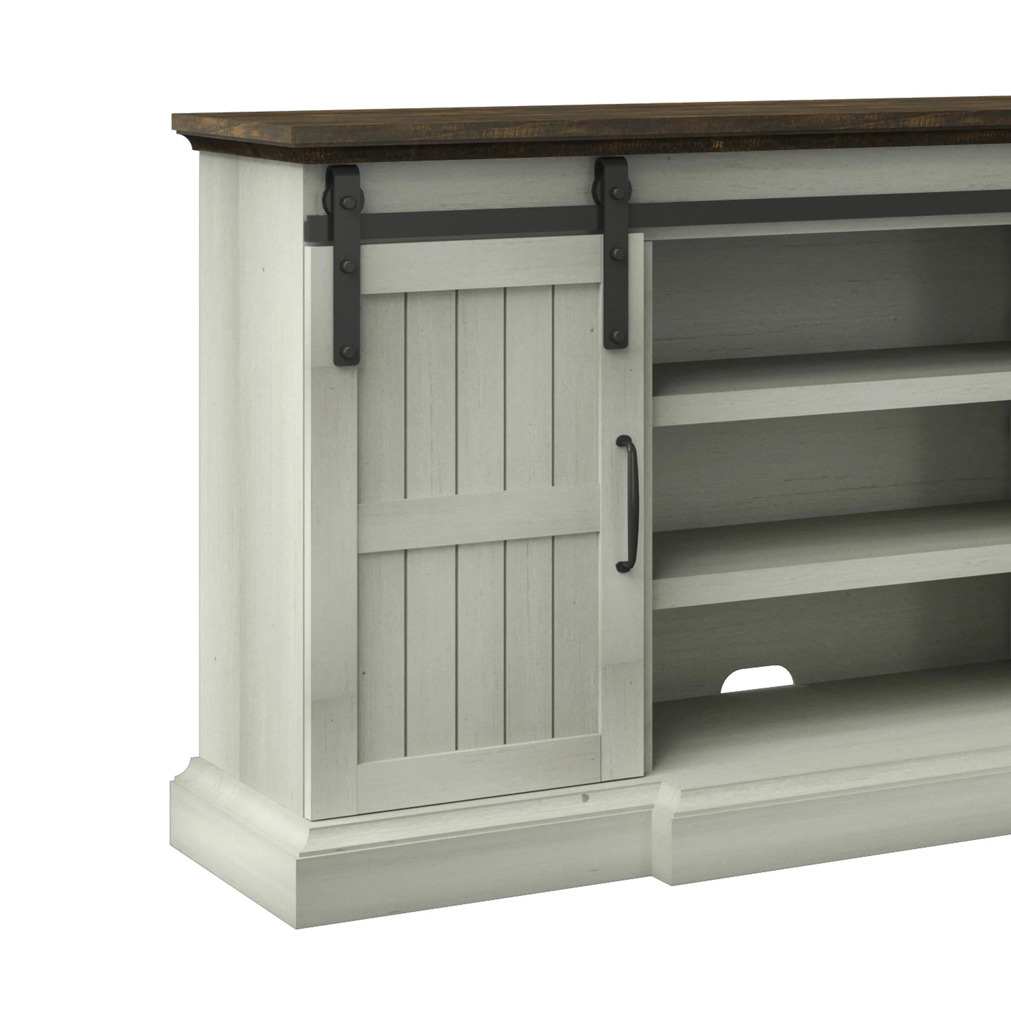 Twin Star Home Sliding Barn Door TV Stand for TVs up to 70” in Old Wood White