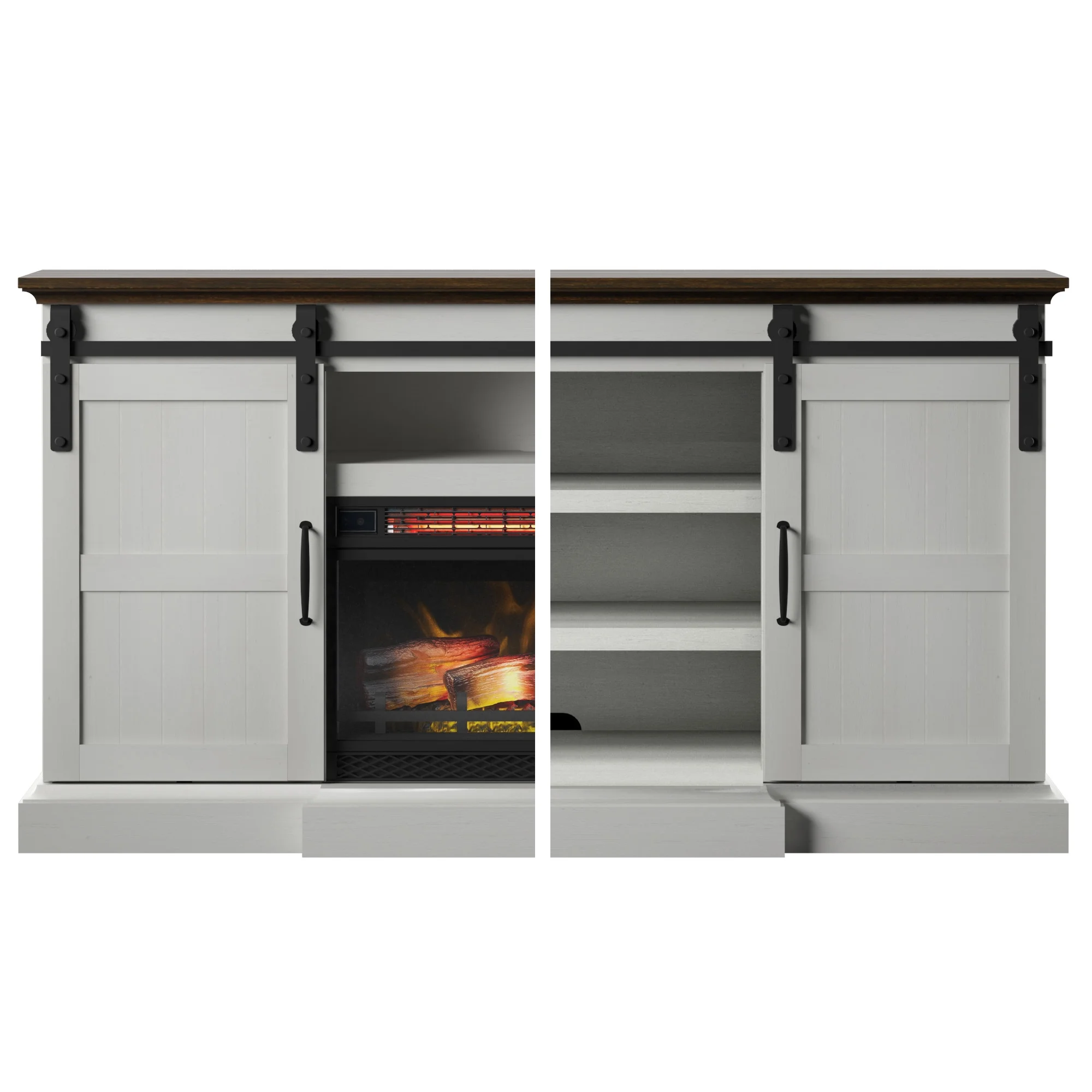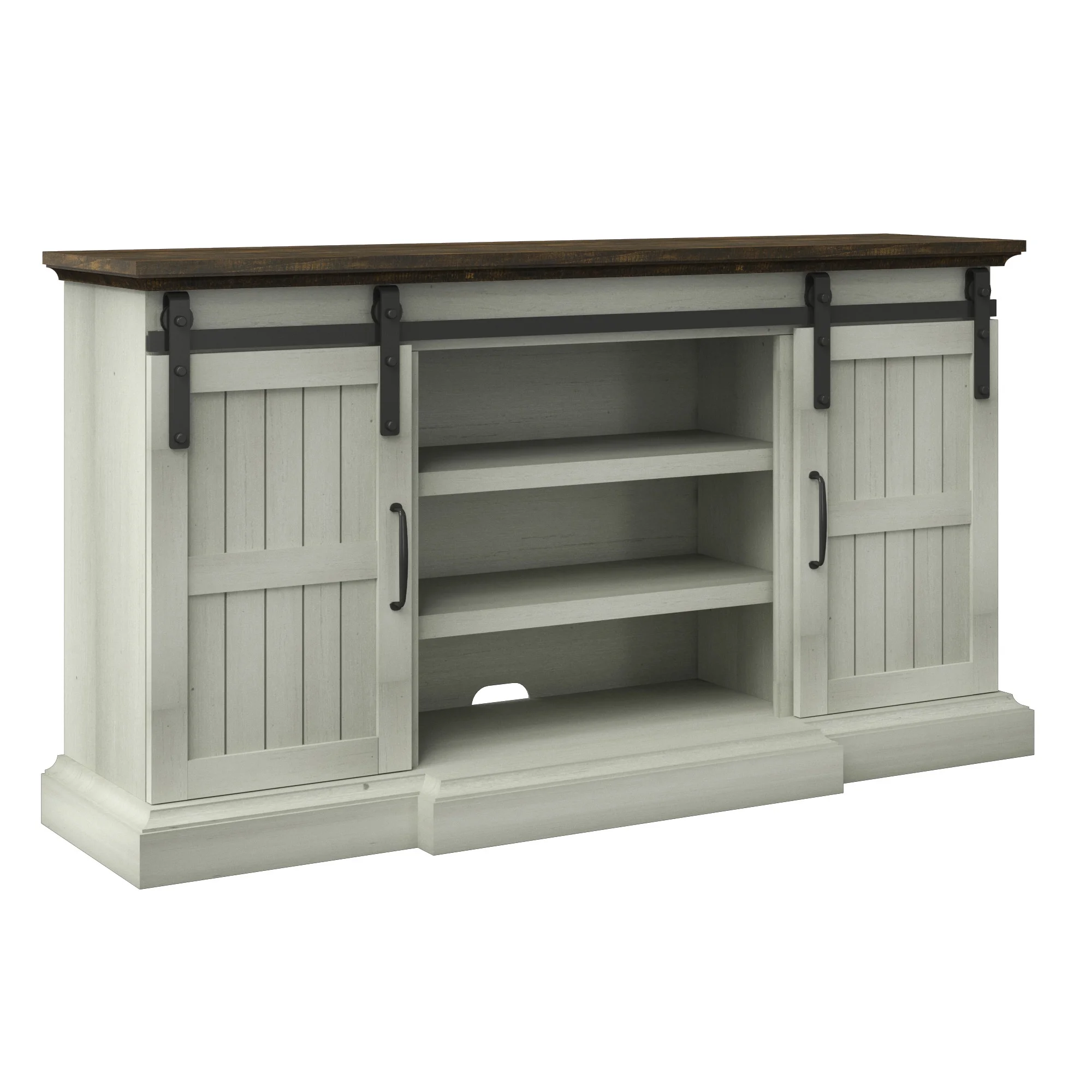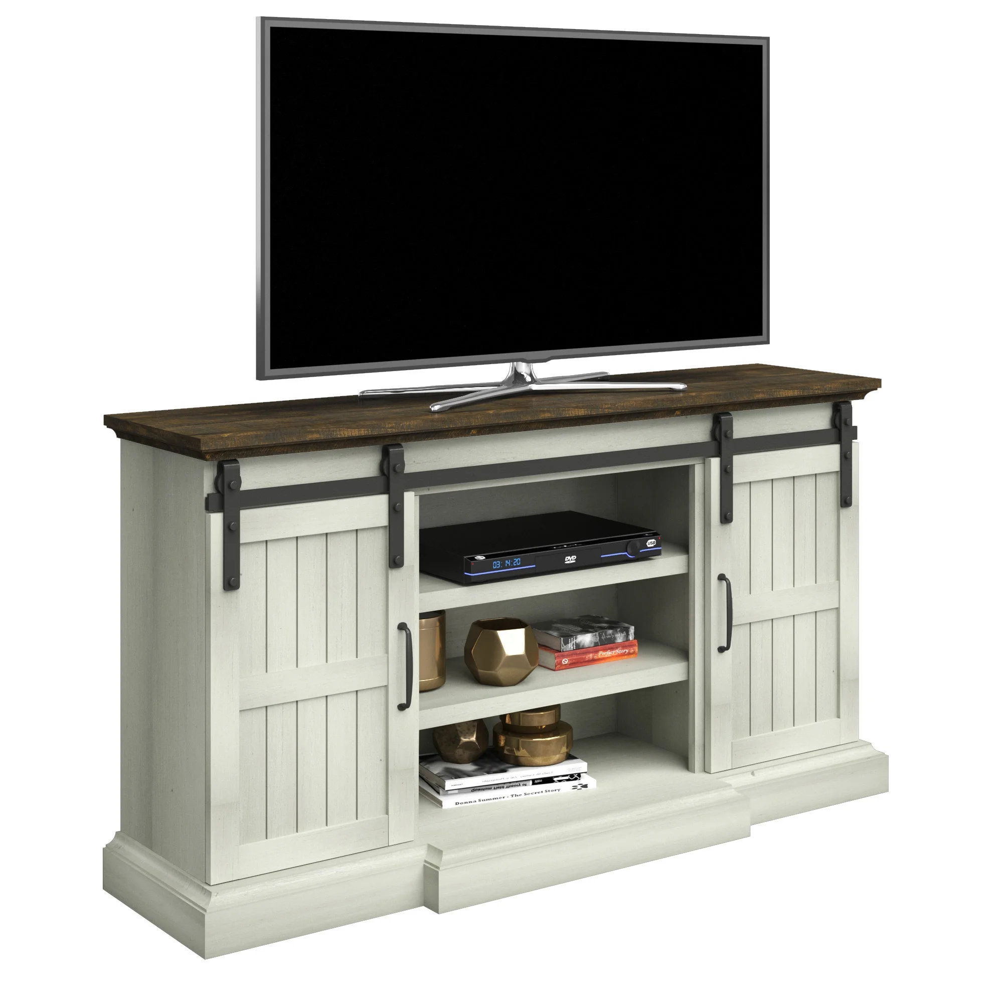 Twin Star Home Sliding Barn Door TV Stand for TVs up to 70” in Old Wood White