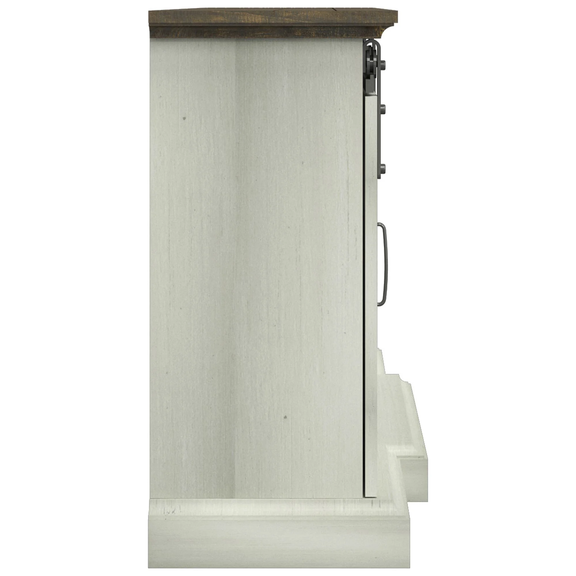 Give your home that stylish, rustic cottage look with the Twin Star Home Sliding Barn Door TV Stand for TVs up to 70”. With more than enough room to store gaming consoles, a DVR, other AV components, and even a few of your favorite decorative accents, this piece is just as functional for supporting your TV up to 70” and 70 pounds, as it is for giving your home an unforgettable style boost. Two adjustable shelves in each side cabinet and two in the center section all are adjustable to three height levels for storage options that suit you. True sliding barn doors that glide on metal rails are the detail that create that cottage atmosphere that will keep your friends talking during weekend dinner parties. Rear pass-through holes make cable management easy and offer ventilation for electronics.