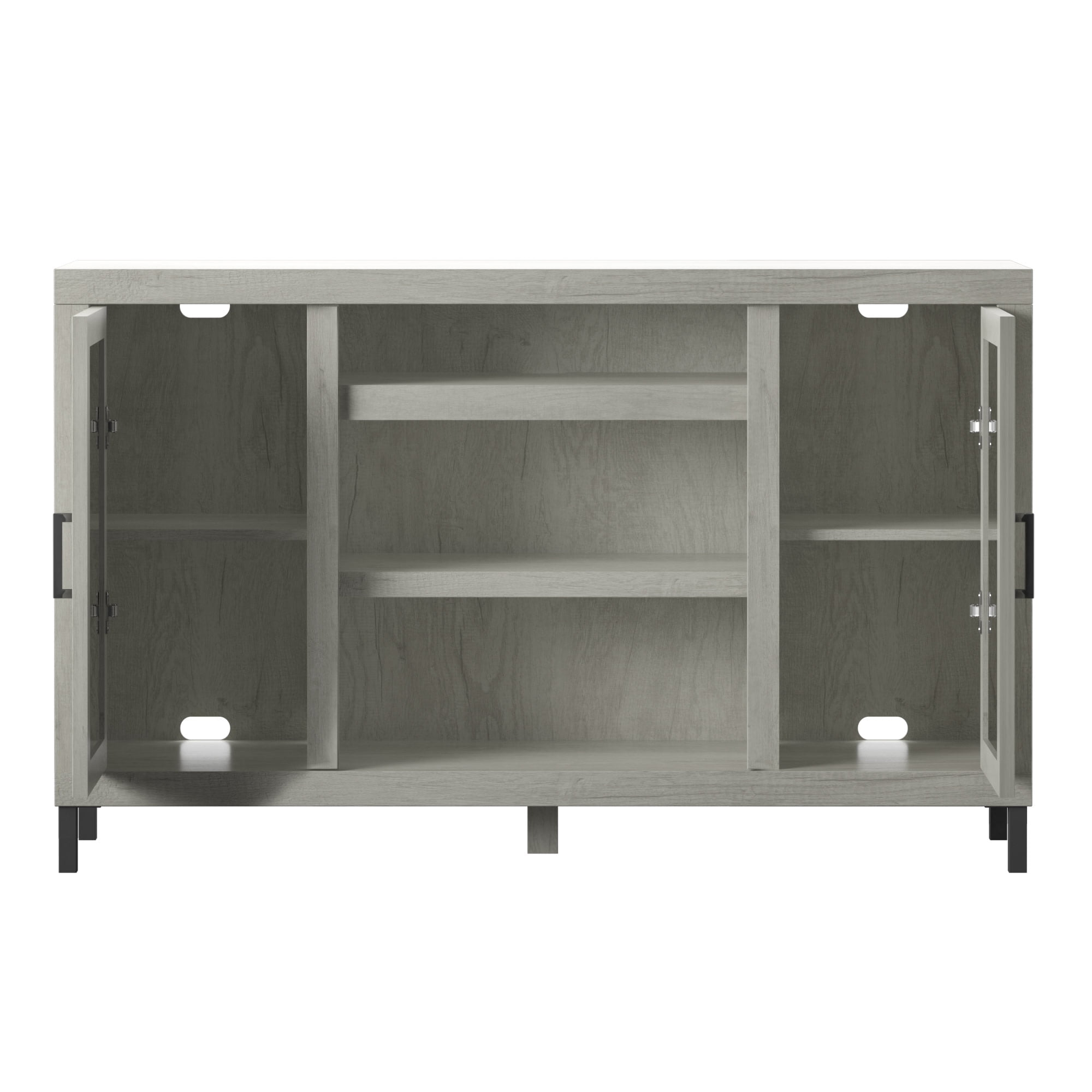 If you’re craving rustic, coastal elements and glam style for your living room, then this TV stand has it all. Side cabinets with mirrored doors and decorative mullions show off your style while adjustable shelves keep all of your entertainment must-haves organized. Upgrading to the TV stand that includes an electric fireplace means you get the added bonus of brilliant flames and efficient supplemental heating. Enjoy your fireplace year round with independent flame and heat controls that help you set the mood for every occasion. Want a whole new look for your space? Get the matching bar cabinet for a truly stunning space meant for entertaining all of your friends and family.