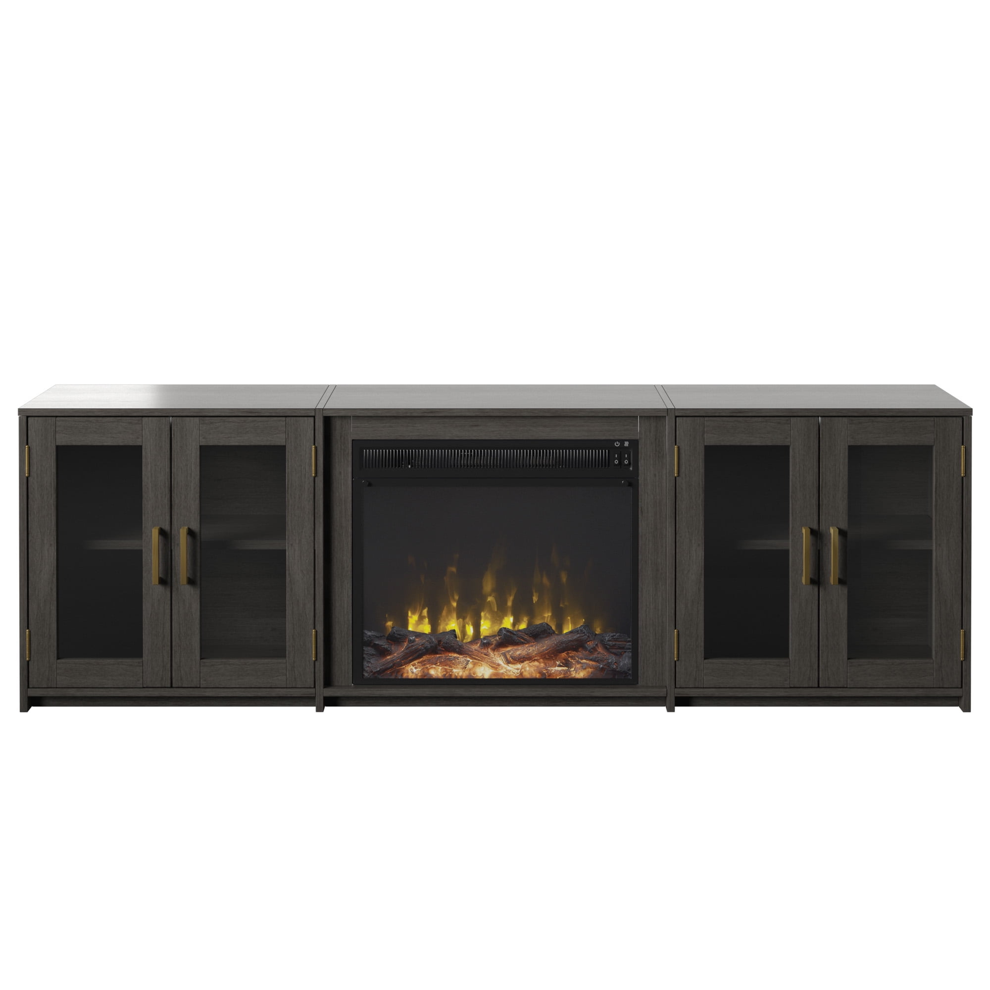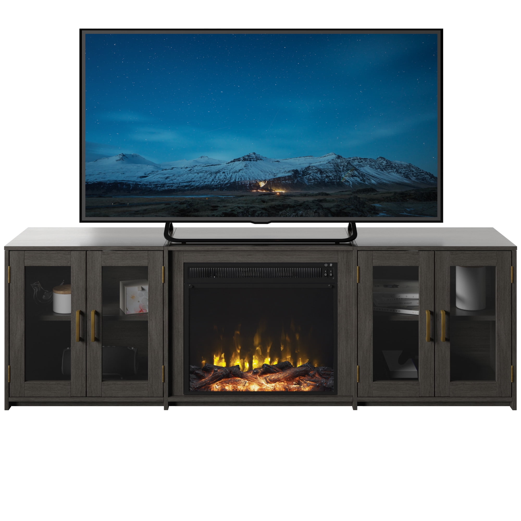 Twin Star Home TV Stand for TVs up to 80 in. with Electric Fireplace and Glass Cabinet Doors