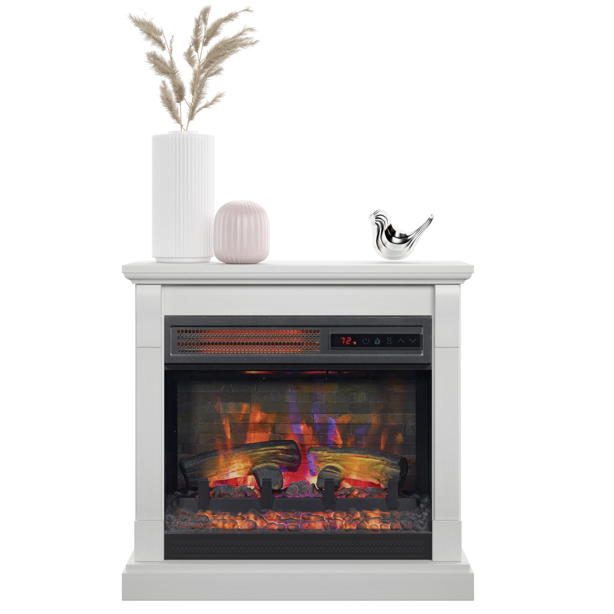 Traditional design with a stacked stone panel for classic style all year long Patent pending 3D Flame® Effect technology creates beautiful, life-like flames with five adjustable brightness settings and flame speeds Eco-friendly, energy efficient fireplace does not emit any emissions or other hazardous by products Safe to use around children and pets Automatic timer turns the heater off according to your preferences, whether it be 30 minutes or several hours Remote control included Simple assembly with just a Phillips head screwdriver and easy-to-follow instructions