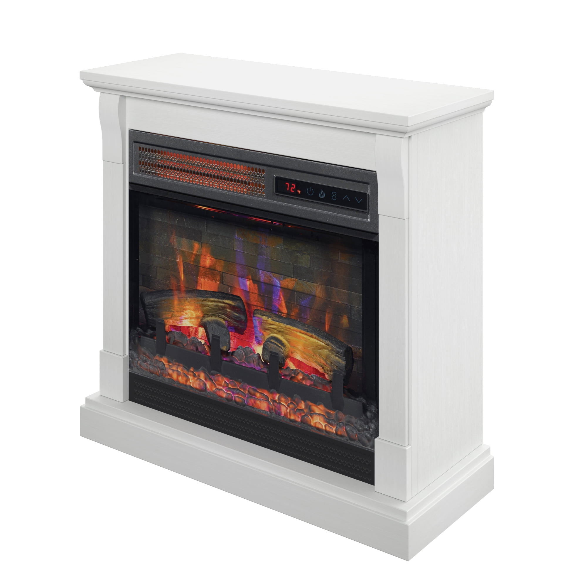 Twin Star Home Wall Mantel Electric Fireplace with 3D Flame Effect, White