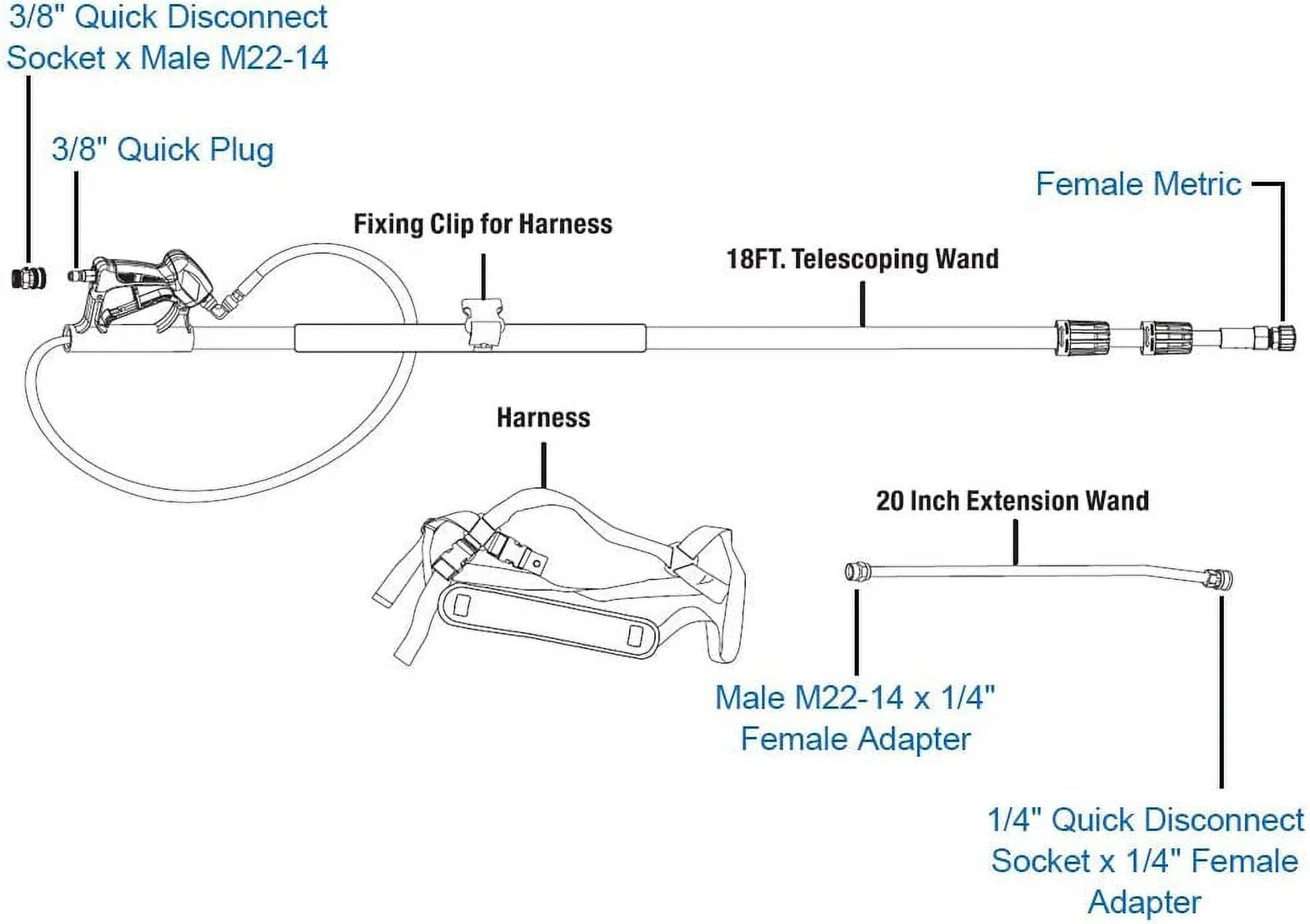 Twinkle Star Pressure Washer with Pressure Washer Nozzle Versatile Cleaning Solutions: The Twinkle Star pressure washer wand is crafted from durable aluminum, stainless steel, and brass, extending from 6ft to 18ft Compatible with various gas-powered and electric washers up to 4000 PSI, it offers unmatched versatility for all your cleaning needs Effortless Gutter Cleaning: Includes a 20-inch gutter cleaner with a stainless steel quick-connect outlet fitting and a brass quick coupler The 1/4 fitting allows seamless attachment to your washer, while the 3/8 QD to M22-14 coupler ensures compatibility with different fittings for hassle-free gutter maintenance Ergonomic Design for Comfort: The telescoping wand support harness enhances comfort during extended cleaning sessions, reducing strain on your neck, back, and arms, making outdoor cleaning effortless and enjoyable Tailored Nozzle Selection: Comes with bonus pressure washer tips, including 0°, 15°, 25°, 40°, and soap nozzles, catering to various cleaning tasks such as washing roofs, cars, fences, or decks, ensuring unmatched precision and efficiency Premium Quality, Reliable Performance: Twinkle Star is a trusted brand in pressure washer accessories, ensuring exceptional performance and durability for all your cleaning tasks