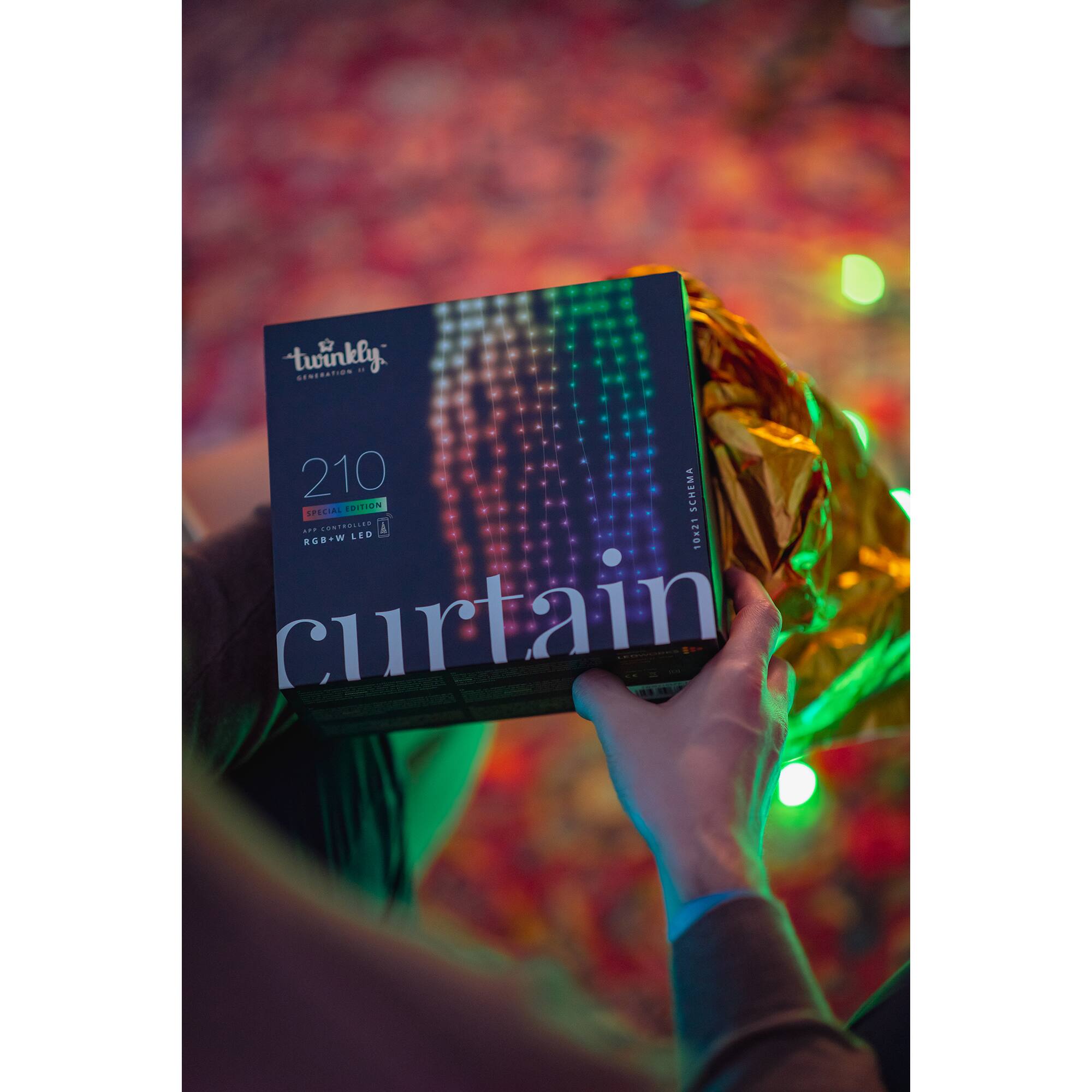 Twinkly Light Strings will add advanced technology and innovation to your home with premium decorative lighting. Getting started with Twinkly lights is easy, a quick and intuitive setup process configures your device in a matter of seconds. The Twinkly ecosystem uses a Bluetooth and Wi-Fi controller with a state-of-the-art smartphone application, bringing new levels of lighting design and creativity to customize your connected home. Like all Twinkly products, every single LED light can be controlled individually, allowing you to create and reproduce unique effects, gradients, and color animations. Twinkly Lights can be grouped together with other Twinkly devices to create larger, synchronized light installations and combined with Twinkly Music (sold separately), to offer a fully customizable light show to fit any occasion. The curtain light string has 210 RGB + white LED lights, consisting of 10 strings of 21 LEDs each to provide a cascading effect. Christmas lights, holiday lights.