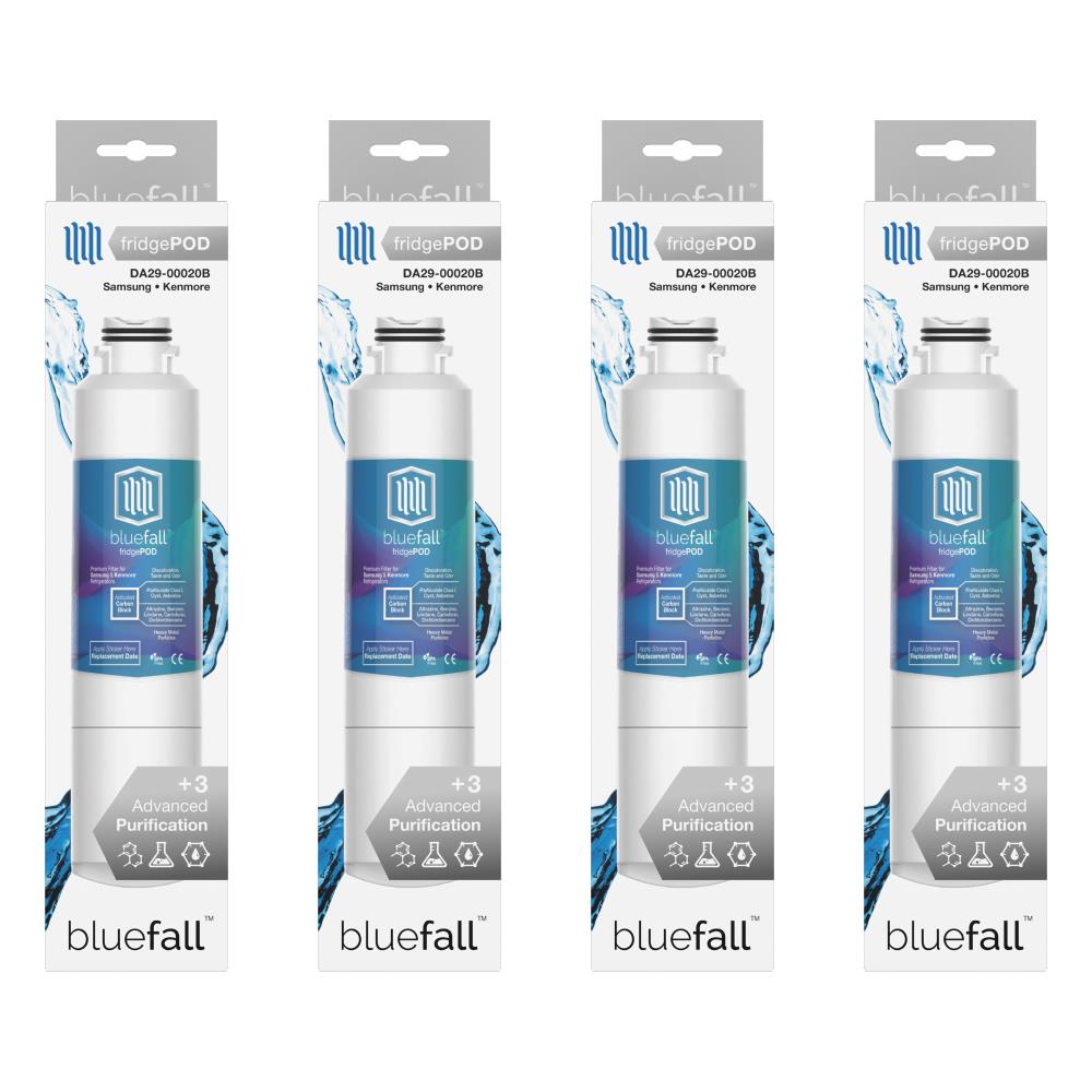 So it’s time to replace your fridge’s water filter. If you’re looking for premium OEM quality without paying double for the logo on the label, this filter is for you. All Bluefall FridgePod filters feature the Drinkpod +3 Advanced Purification process. Our filters are manufactured to be lead free, with natural coconut-based cores, and BPA-free housings, in an ISO9001 facility. Additionally, all filters are certified and tested by NSF and IAPMO for material safety and structural integrity. PURIFICATION: Our +3 Advanced Purification process has been optimized for your Samsung or Kenmore refrigerator to improve your drinking water in three specific ways. Particle Scrub: Through the use of mechanical reduction, this scrub utilizes the filter core’s compressed micropore structure to trap particles. Effective for greatly reducing contaminants like cysts, rust, and other sediments down to 2~5 microns. Chemical Scrub: A chemical reduction process that uses the filter core’s oleophilic surface to attract organic compounds and non-polar contaminants, which it ADSORBS onto its surface. Effective for reducing common disinfection byproducts (THMs), organic contaminants like chlorinated solvents, pesticides, and other industrial pollutants. Polishing Scrub: Utilizes pressure to force-diffuse your water across the filter’s vast micropore surface area, to consistently expose and reduce dangerous and aesthetic contaminants. A single filter core’s surface area can exceed 1/2 million square feet. Effective for improving the safety of your drinking water while greatly reducing undesirable taste, odor, and color. COMPATIBILITY: DA29-00020B, DA29-00020B-1, DA29-00020A, DA-97-08006A, DA-97-08006A-B, DA-97-08006B, DA29-00019A, DA2900019A, DA2900020A, DA2900020B, DA97-08006A-B, RF28HMEDBSR, RFG298HDRS, RS25J50, RF263TEAES, RF4287HARS, HAF-CIN, HAF-CIN-EXP, HAF-CINEXP, HAFCIN, 04609101000, 09101, 46-9101, 469101, 9101, 460910100