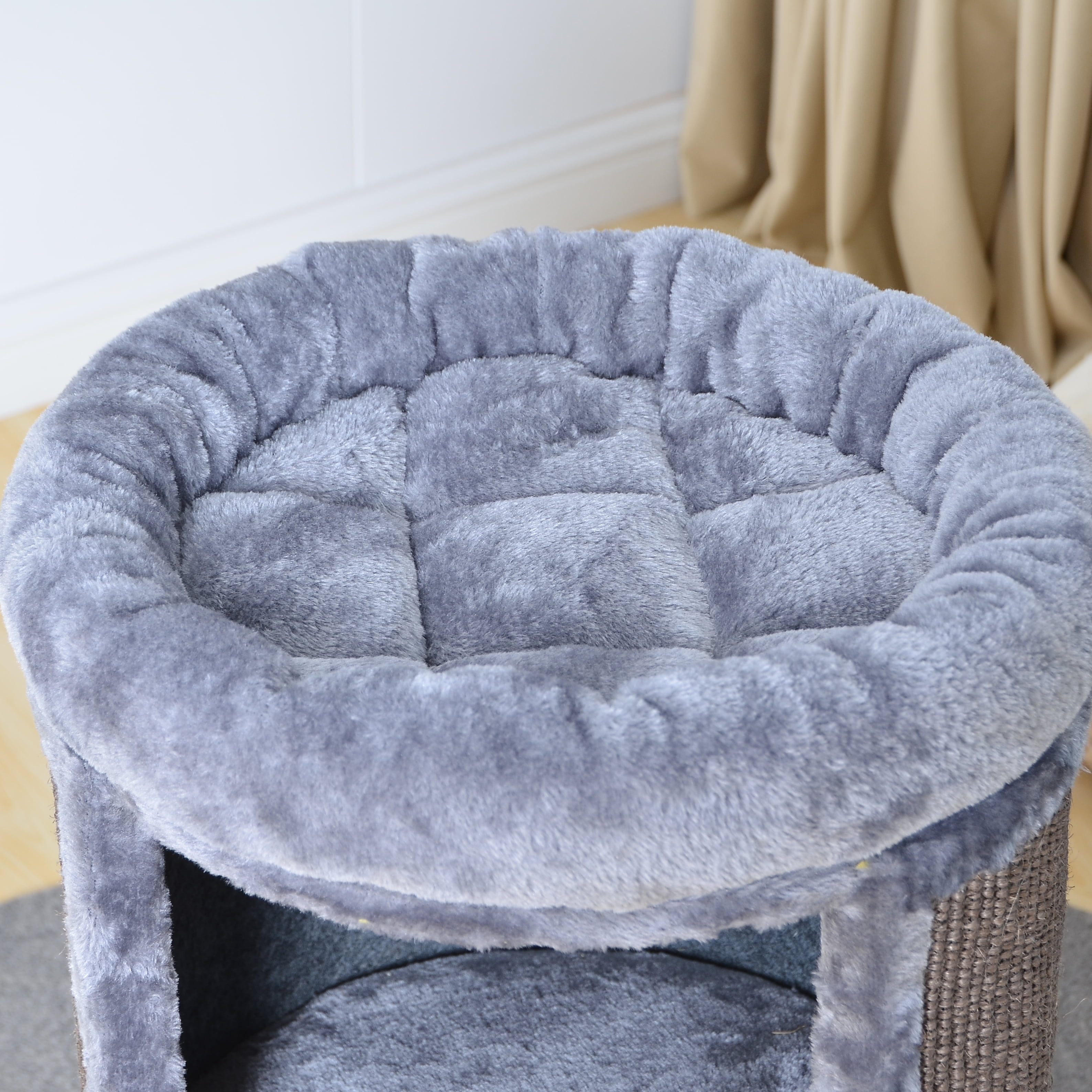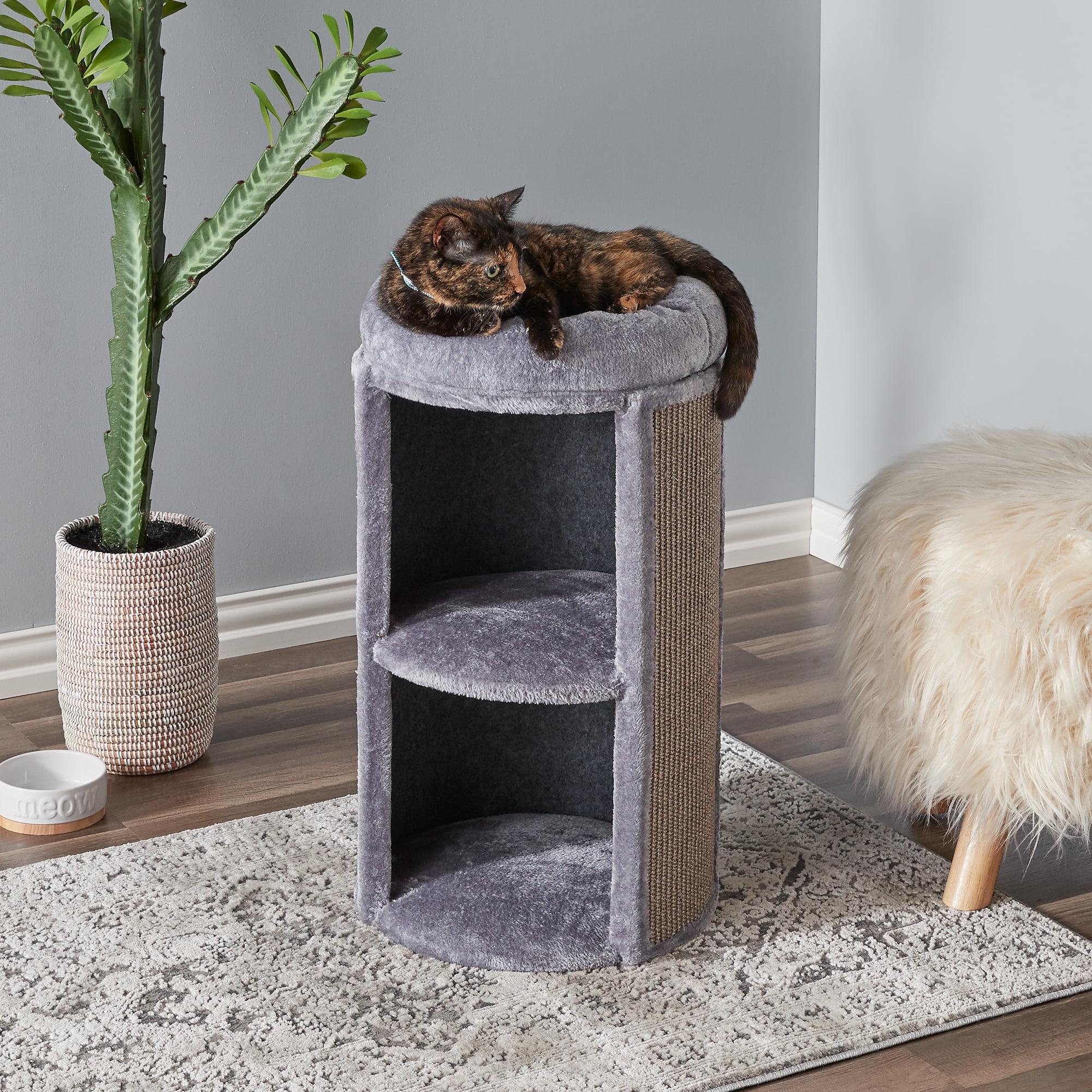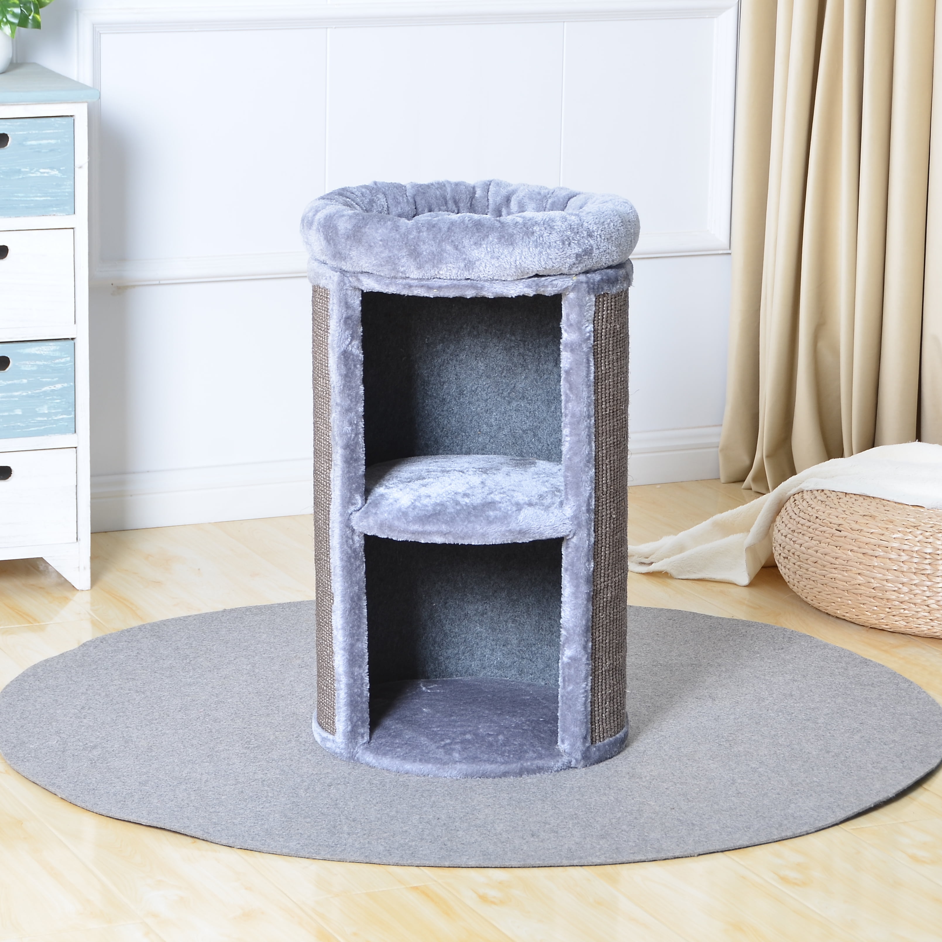 Two by Two Juniper Two-Level 25.5-inch Column Style Cat Condo, Bed and Scratch Pad