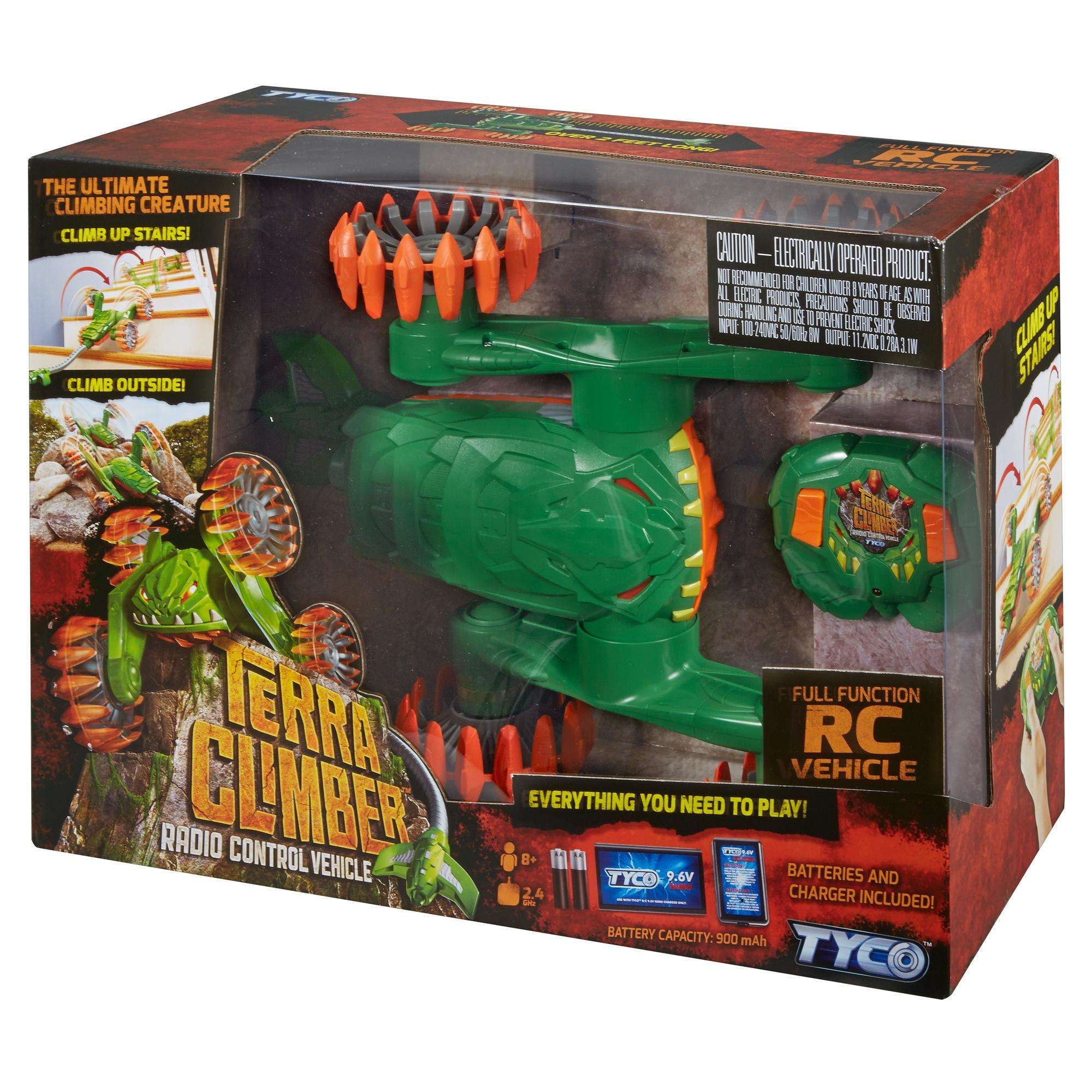 Tyco Terra Climber Radio Control Vehicle: Age Range: 8Y+ The full function RC sensation can conquer obstacles indoors or outdoors! The Terra Climber can actually scale stairs up to eight inches high Climb all types of terrain like hills, rocks, logs and watch the ultimate, radio controlled climbing creature dominate their territory Ready to run right out of the package with 9.6v rechargeable batteries and charger included