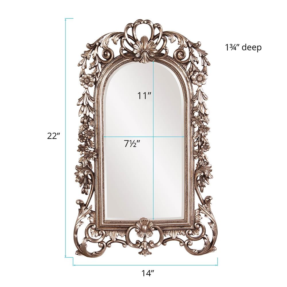 Tyler Dillon Arched Wall & Accent Mirror with Intricate Ornate Frame – Silver – 22″ H x 14″ W
