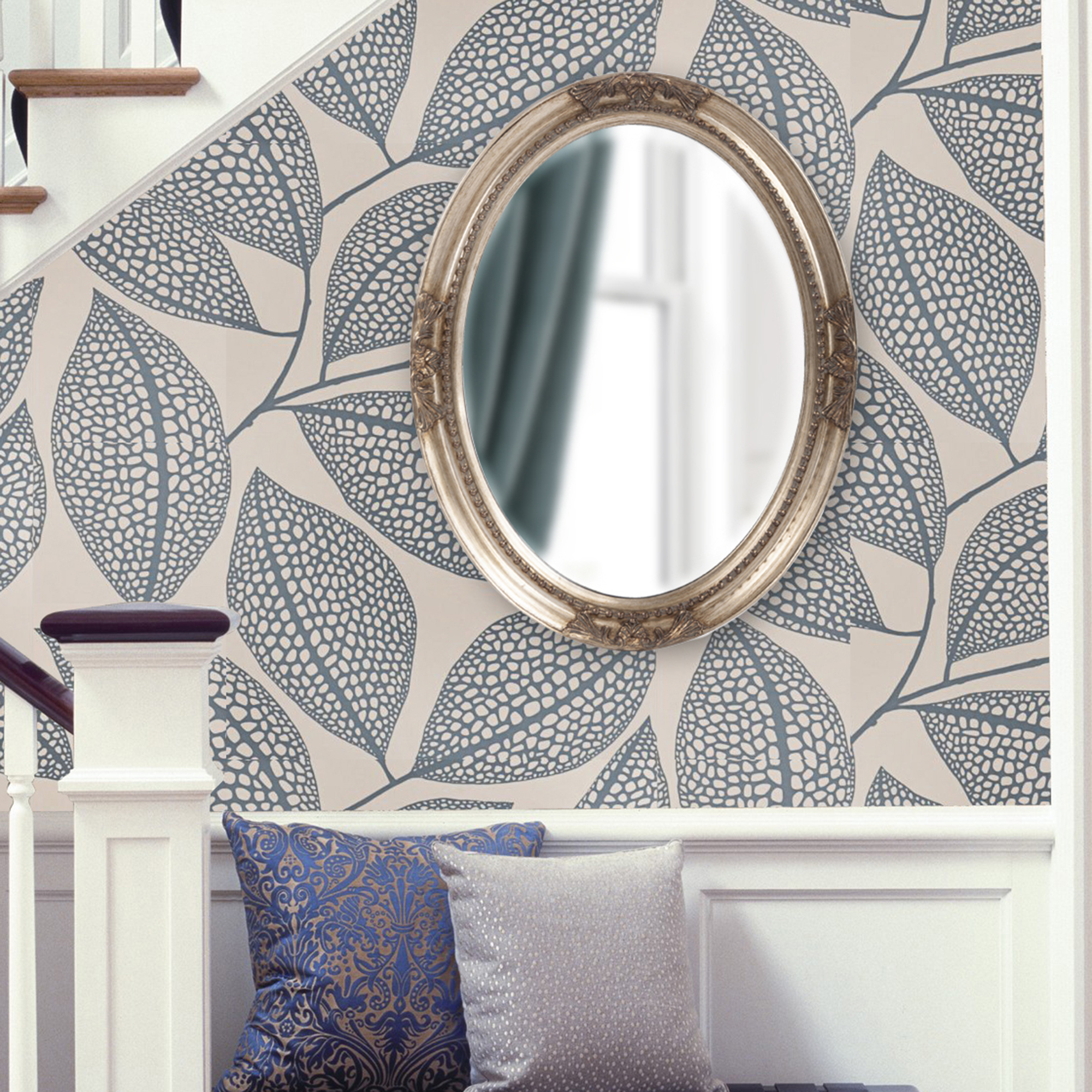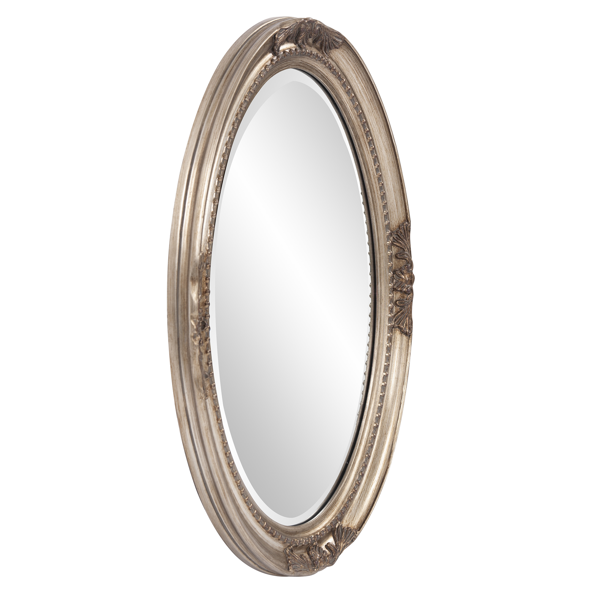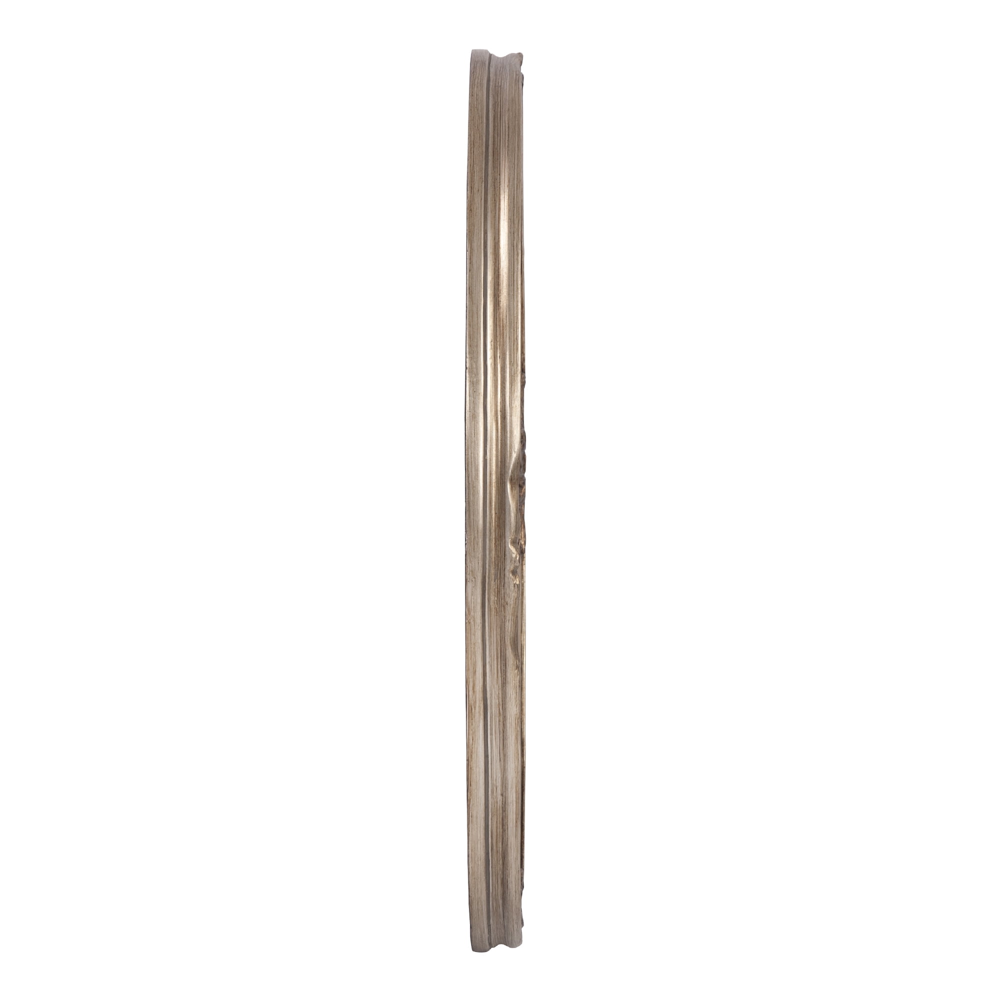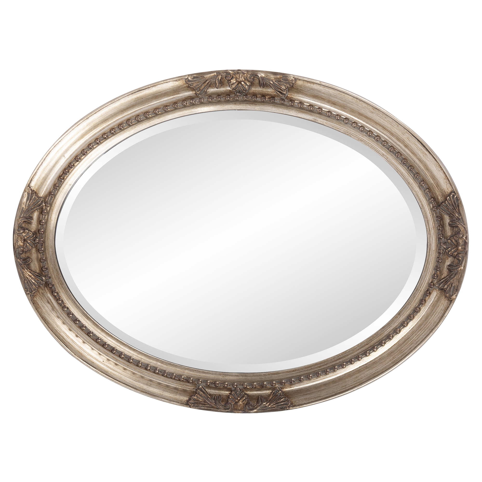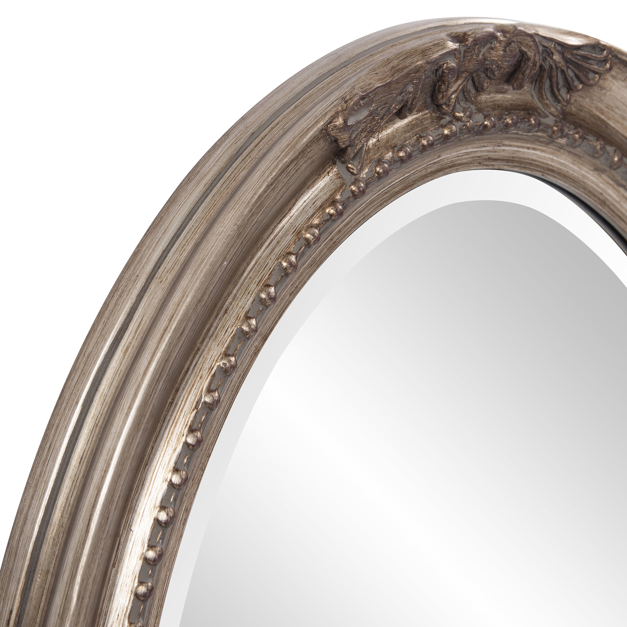 This Tyler Dillon mirror features an antique silver leaf finish. The oval frame is made from wood and is accented with a beaded textured inset and decorative adornments on each side of the frame. For more added detail the mirror features a one inch bevel. Its Traditional style makes this mirror a favorite for bringing some flair to your decor. This simple yet stunning piece would be a great addition to any room. It is a perfect focal point for an entryway, bathroom, bedroom or any room in your home. D-rings are affixed to the back of the mirror so it is ready to hang right out of the box in either a horizontal or vertical orientation!.