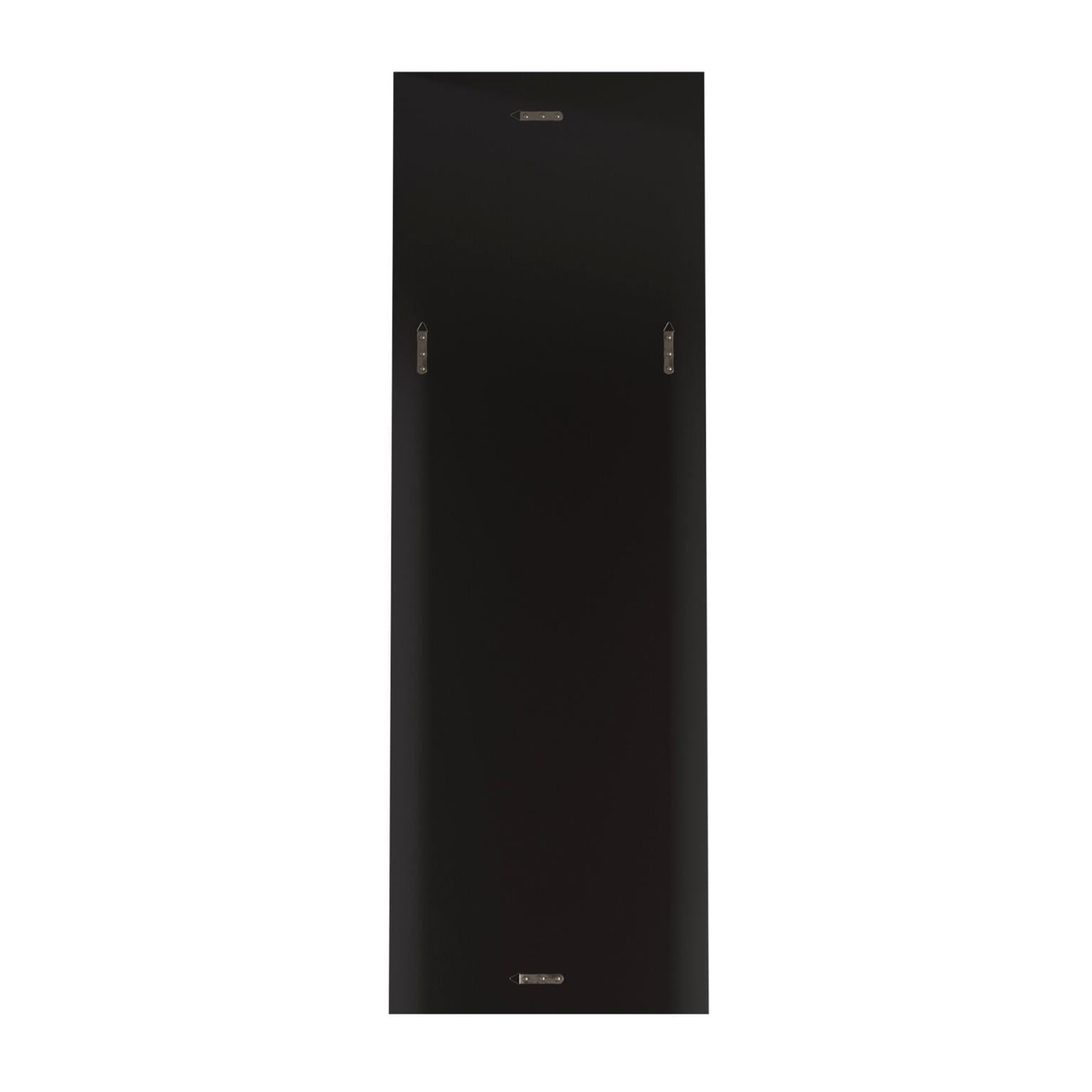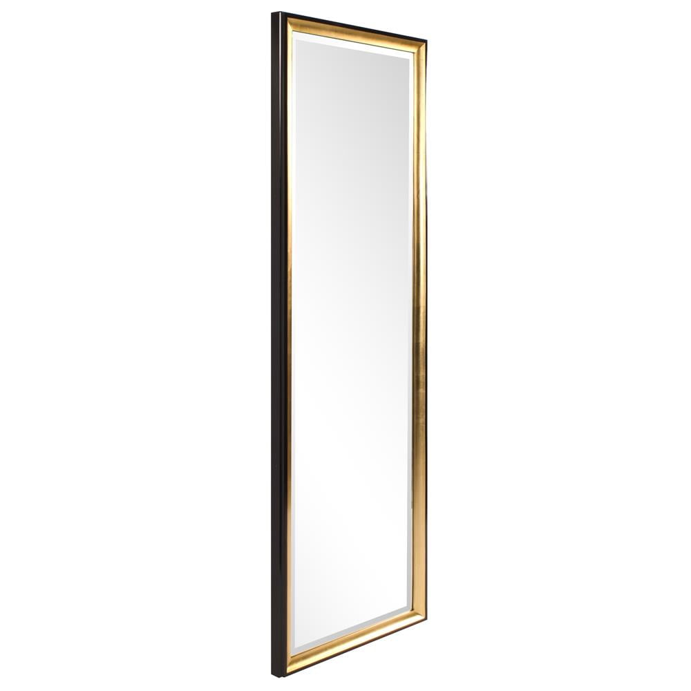 Full length rectangular wood frame Glossy black with gold trim finish 1-inch bevel on the glass Can hang vertically or horizontally Ready to hang out the box D-rings affixed to the back of the mirror Dimensions: 72-inch height x 24-inch width x 2-inch depth Weight: 43 lbs
