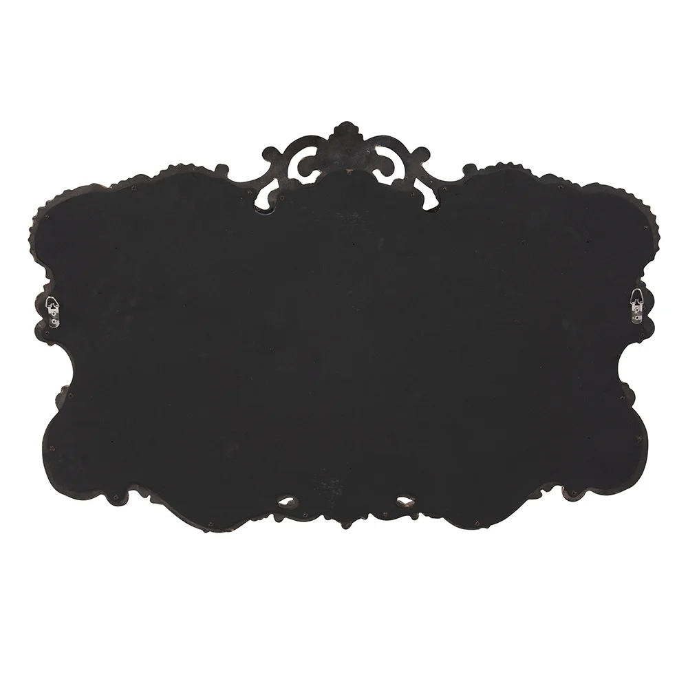 Rectangular ornate wall mirror Polyurethane frame textured with decorative flourishes Color/Finish: Gold Beveled glass Can hang vertically Hanging hardware (D-rings) attached on the back Dimensions: 27″H x 38″W x 1″D Weight: 19 lbs