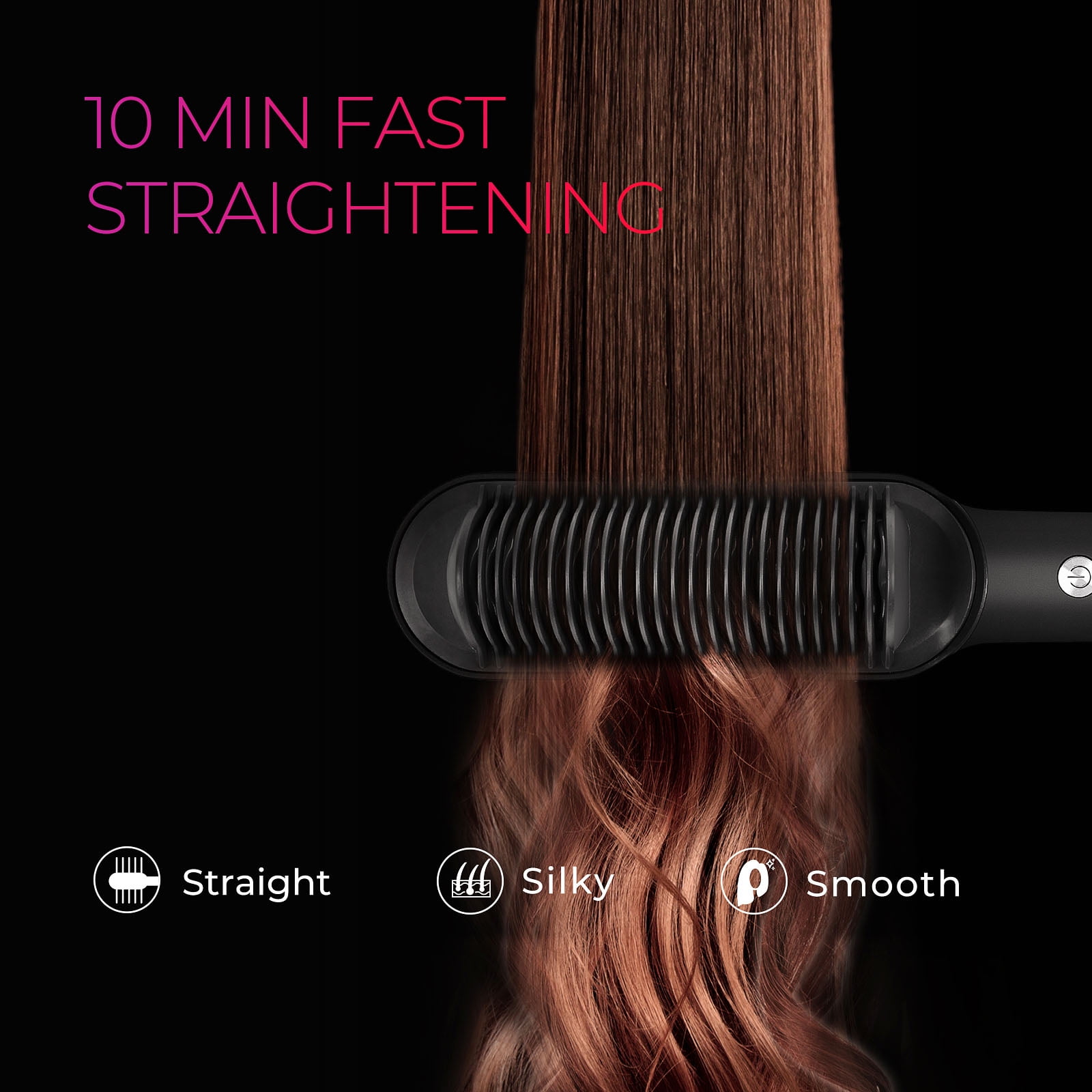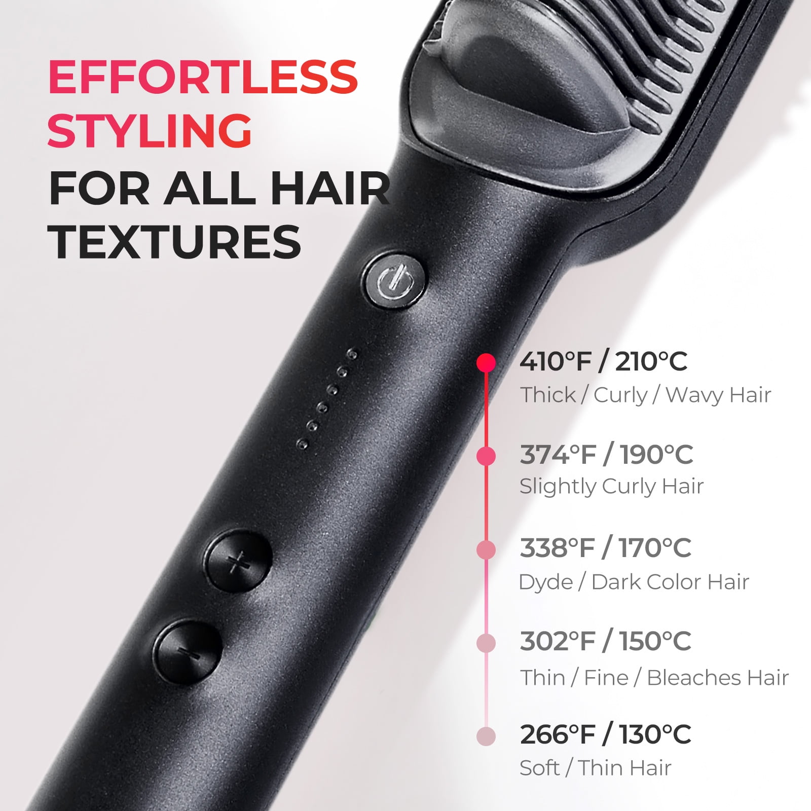 TYMO Ring Hair Straightener Brush, Flat Iron Comb, 5 Temp Settings & 20s Fast Heating, Dual Voltage,Black
