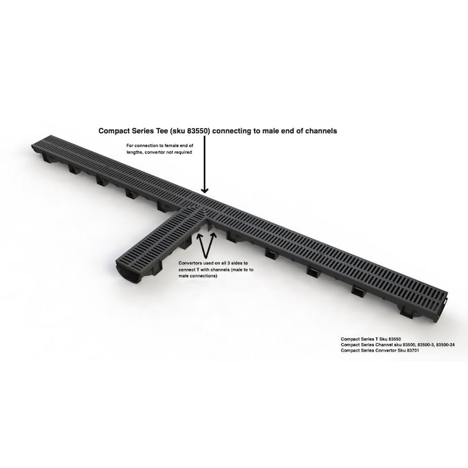 - Includes 3 length of channel and grate + 2 end caps + 1 converter