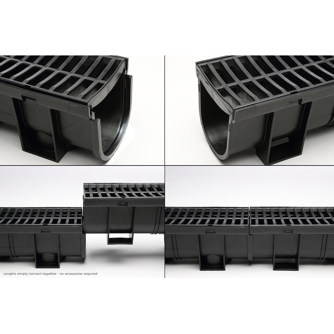 - Includes 3-lengths of channel and grate, 2-end caps and 1-convertor