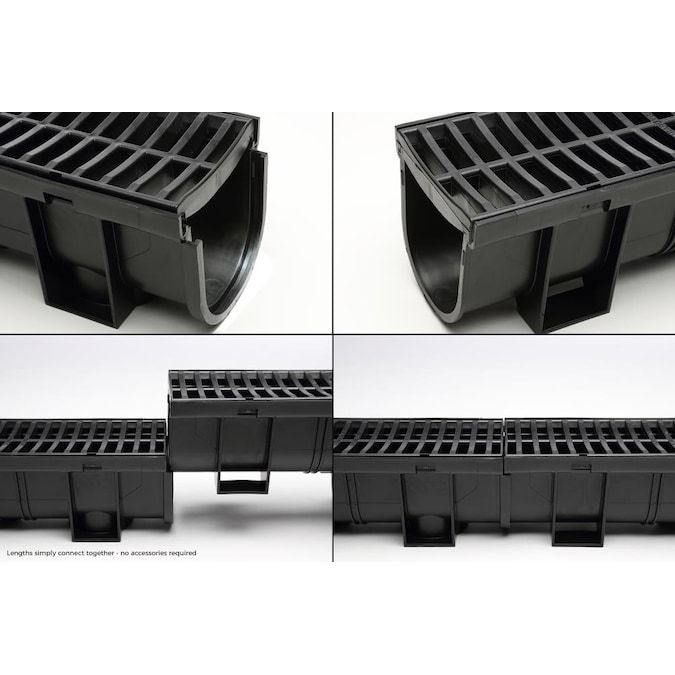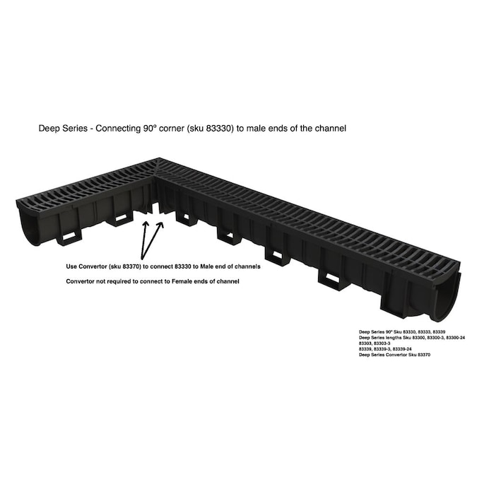 Because of their high-profile design, the Deep Series Trench Drains are perfect for high water flow areas in landscape water drainage projects. Optimal for deviating rainfall water and flowing or stagnant water on property where lots of water collects and pools. Adjacent to homes or at the bottom of sloped areas; Trench Drains provide flexible drainage solutions. Residential uses include yard water drainage for small-grassed suburban properties or large acres of land and farm areas. Easily collect and disperse water from patio areas or pool sides. Commercial water drainage systems allow safe and efficient drainage for office buildings, property, or factory interiors. The flat grates are ideally designed to distribute weight to the drain edges and the larger slats increase water flow while still providing protection from debris or traffic. The Trench Drain is visually appealing due to its sleek, yet sturdy, construction and adds an aesthetic touch it its surroundings. Available accessories include end caps, adaptor pieces, convertor pieces, leaf domes, 90° corner pieces, tee pieces, catch basins, slim pits, storm water pits, and alternative grates.