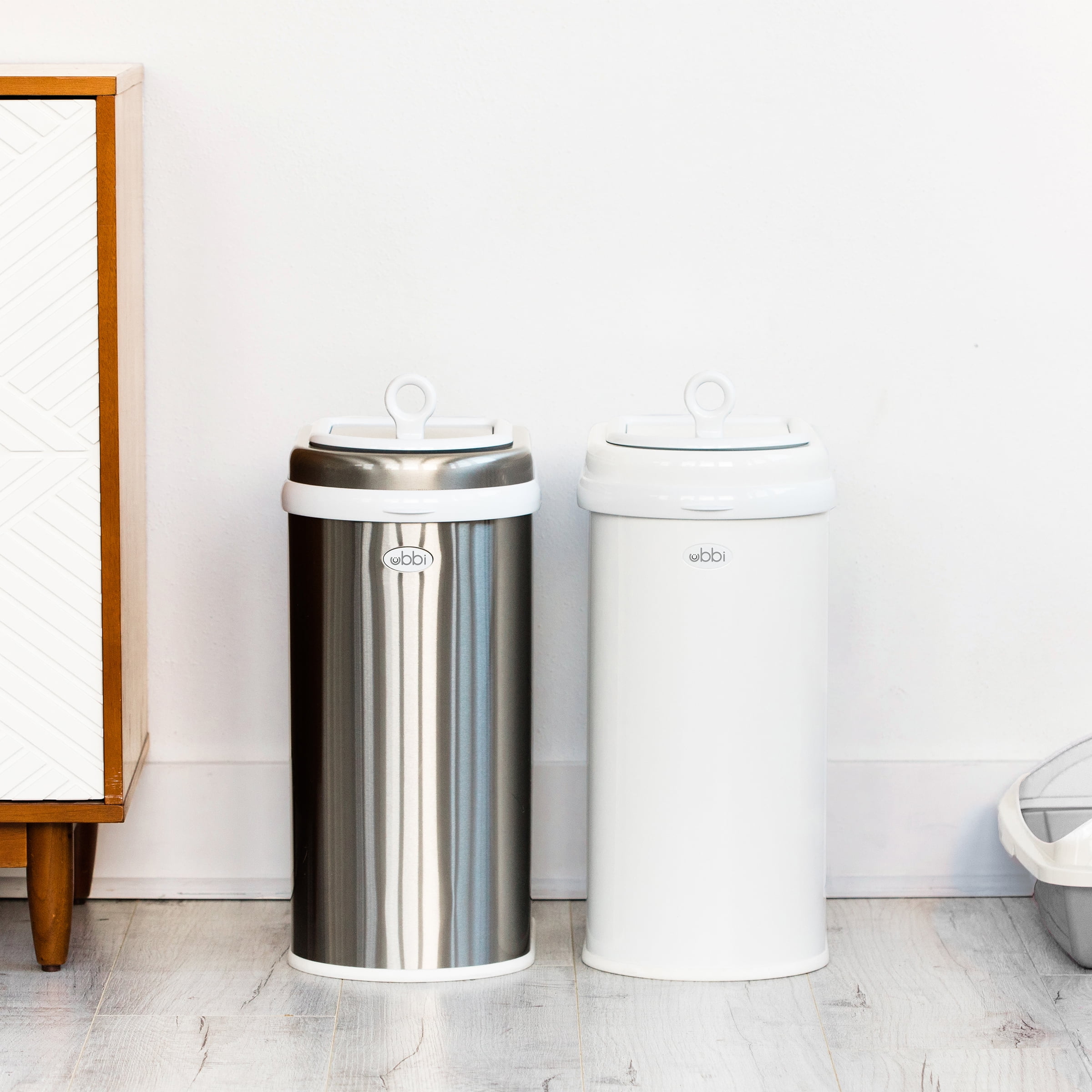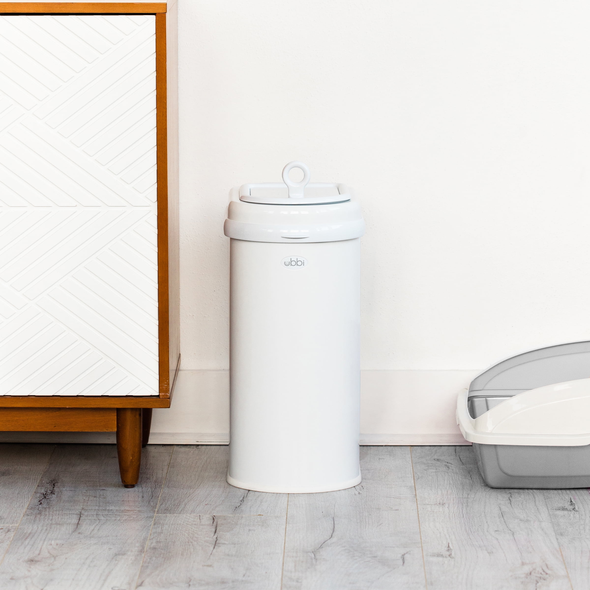 Ubbi Pet Odor-Locking Steel Waste Pail Cat Litter Disposal System, White