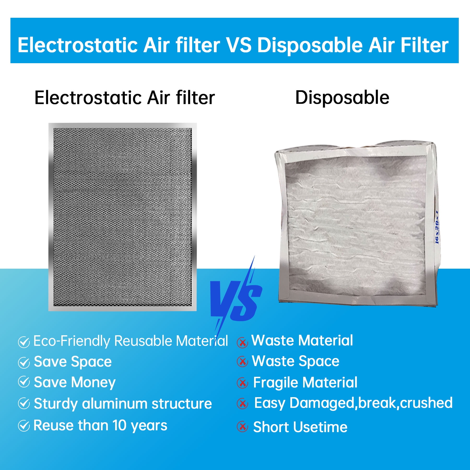 UBeesize Reusable Electrostatic Air Filter Washable The UBeesize Reusable Electrostatic Air Filter is designed to enhance your indoor air quality while being environmentally friendly This innovative air filter captures up to 90% of dust, pollen, pet hair, and other airborne particles, ensuring that the air you breathe is cleaner and healthier Its durable aluminum frame is built to withstand strong winds, making it a long-lasting solution that reduces the need for frequent replacements The washable design allows for easy maintenance; simply clean it with water and detergent every three months, and it’s ready to be reinstalled Compatible with a variety of furnace, HVAC, and AC systems, this filter is easy to install and maintain, providing a versatile solution for your air filtration needs