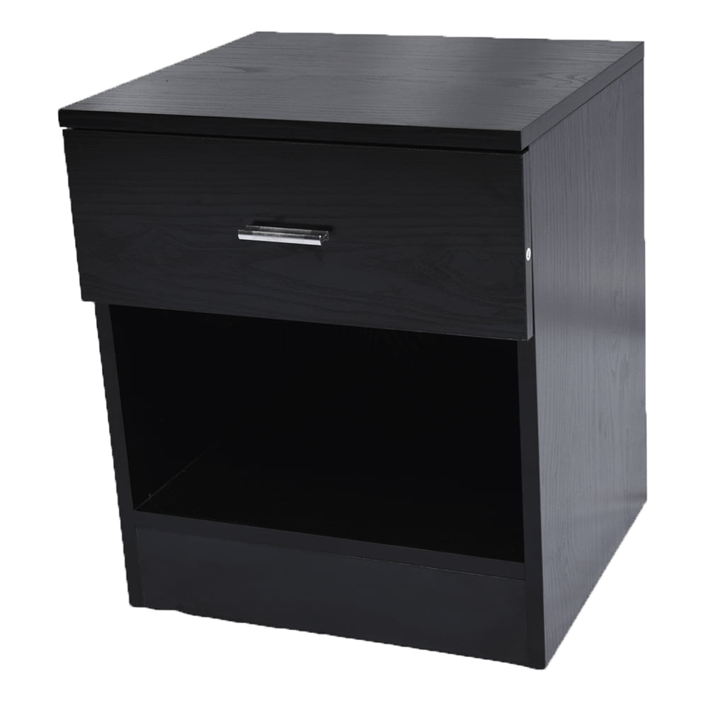 UBesGoo 1 Drawer Night Stand Storage Cabinet Bedside Table Bedroom Furniture Black New Introductions: Are you looking for a suitable night table? If so, you can’t miss this 1 Drawer Metal Handle Bedside Cabinet Night Table. It adopts high quality E1 particle board, which features stable, sturdy and durable. This night table has one spacious drawer, which is perfect for bedroom storage. With metal handle, it’s smooth and flexible to use. Moreover, with concise design, it can fit with most style of decorations. Combined practical with elegant, it’s worth buying! So what are you waiting for? Just take it home now! UBesGoo Product Description: Made of high quality E1 particle board, stable, sturdy and durable Sturdy wood construction provide long durability One drawer design is ideal for bedroom storage, very convenient Well-craft and high quality Concise design, coordinate with any style of decoration Easy to assemble Material: E1 Particle Board Color: Black Overall Dimensions: (15.75 x 14.17 x 18.5)” / (40 x 36 x 47)cm (L x W x H) Drawer Dimensions: (12.4 x 11.22 x 2.56)” / (31.5 x 28.5 x 6.5)cm (L x W x H) Empty Space Dimensions: (14.37 x 12.8 x 7.48)” / (36.5 x 32.5 x 19.5)cm (L x W x H) Board Thickness: 15mm Weight: 22.27 lbs / 10.1 kg Package Includes: 1 x Night Table