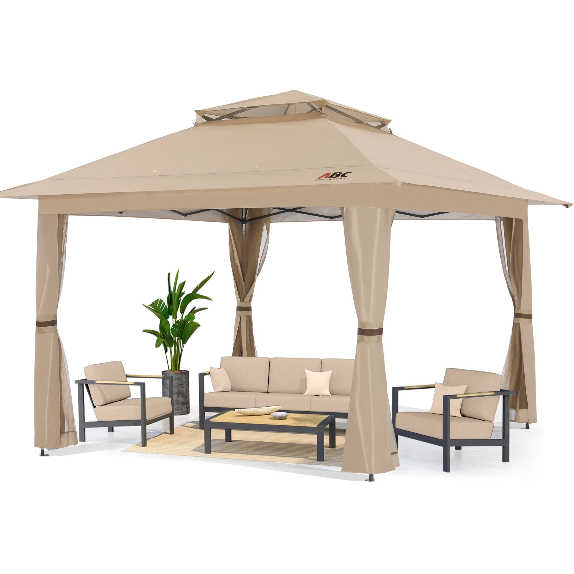 Spiral Interface Between The Tubes Makes Overall Frame More Stable High-class PE Cloth Top And Iron Tube Waterproof Performance, Can Be Used Outdoors Holds Up To An Estimated 50 People Removable walls attached with Nylon Fasteners, comes with ropes and stakes for added stability