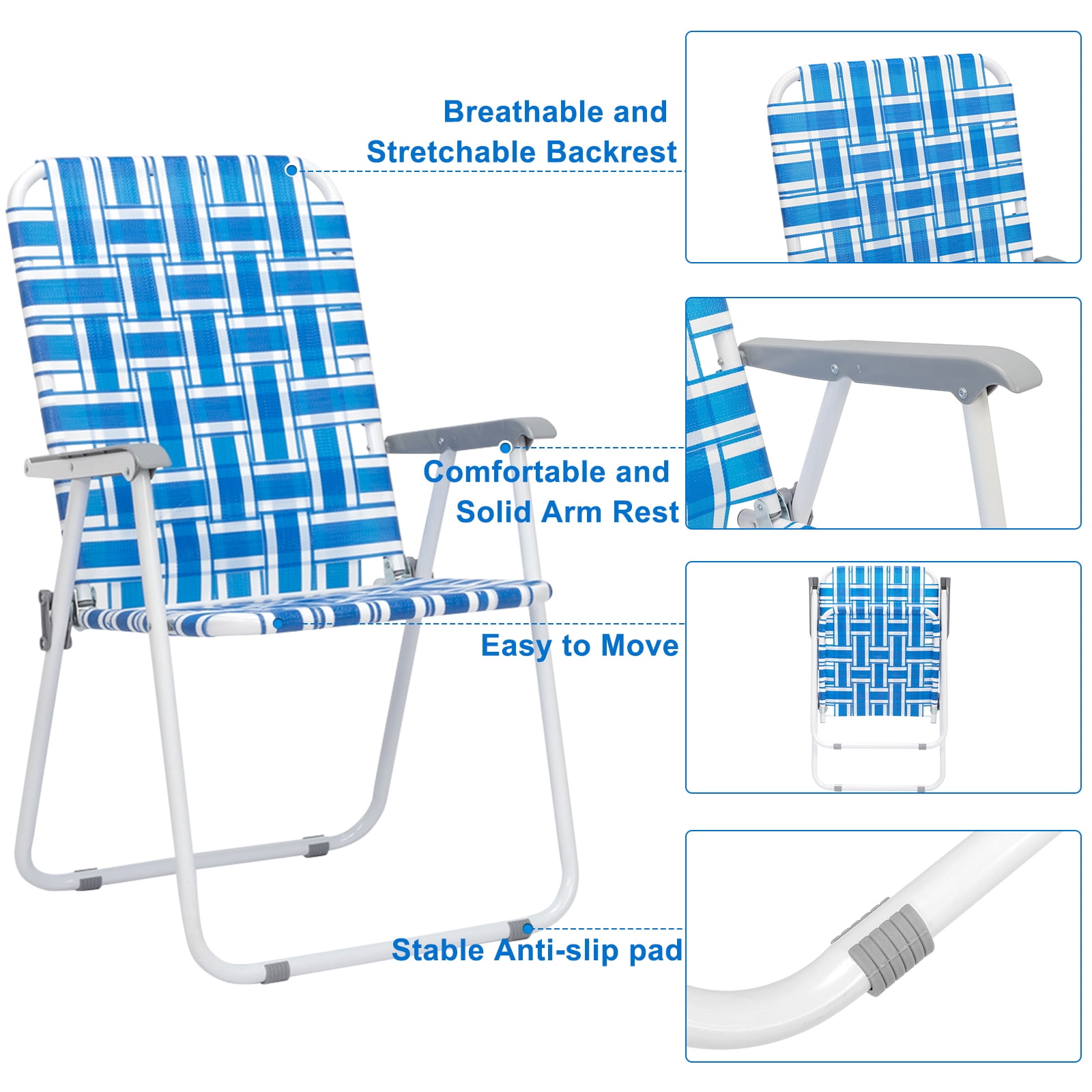 UBesGoo Folding Web Lawn Chair Set, 2 Pack Outdoor Beach Chair Portable Camping Chair(Blue)